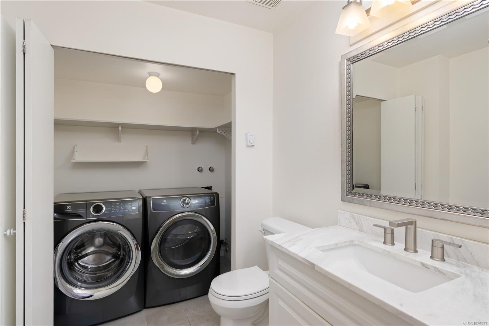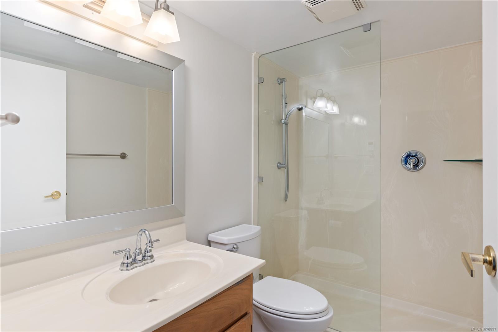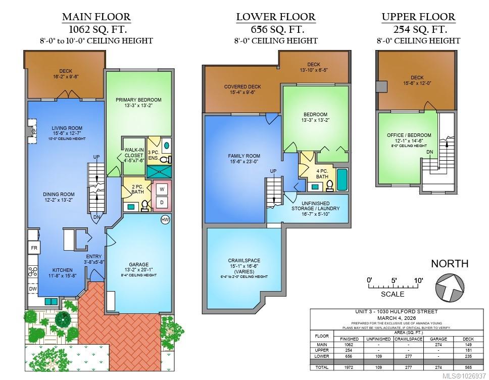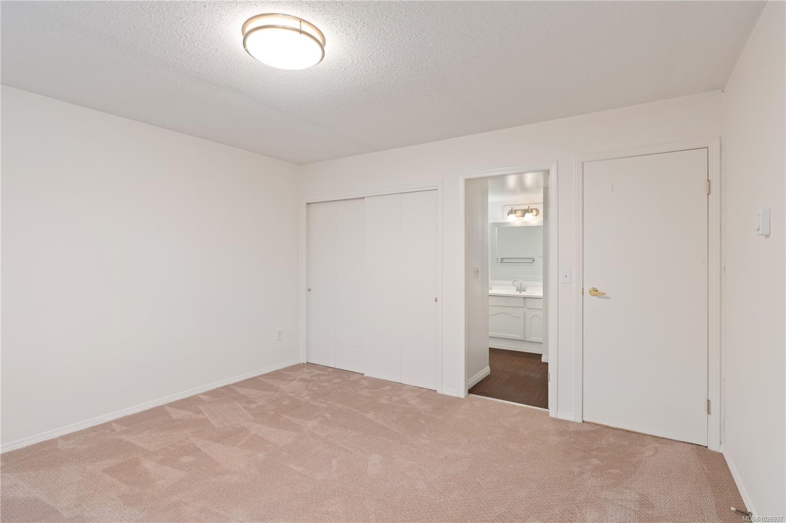 Welcome to this beautifully updated home offering nearly 2,000 sqft of thoughtfully designed living space in a quiet, private setting backing onto forest and the Galloping Goose Trail. The main level features an open-concept layout with soaring 10' ceilings, a cozy gas fireplace, and a stunning new kitchen with quartz countertops and Fisher & Paykel fridge and freezer. Step out to the expansive deck to enjoy peaceful treed views. The primary bedroom on the main floor allows for easy living. Upstairs offers a bright, versatile flex space with its own private deck, ideal for a home office or lounge. The lower level provides excellent flexibility with a large rec room, spacious bedroom, full bathroom, storage, and an additional large deck. Updated flooring, brand new carpets, three generous decks and a garage complete the home. Ideally located near trails, Swan Lake, and all amenities.