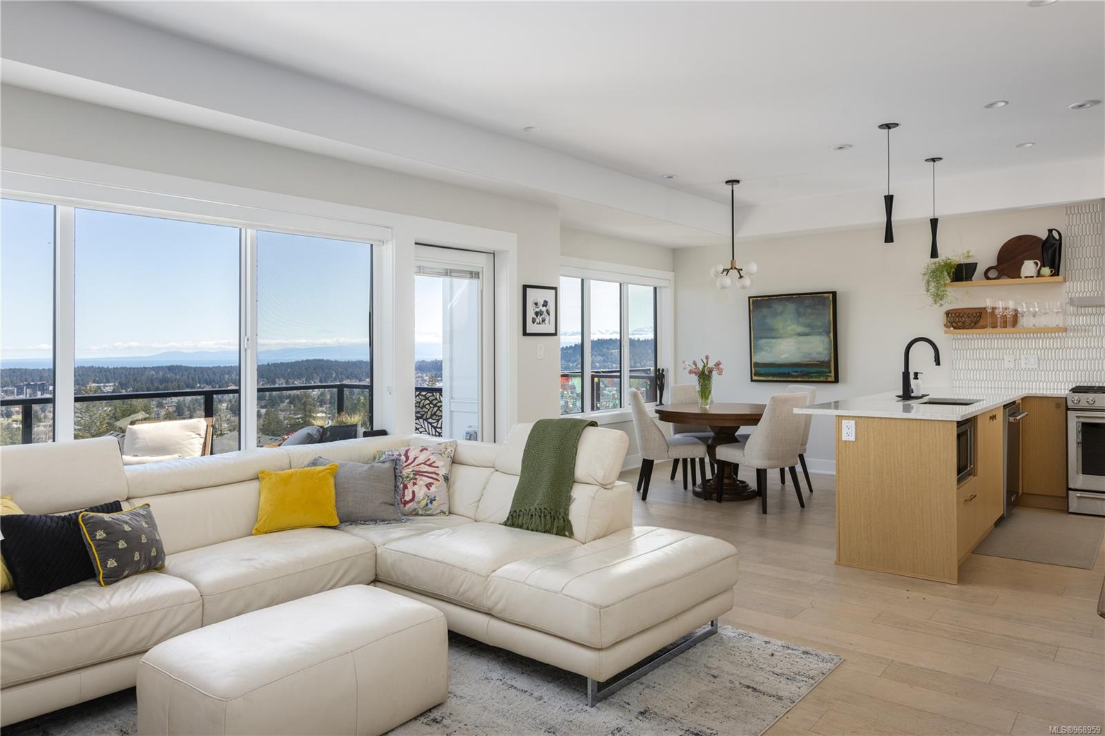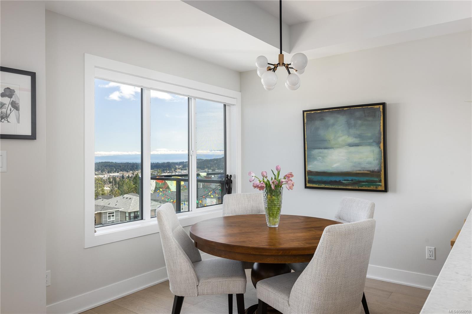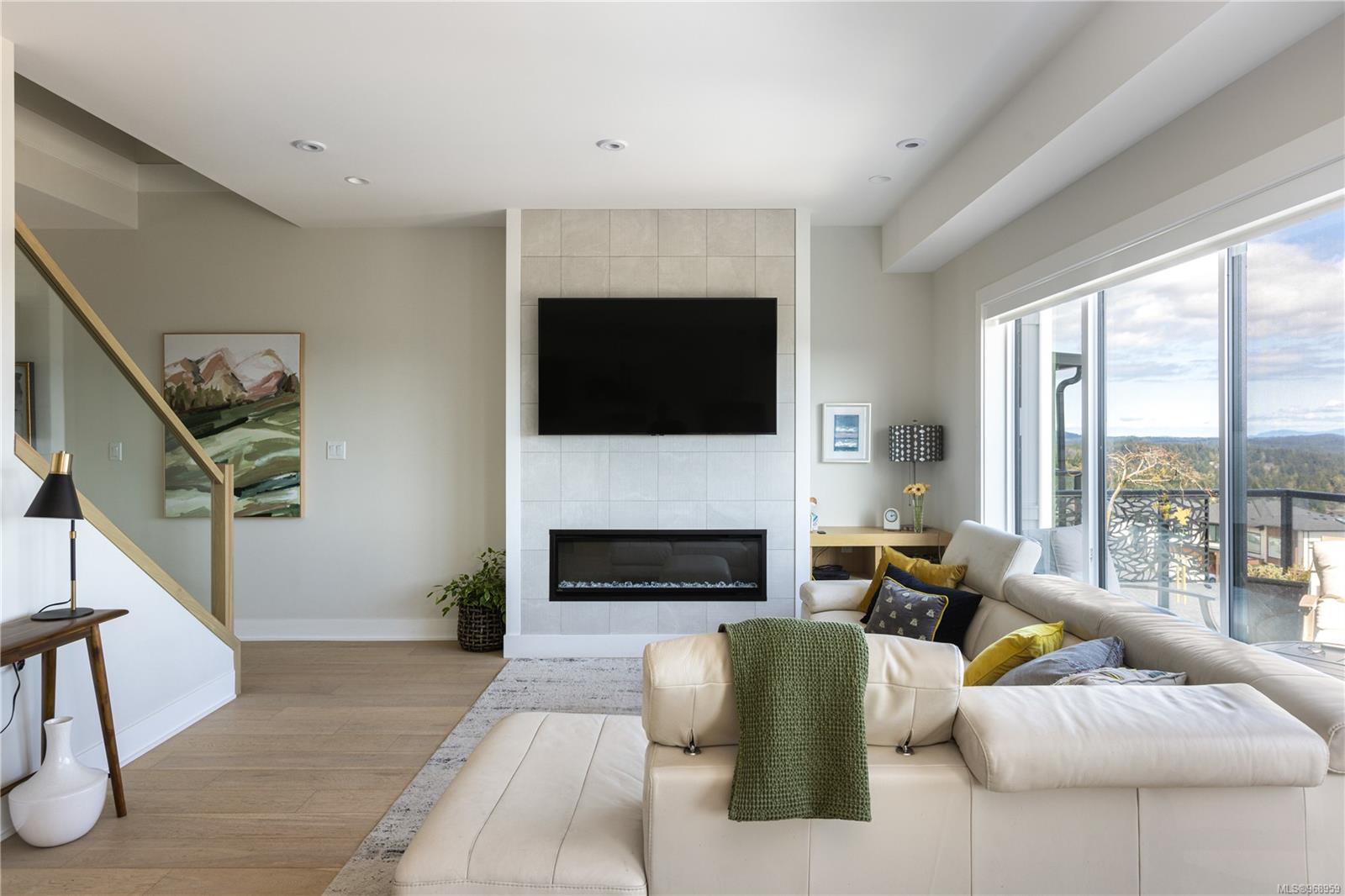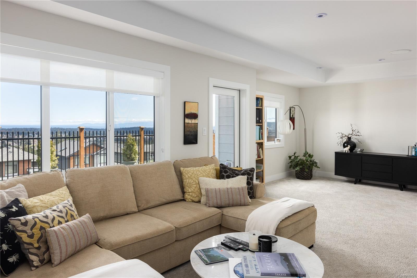 This stunning 3-bedroom, 4-bathroom Bear Mountain townhome offers endless ocean & mountain views, boasting 2,240 square feet of luxurious living space. With a thoughtfully designed floor plan and an abundance of windows, the home is bathed in natural light, creating a bright and inviting atmosphere. The spacious lower level features a large family or recreation room and a 4-piece bathroom, perfect for additional accommodation plus an outdoor yard space. On the main floor, the open-concept living, dining, and kitchen area is ideal for entertaining, boasting a cozy fireplace, gas appliances, a stunning deck, and refined finishes. Upstairs, you'll find the dedicated laundry room and serene sleeping quarters, including a primary suite with soaring 11-foot vaulted ceilings, breathtaking views of the city, ocean, and mountains, a generous walk-in closet, and a luxurious 5-piece ensuite. Executive townhome living at its finest, this beautiful Bear Mountain home won't last long!