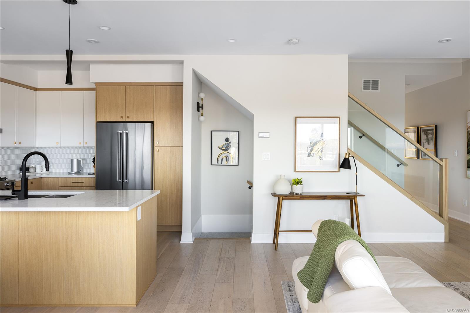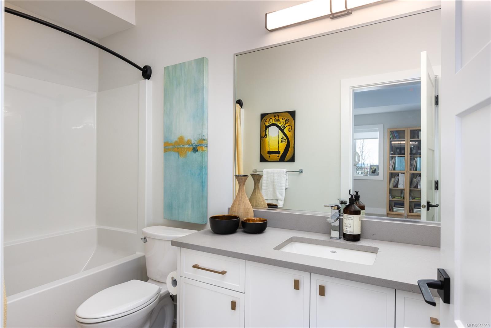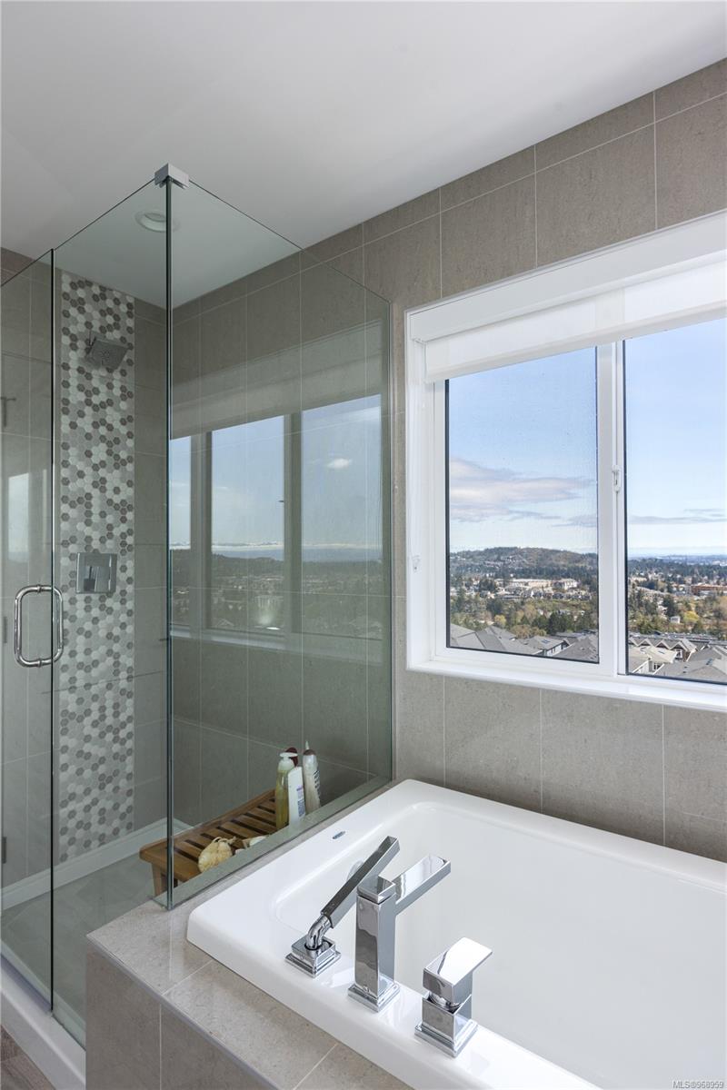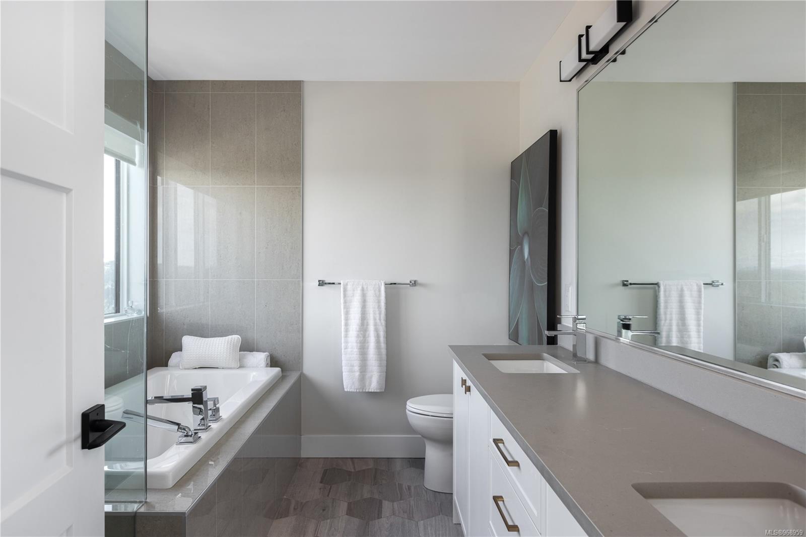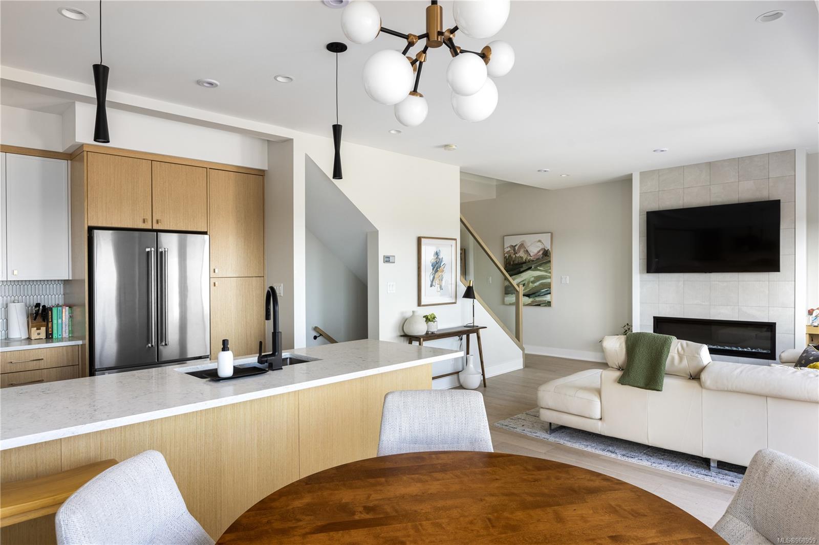 This stunning 3-bedroom, 4-bathroom Bear Mountain townhome offers endless ocean & mountain views, boasting 2,240 square feet of luxurious living space. With a thoughtfully designed floor plan and an abundance of windows, the home is bathed in natural light, creating a bright and inviting atmosphere. The spacious lower level features a large family or recreation room and a 4-piece bathroom, perfect for additional accommodation plus an outdoor yard space. On the main floor, the open-concept living, dining, and kitchen area is ideal for entertaining, boasting a cozy fireplace, gas appliances, a stunning deck, and refined finishes. Upstairs, you'll find the dedicated laundry room and serene sleeping quarters, including a primary suite with soaring 11-foot vaulted ceilings, breathtaking views of the city, ocean, and mountains, a generous walk-in closet, and a luxurious 5-piece ensuite. Executive townhome living at its finest, this beautiful Bear Mountain home won't last long!