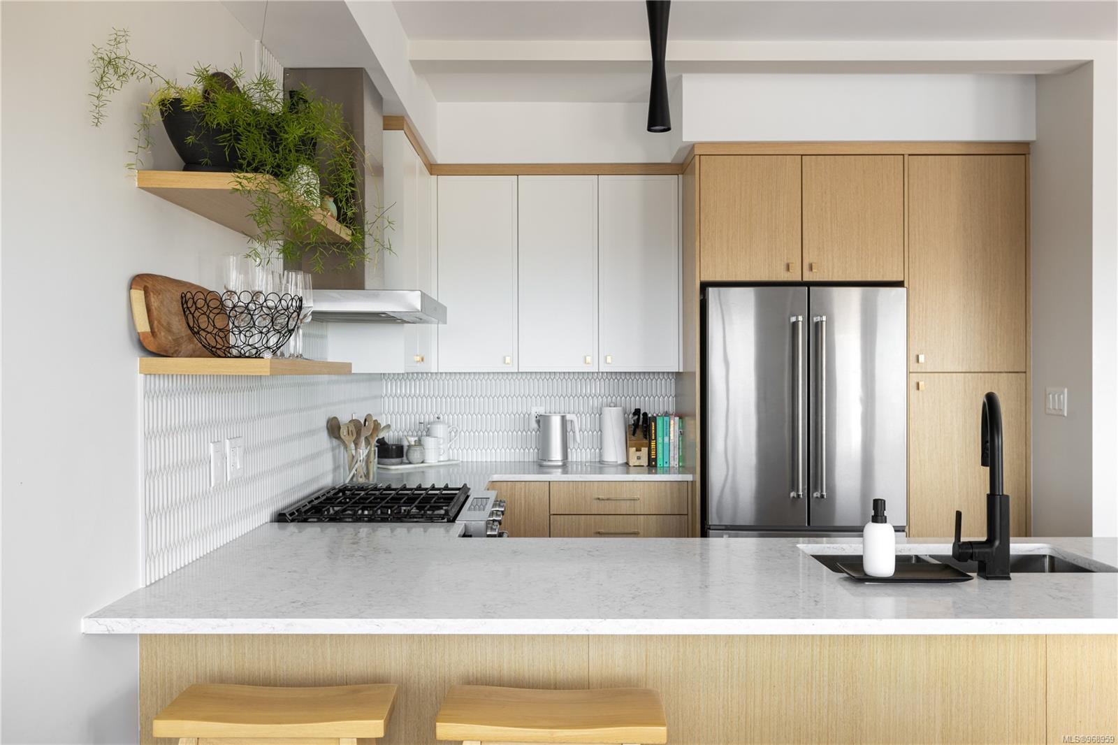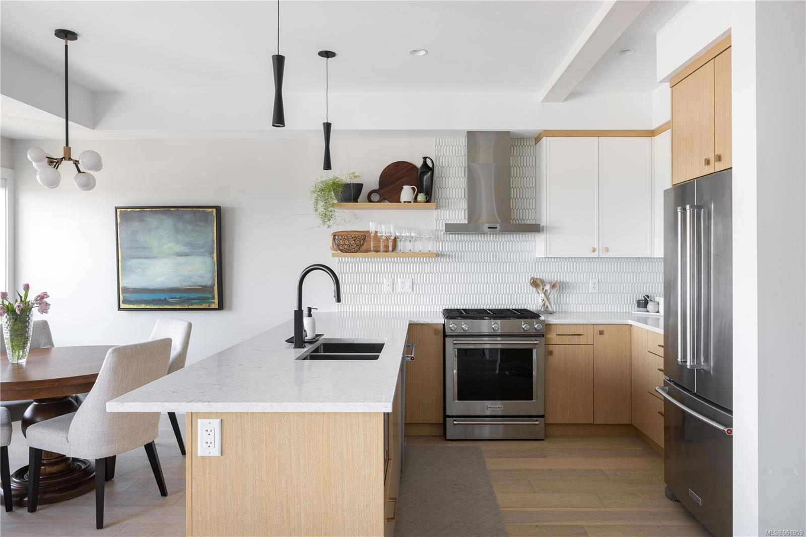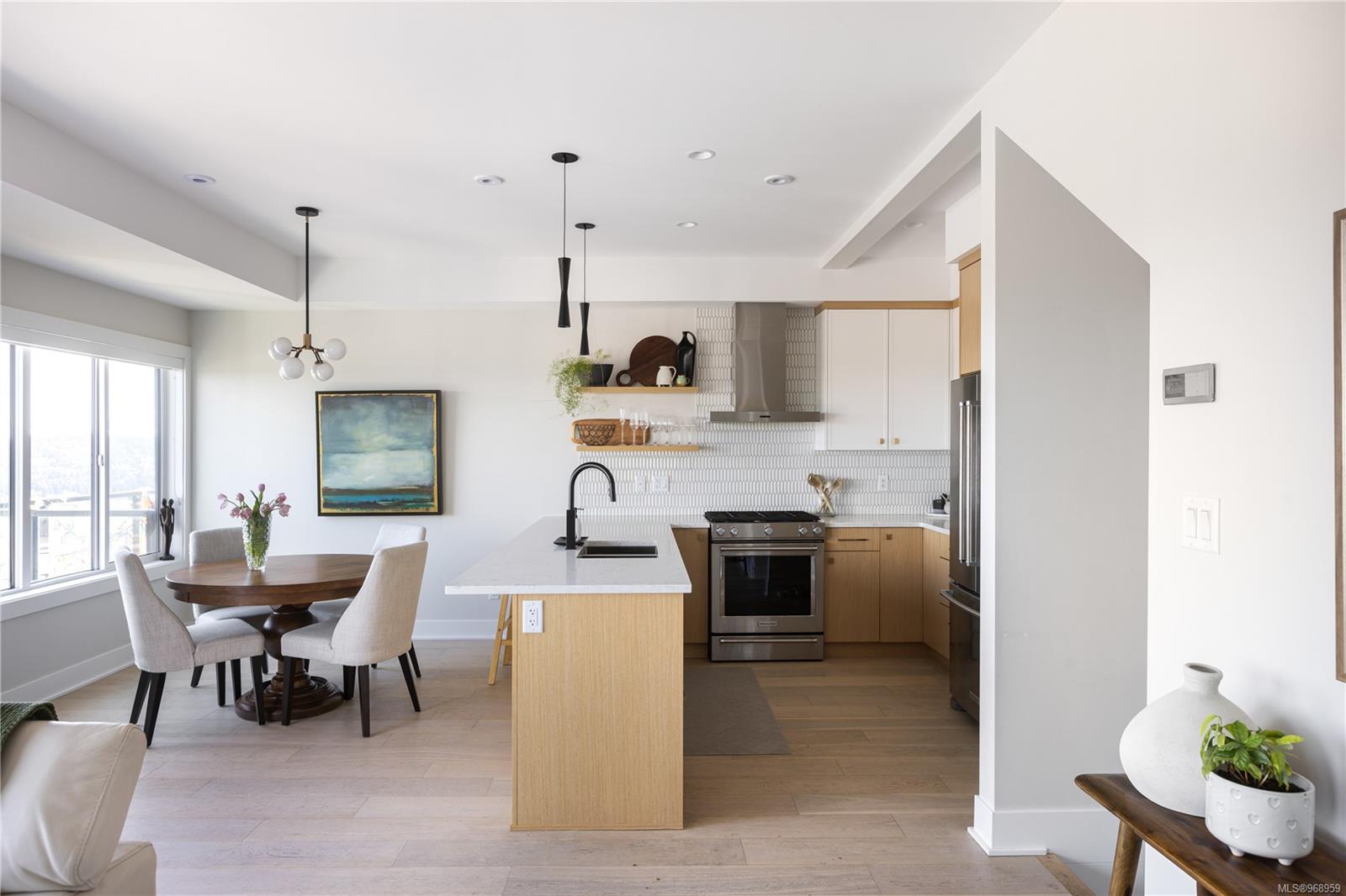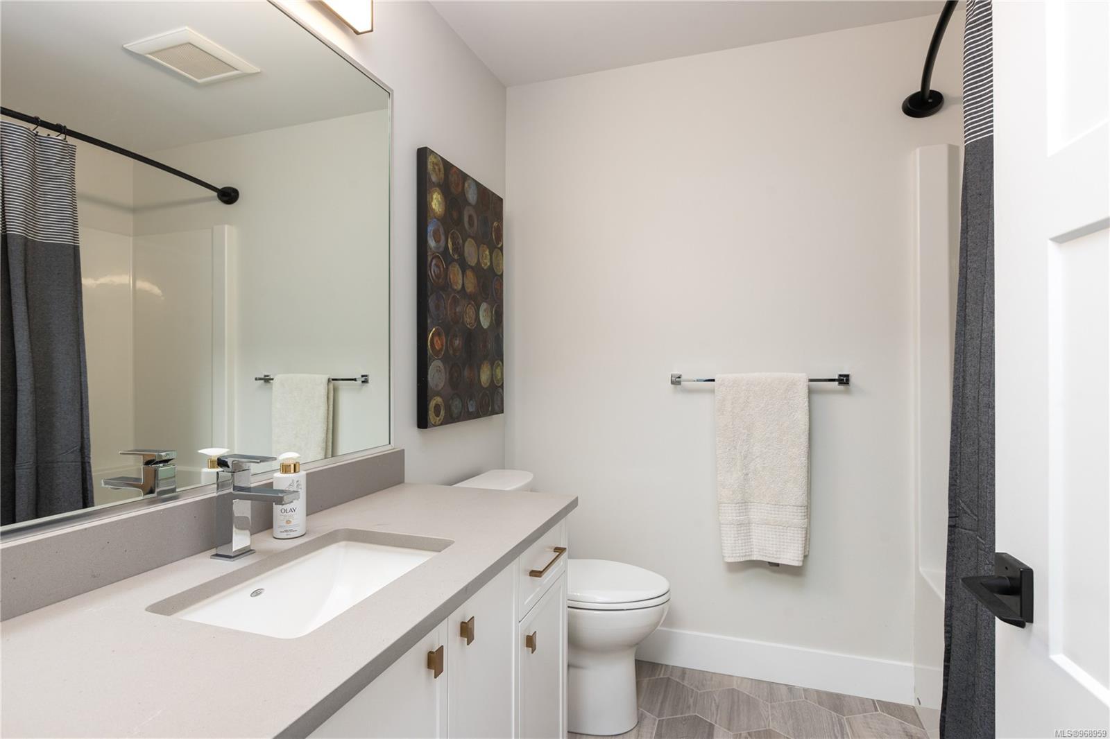 This stunning 3-bedroom, 4-bathroom Bear Mountain townhome offers endless ocean & mountain views, boasting 2,240 square feet of luxurious living space. With a thoughtfully designed floor plan and an abundance of windows, the home is bathed in natural light, creating a bright and inviting atmosphere. The spacious lower level features a large family or recreation room and a 4-piece bathroom, perfect for additional accommodation plus an outdoor yard space. On the main floor, the open-concept living, dining, and kitchen area is ideal for entertaining, boasting a cozy fireplace, gas appliances, a stunning deck, and refined finishes. Upstairs, you'll find the dedicated laundry room and serene sleeping quarters, including a primary suite with soaring 11-foot vaulted ceilings, breathtaking views of the city, ocean, and mountains, a generous walk-in closet, and a luxurious 5-piece ensuite. Executive townhome living at its finest, this beautiful Bear Mountain home won't last long!