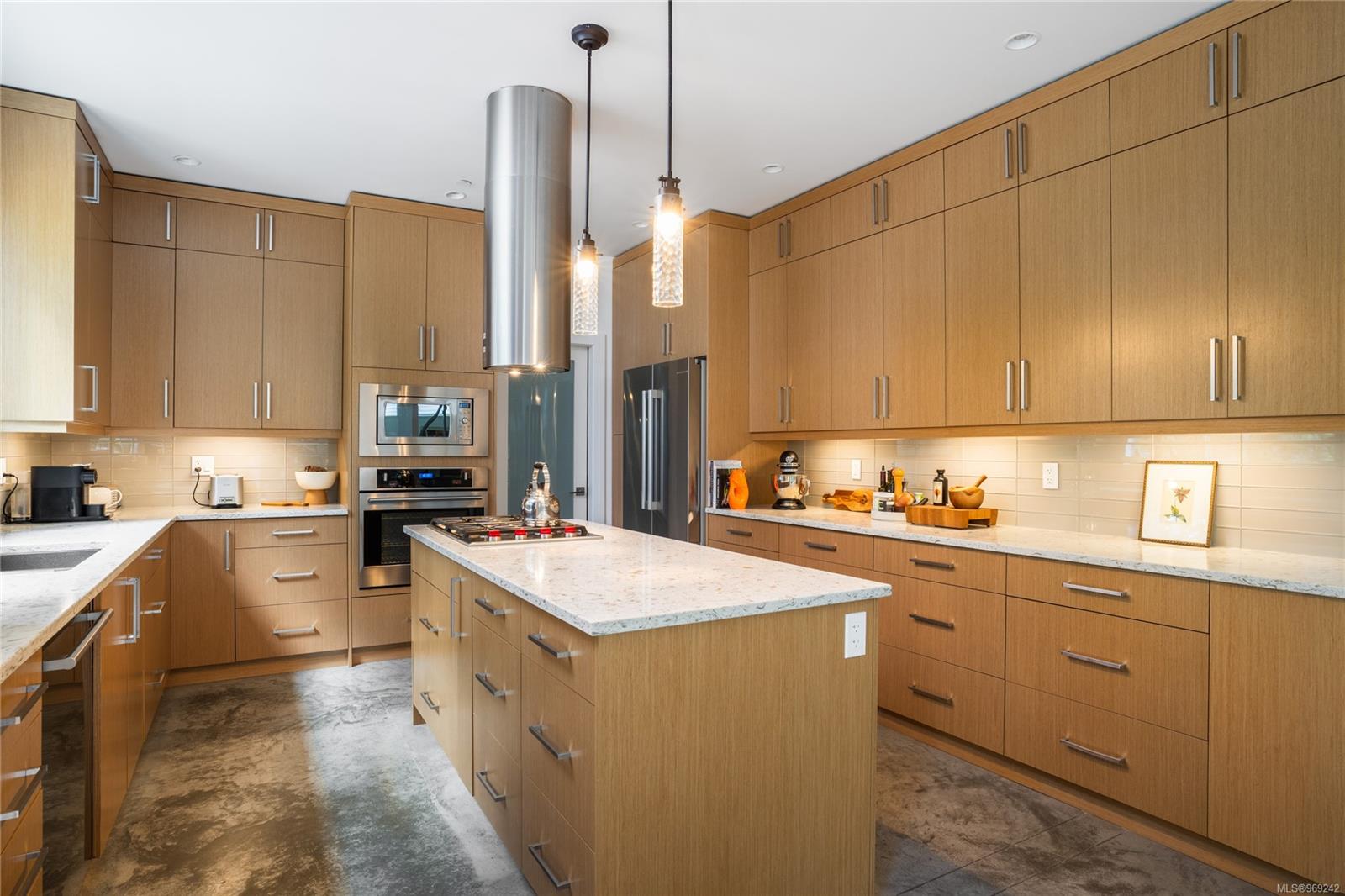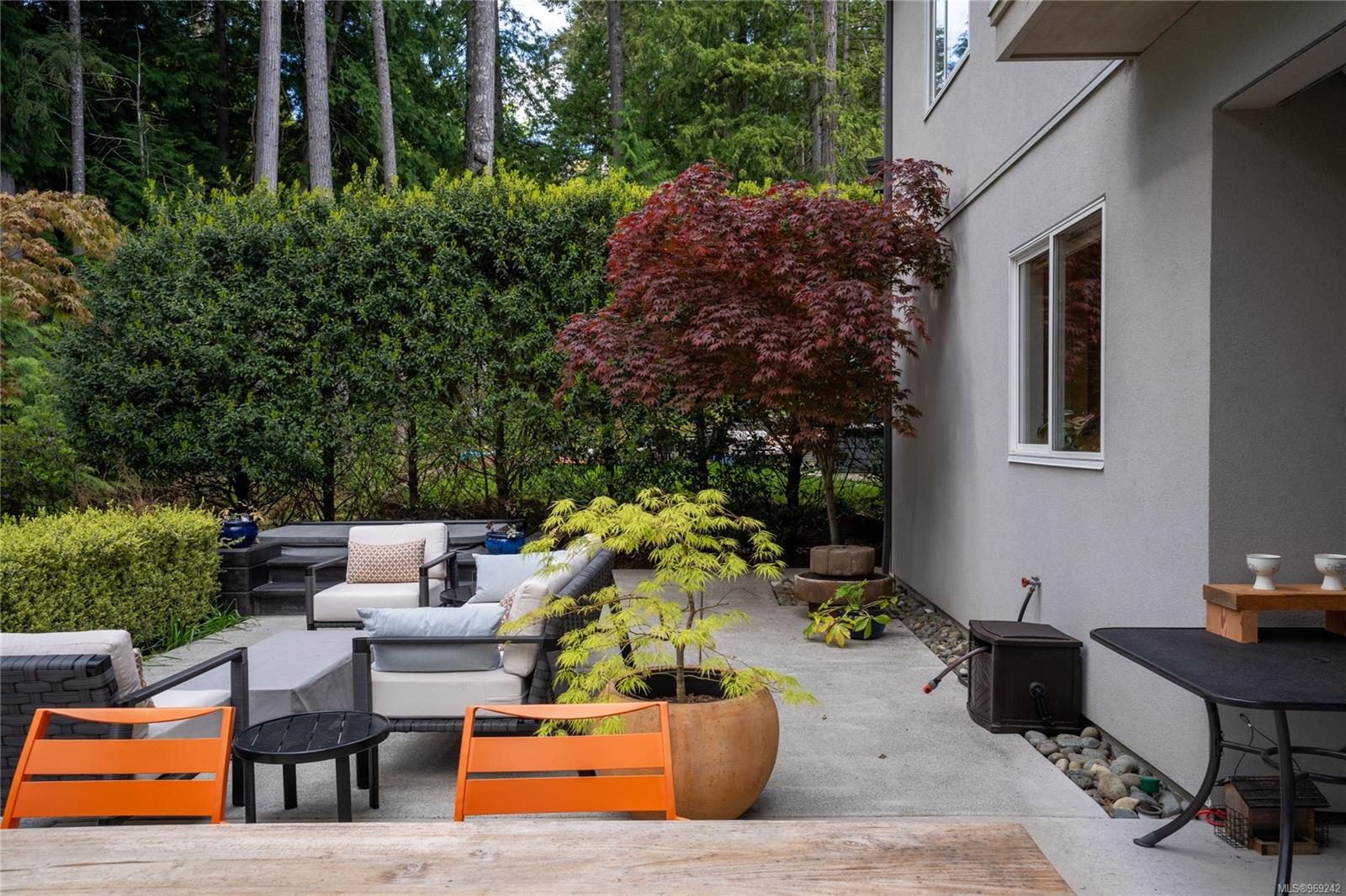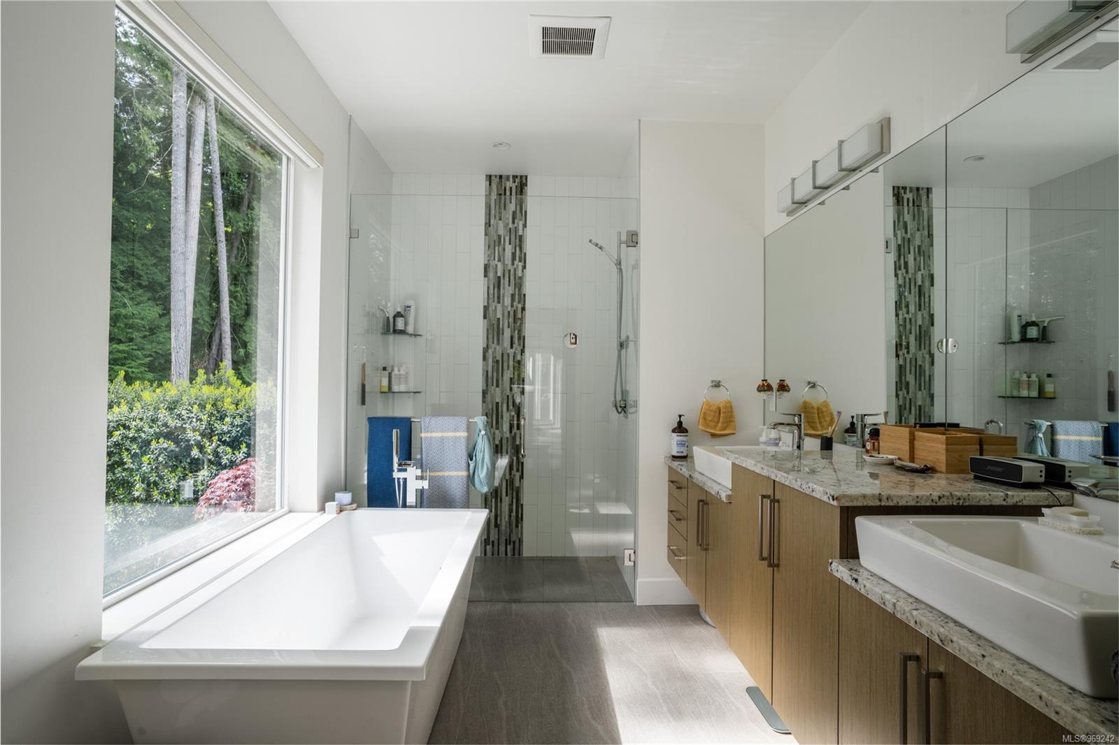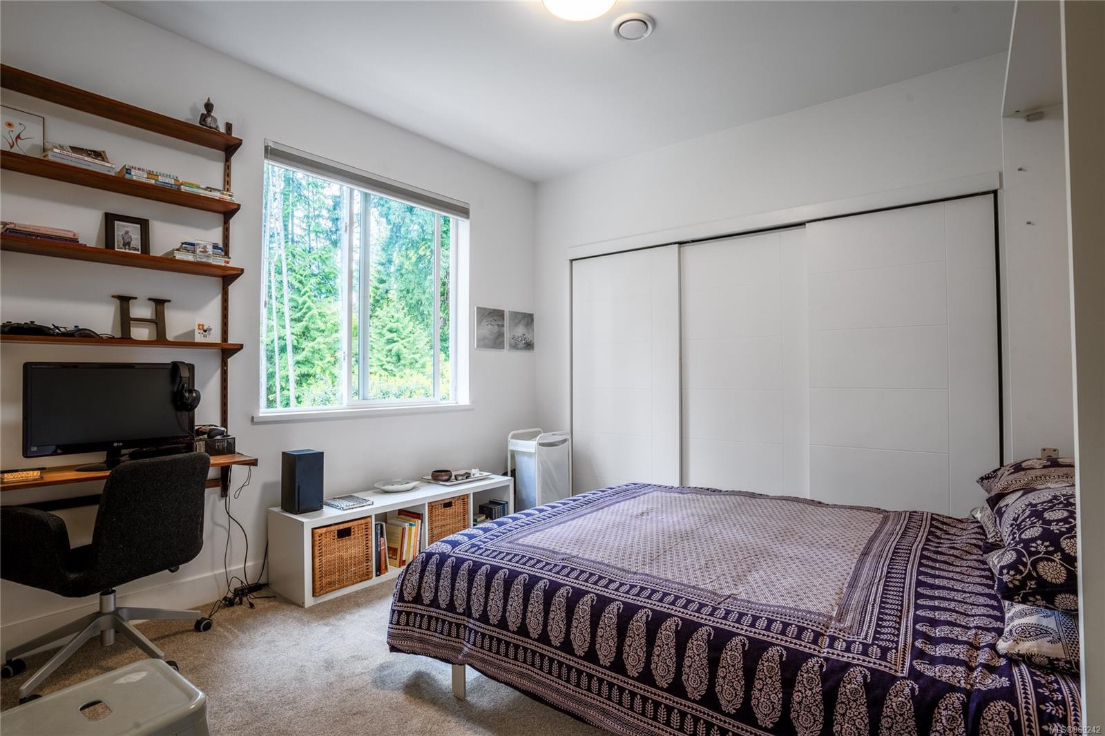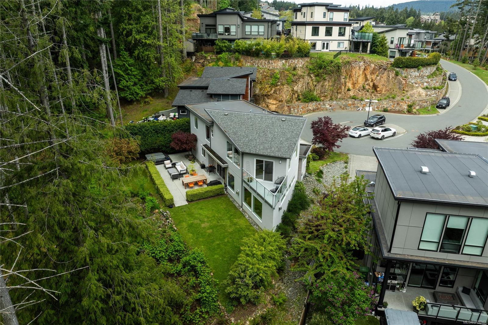 This multiple CARE award winning home is privately situated at the end of a quiet cul-de-sac, surrounded by nature & backs onto protected parkland. Built by Bowsey Construction, this contemporary home offers 5BEDS & 3BATHS drenched in thoughtful design detail from the moment you enter the front door - vaulted ceilings, new Jotul modern gas fireplace & heated, polished concrete floors throughout the main floor! Open-concept kitchen & dining room feature Wolf gas cooktop w/unique hoodfan over the island, new Bosch fridge, lots of cabinetry to the ceiling, & space to host many in the spacious dining area -opening up to the rear yard w/forestry wrapping the rear exterior, where you can soak in the hot tub or relax on the outdoor seating & dining areas. Primary suite has a private balcony, walk-thru closet & spa like ensuite w/double vanity, rainfall shower & soaker tub, where you can relax, unwind & take in all of the peaceful views. Come enjoy the resort lifestyle that is Bear Mountain!