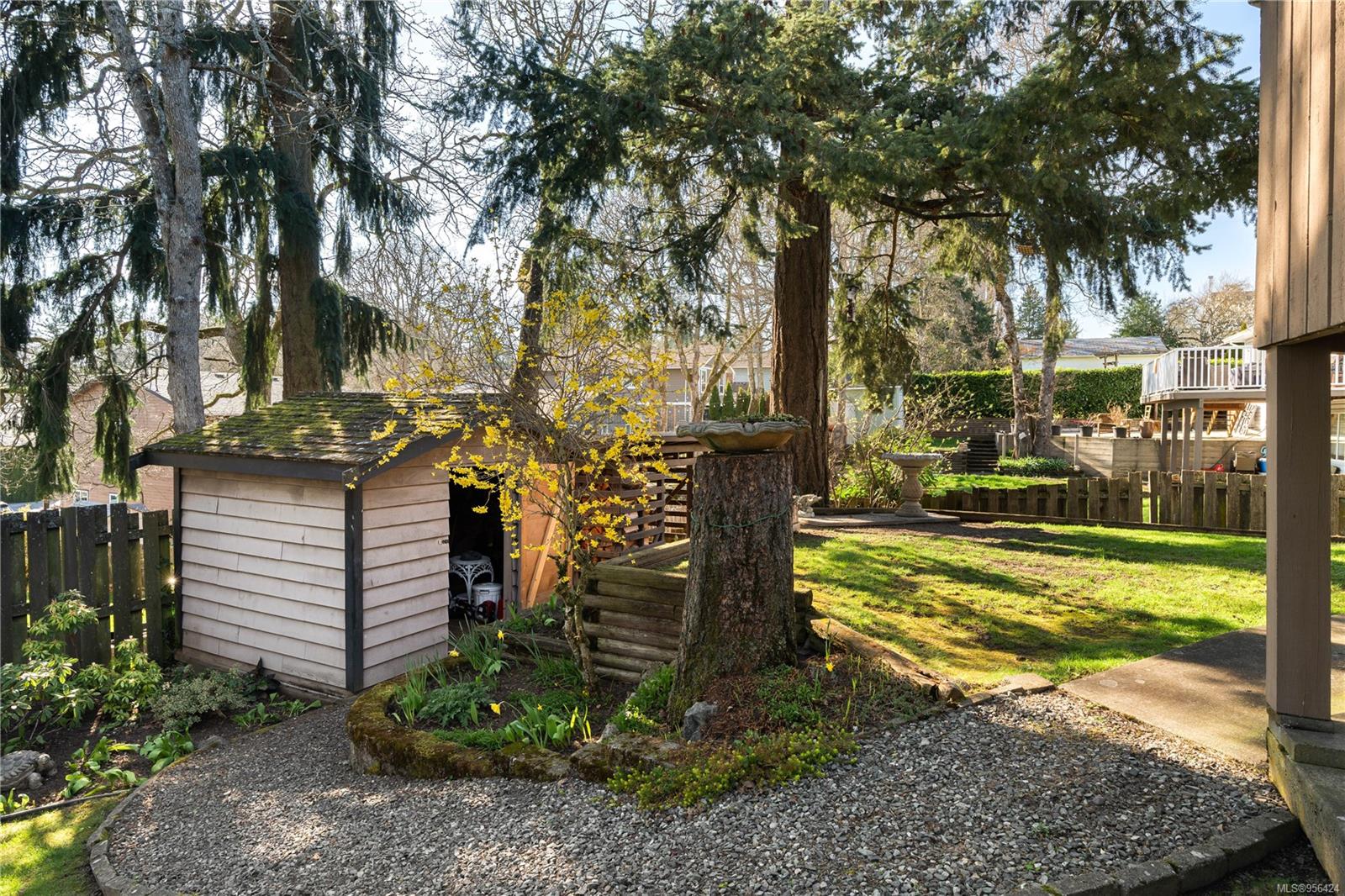 Welcome to your Saanich oasis on a 9450sf lot with fantastic suite potential that offers the perfect blend of comfort & serenity, nestled on a quiet street. This stunning home boasts main level living with a walk-out lower level plus a workshop. The main level features 3 bedrooms, 2 bathrooms plus a spacious living room with a wood burning stove. The beautifully appointed kitchen opens up to a sunny, south-facing deck surrounded by mature trees. Step off the deck to a sunny backyard oasis, featuring garden beds & a large side yard. The lower level of the home is equally impressive, with an additional bedroom & bathroom plus a large flex space that can be used as a family room or home office. With suite potential, this level offers flexibility for additional living space for multigenerational families or rental income. Lastly, a workshop provides the perfect space for DIY projects or hobbies. Situated atop a hill, this home offers privacy & stunning views of the surrounding area.