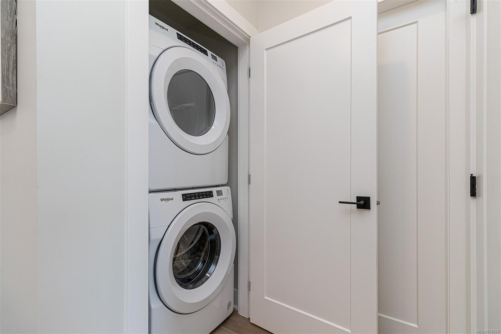 Move in right away! Welcome to 'Trailside at the Lake.' An idyllic new development poised on the shores of Langford Lake offering 1 and 2 bedroom homes equipped with all the amenities for modern living. With lake or trail views from almost all units, the homes are bright and airy including large windows to showcase the views, 9 ft ceilings, luxury laminate flooring, spacious kitchens with quartz counters, breakfast bars, and a Whirlpool appliance package. Each unit has air conditioning and one secured (EV ready) parking space, as well as a storage locker on their floor. Building amenities include a gym, yoga space, lounge & work from home office space. Just steps to the Ed Nixon trail and Langford Lake for all your outdoor adventures. View the show suite and building by appointment.