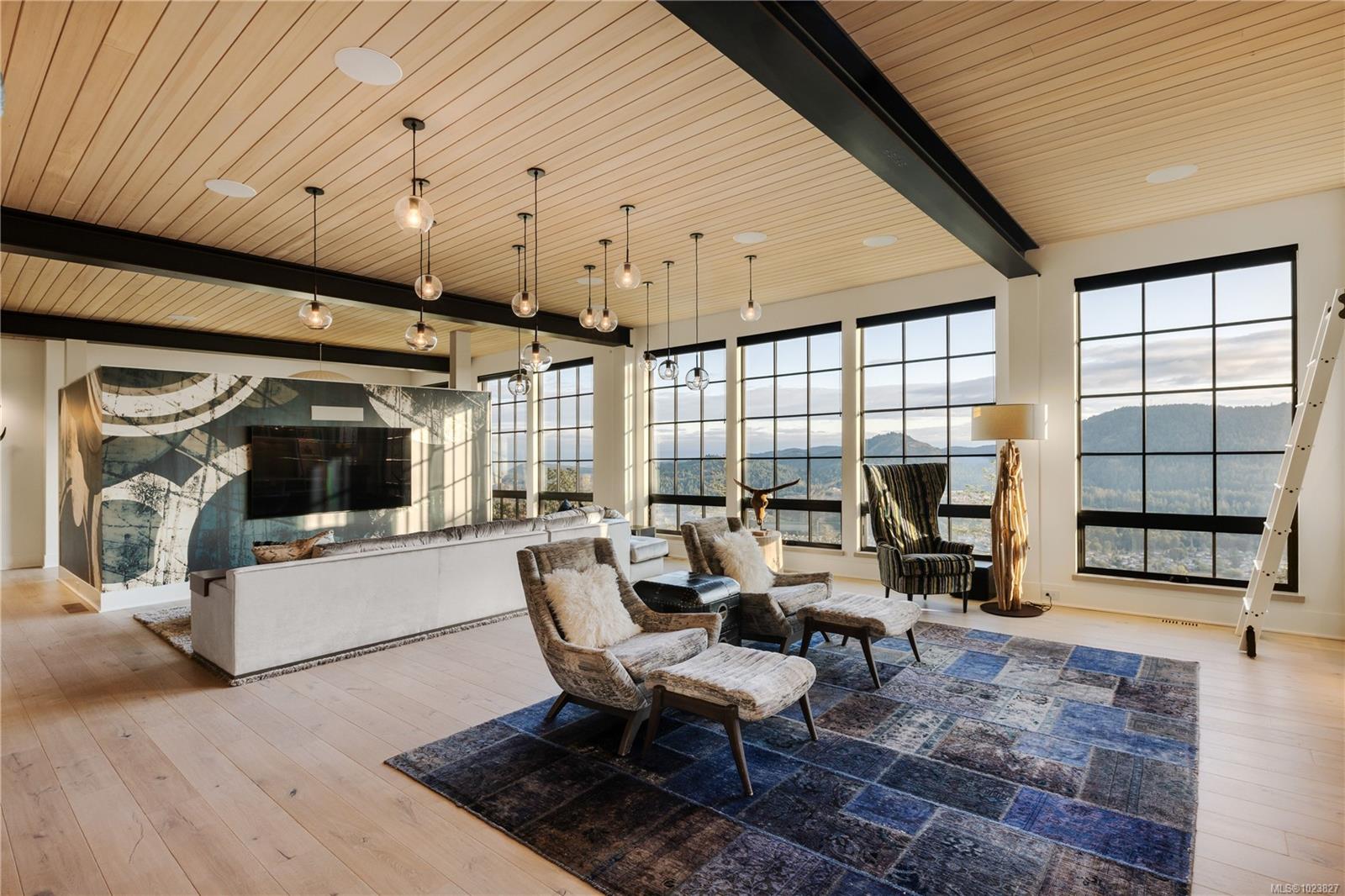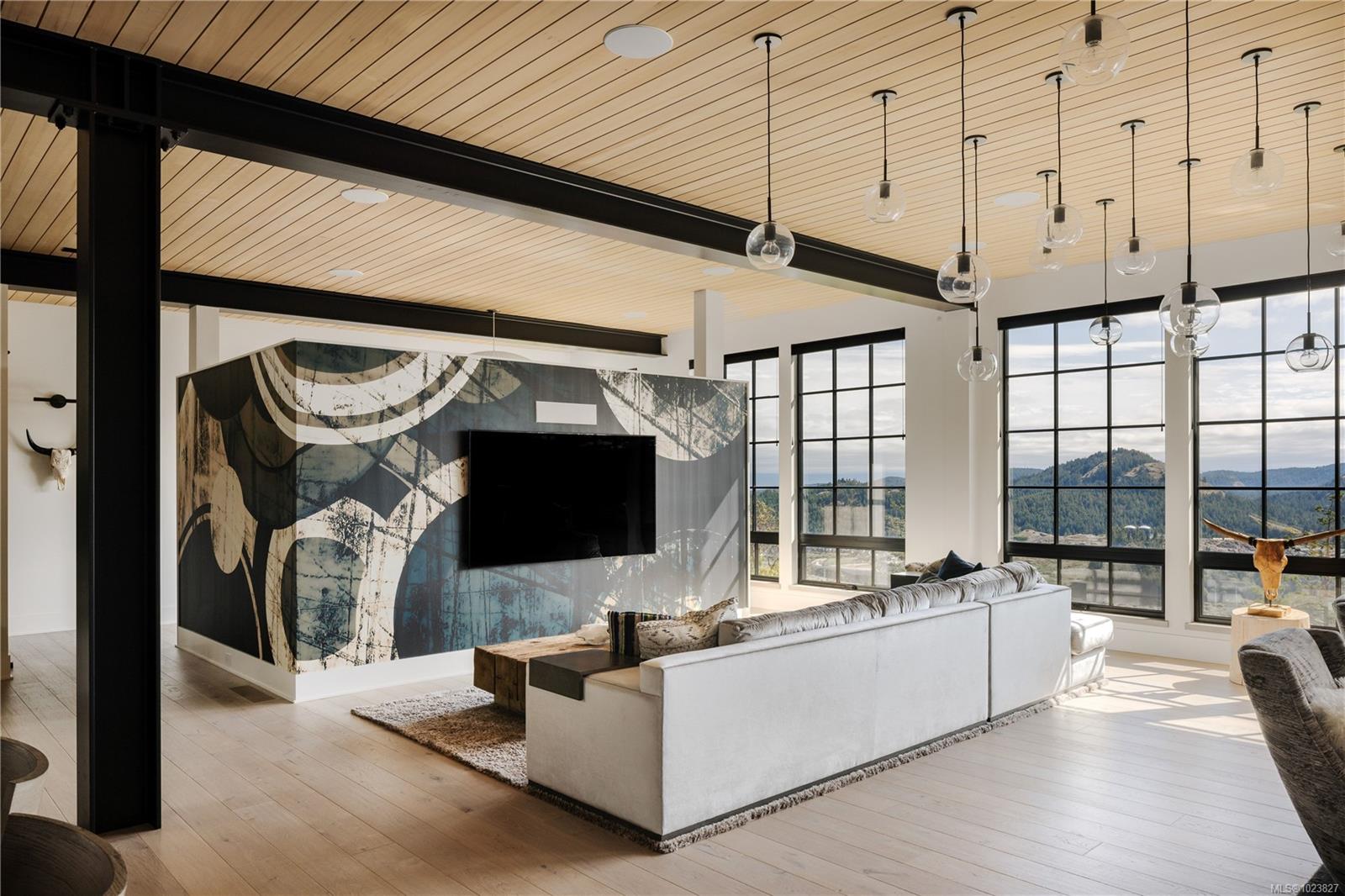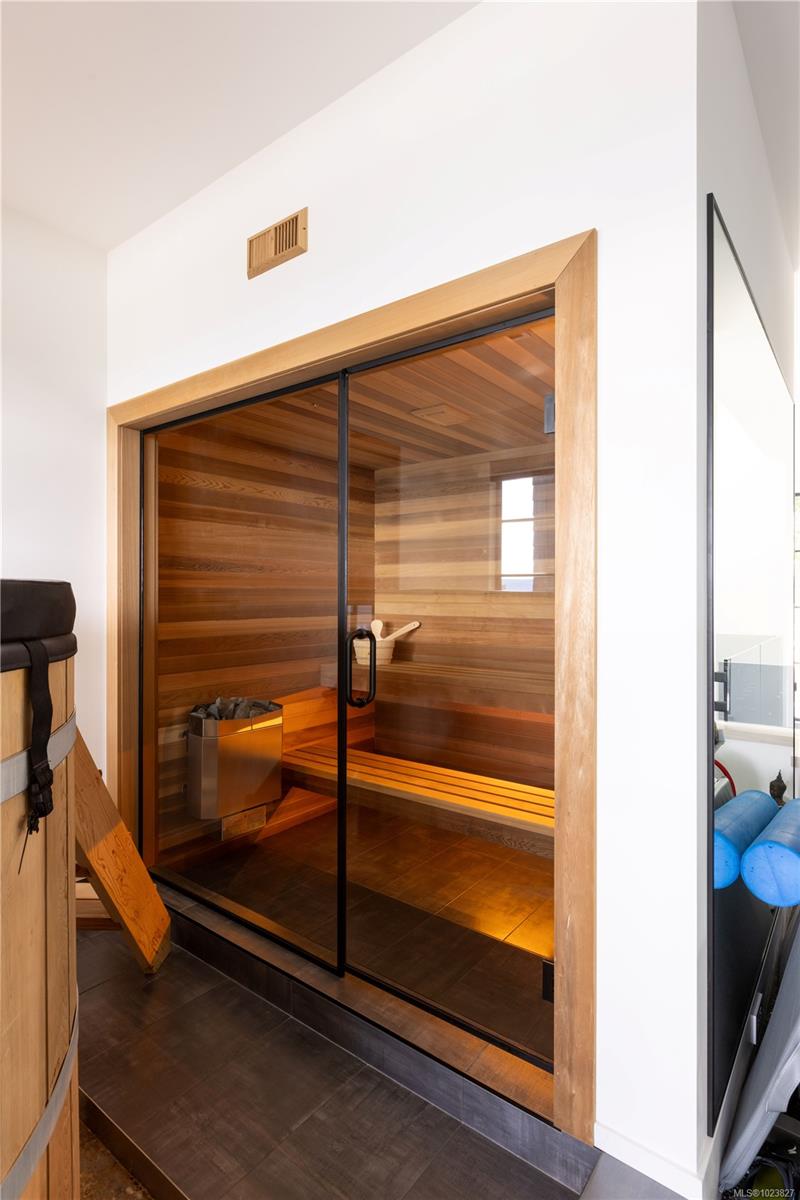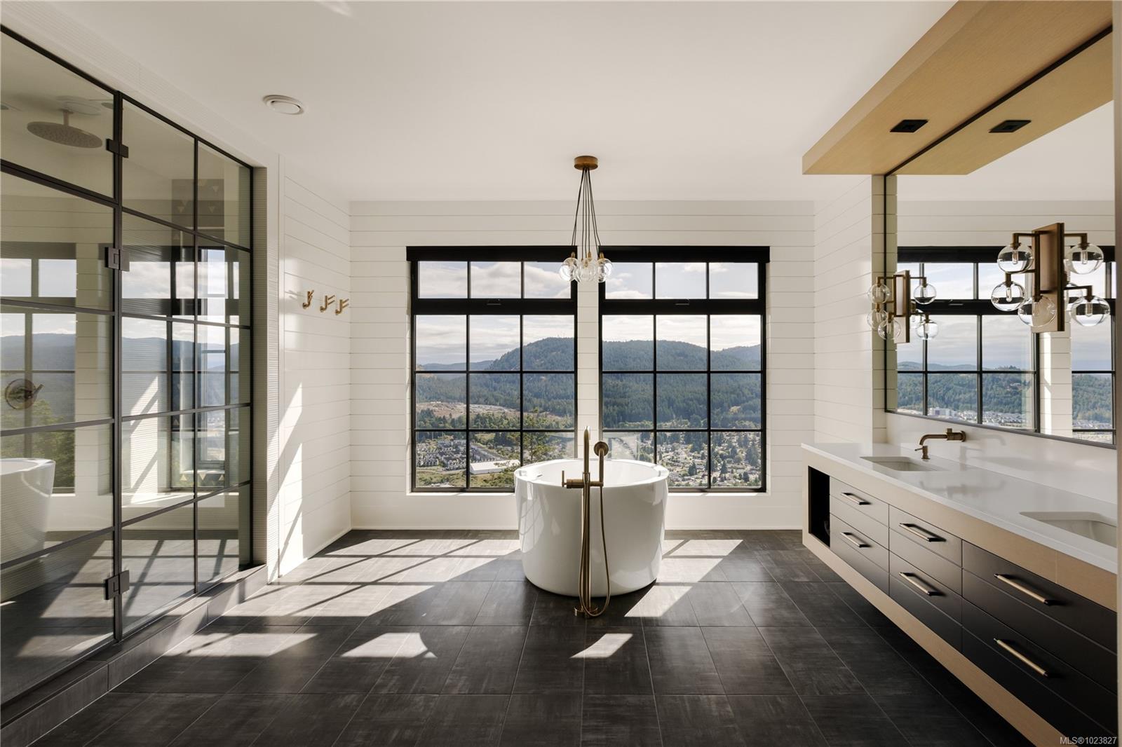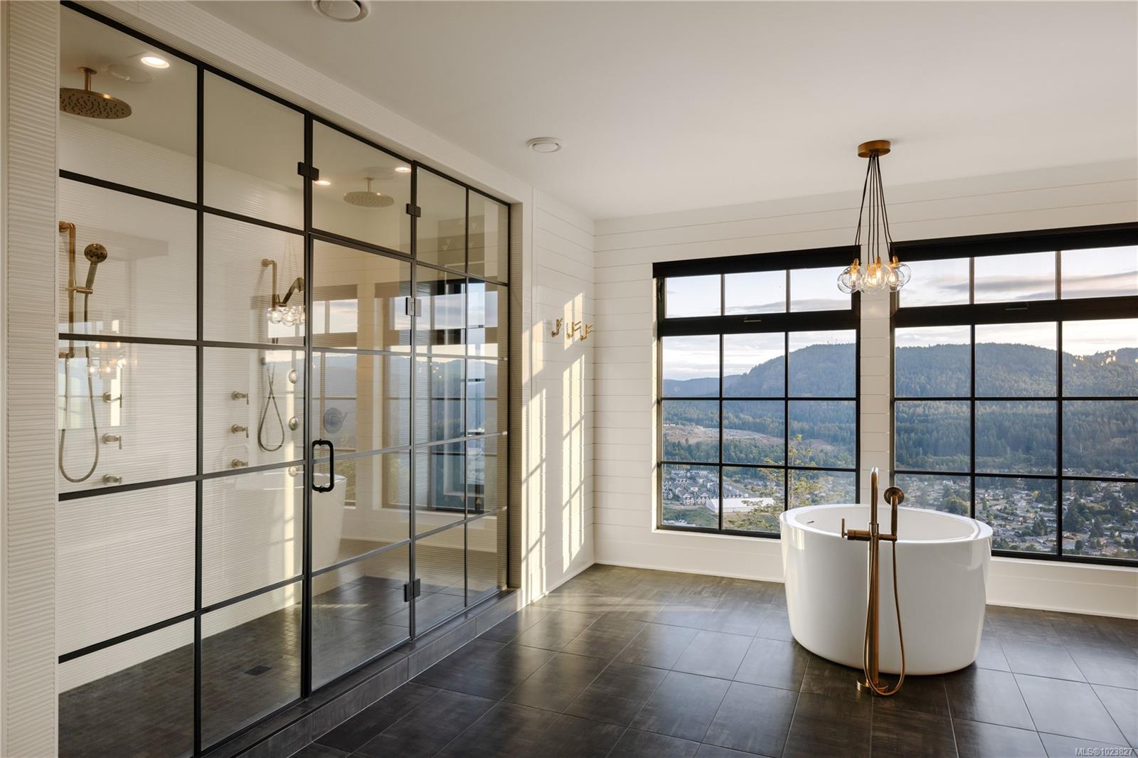 Perched high above the Westshore, this one-of-a-kind custom home captures sweeping water, forest and sunset views. Designed for elevated living and entertaining, the main floor features a chef-inspired kitchen with premium appliances, walk-through pantry with wine fridge and ice maker, and seamless access to a covered outdoor grill area. Expansive windows flood the open living space with light, anchored by a striking fireplace wall. A private office and mudroom with built-ins, pet wash, and triple garage add everyday function. Upstairs, the primary retreat offers a spa-like ensuite, Japanese tub, oversized shower, and custom closet, plus a wellness wing with gym, sauna, plunge, and outdoor kitchen patio. The lower level provides two ensuite bedrooms, media room, and studio. Steps to Bear Mountain Village amenities. Golf membership available!
