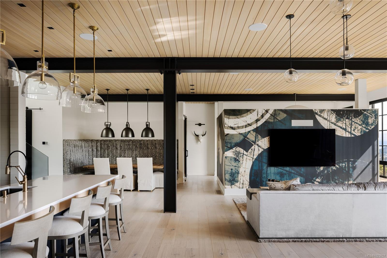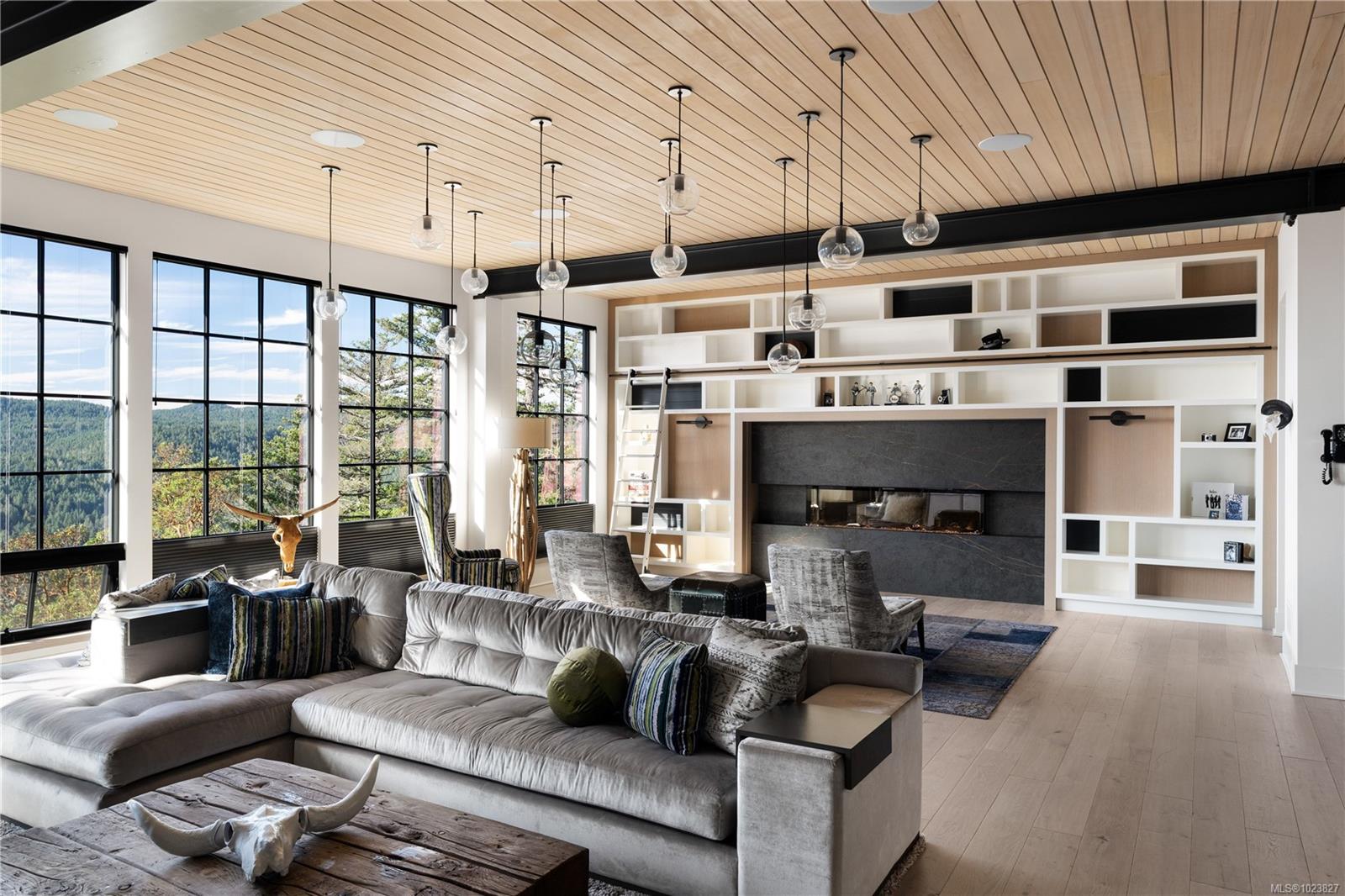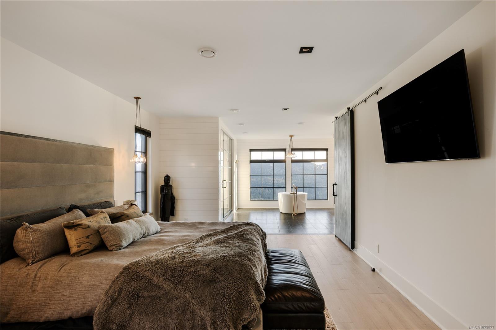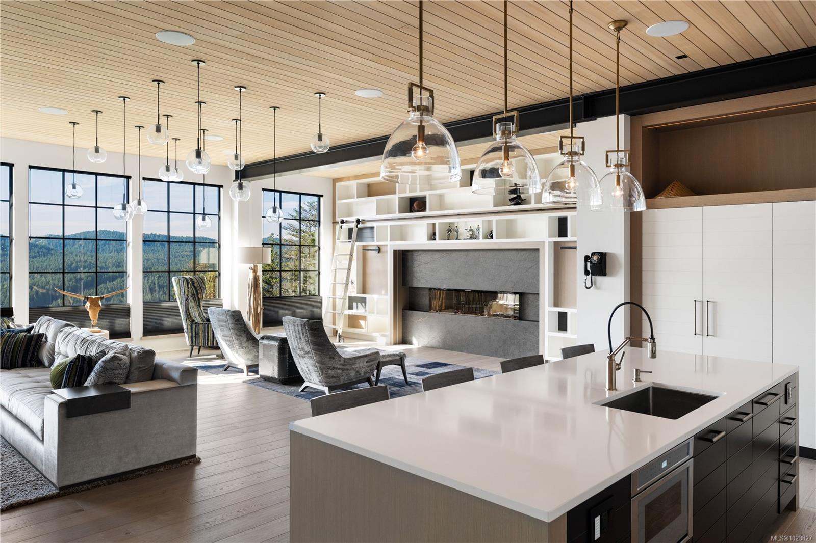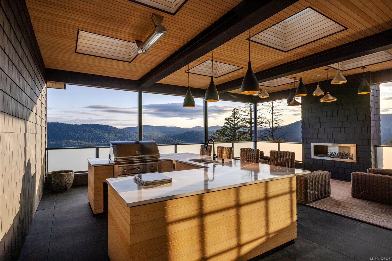 Perched high above the Westshore, this one-of-a-kind custom home captures sweeping water, forest and sunset views. Designed for elevated living and entertaining, the main floor features a chef-inspired kitchen with premium appliances, walk-through pantry with wine fridge and ice maker, and seamless access to a covered outdoor grill area. Expansive windows flood the open living space with light, anchored by a striking fireplace wall. A private office and mudroom with built-ins, pet wash, and triple garage add everyday function. Upstairs, the primary retreat offers a spa-like ensuite, Japanese tub, oversized shower, and custom closet, plus a wellness wing with gym, sauna, plunge, and outdoor kitchen patio. The lower level provides two ensuite bedrooms, media room, and studio. Steps to Bear Mountain Village amenities. Golf membership available!