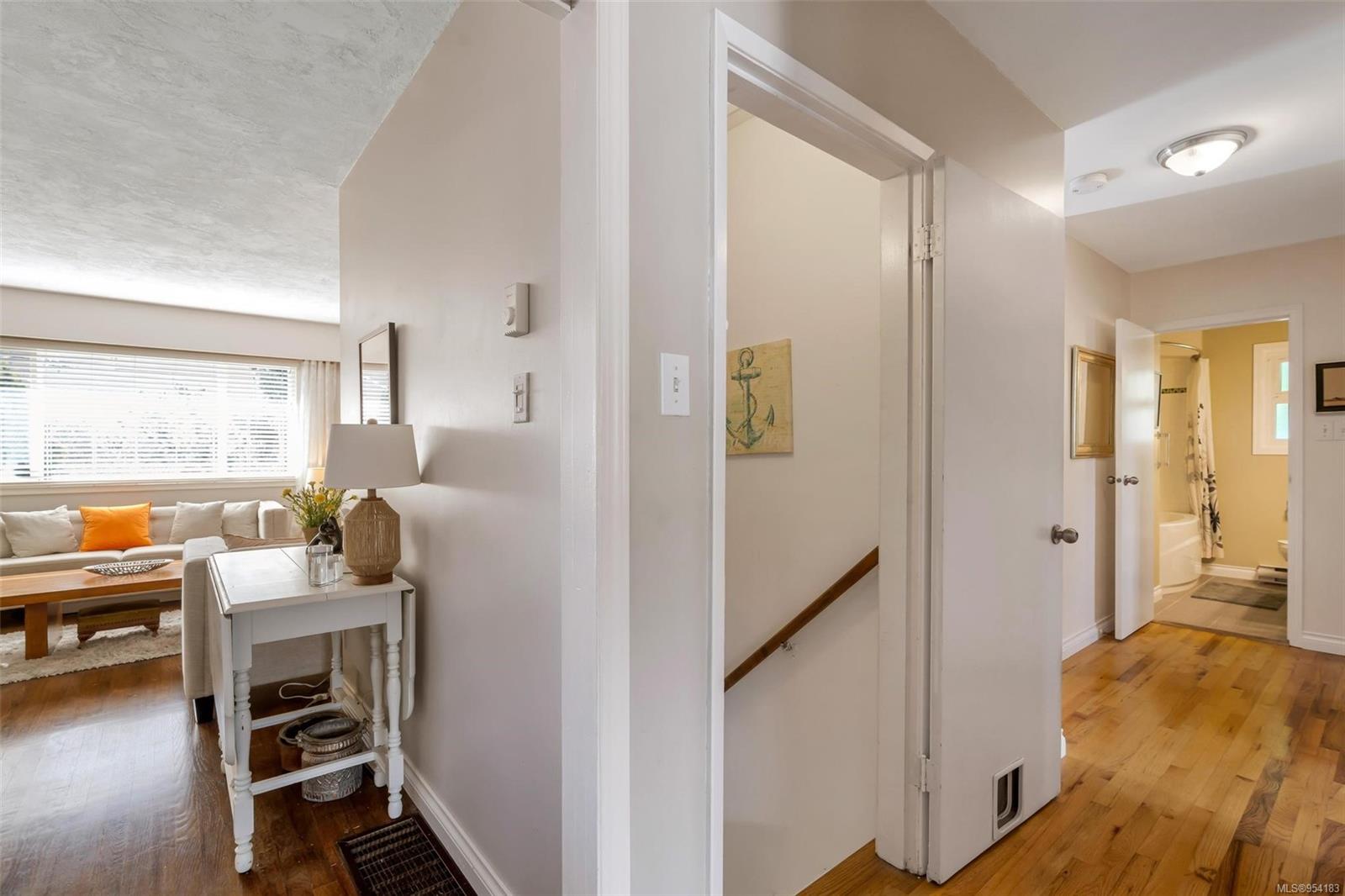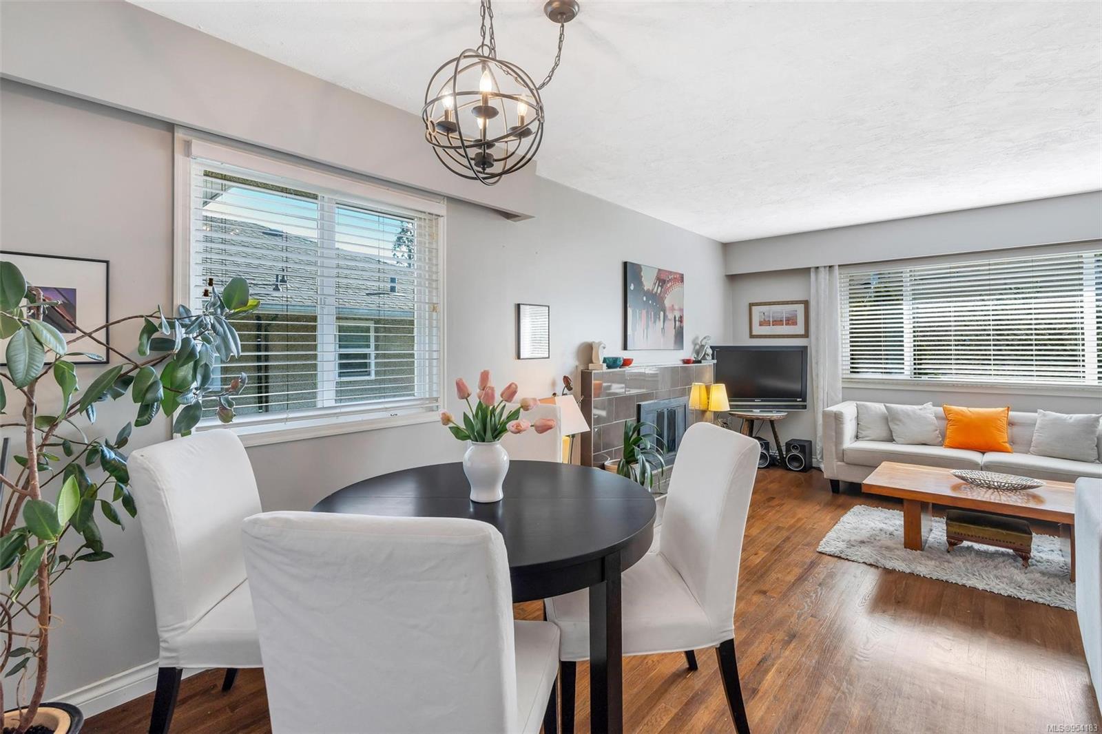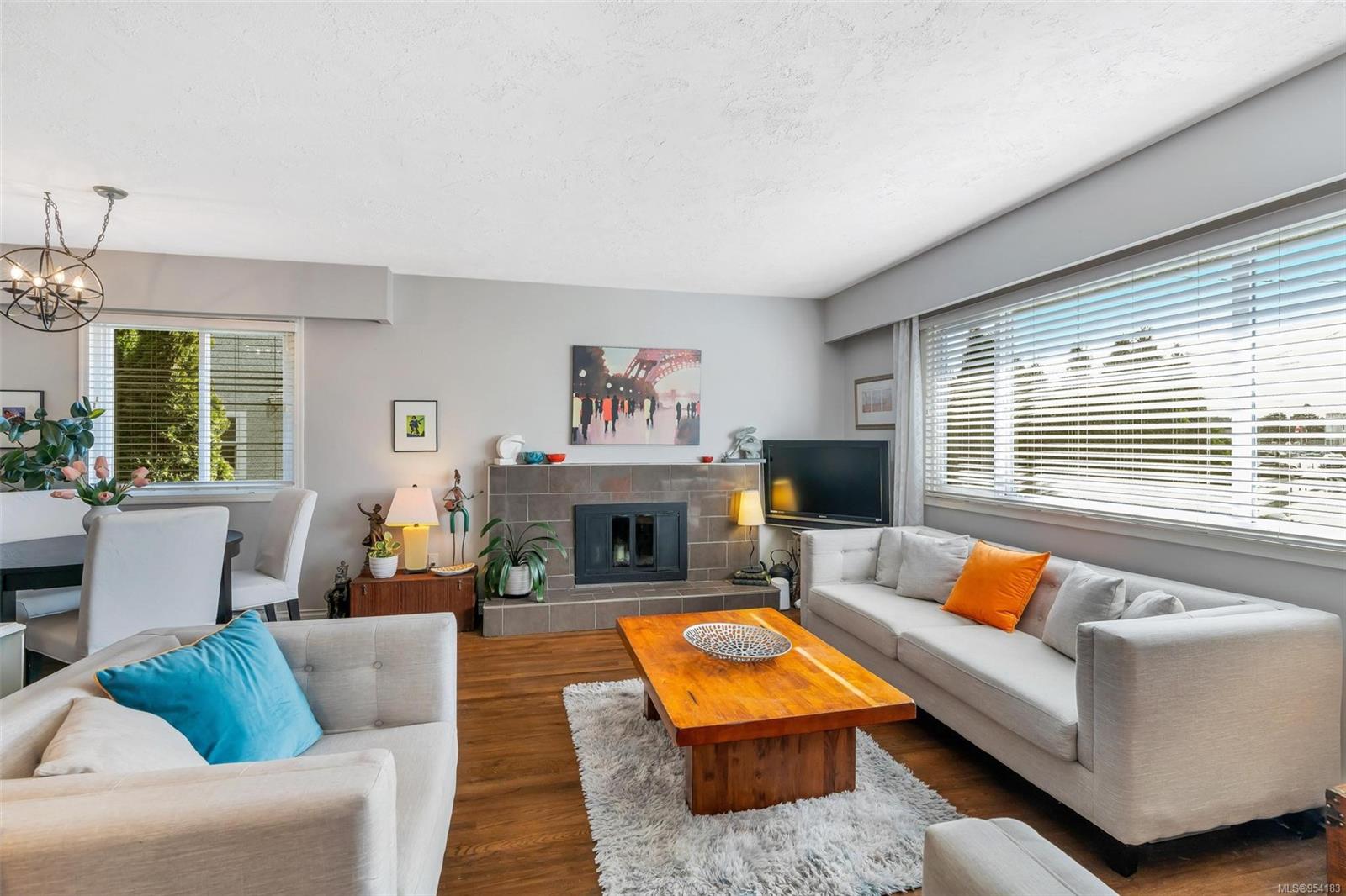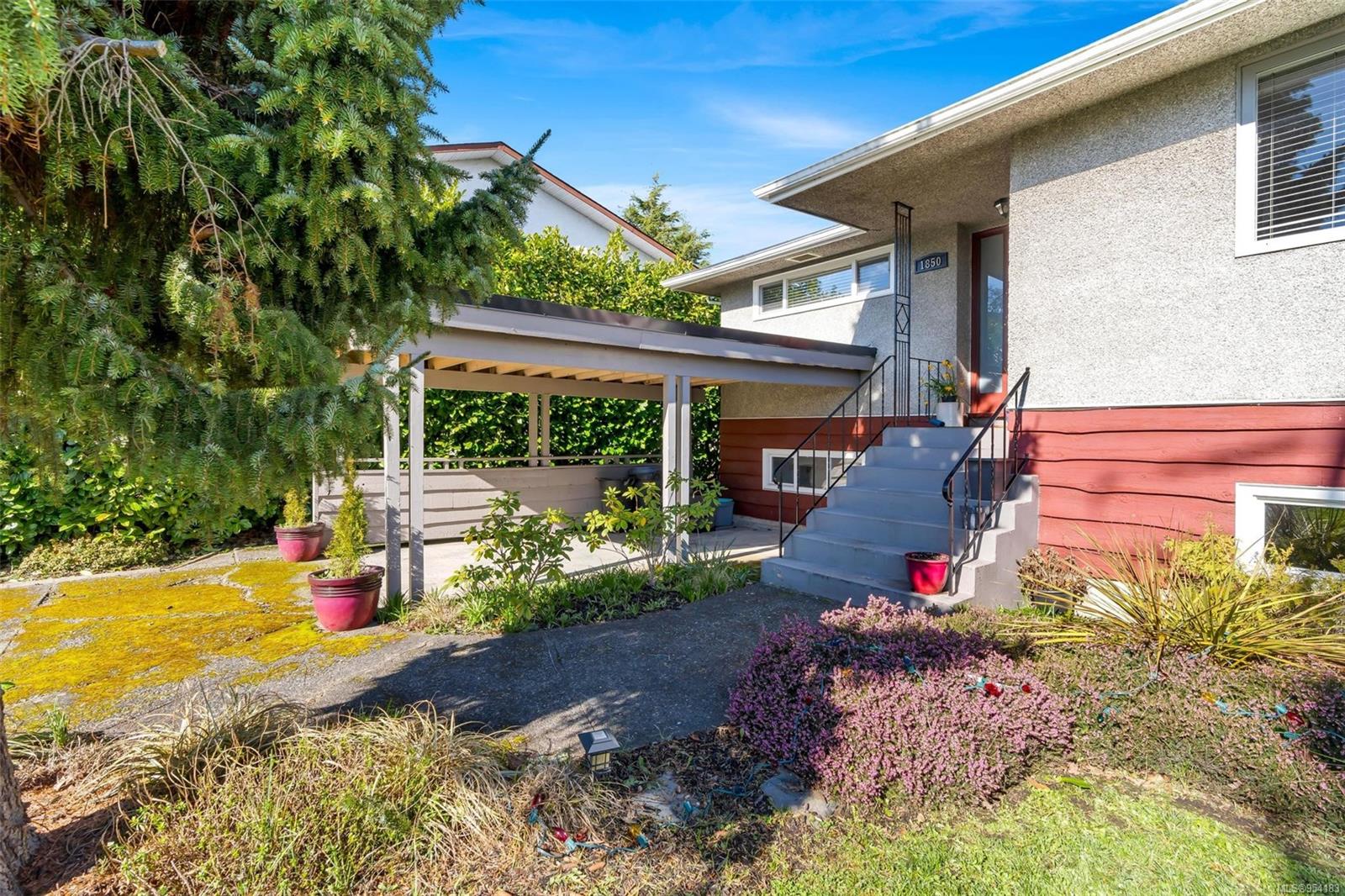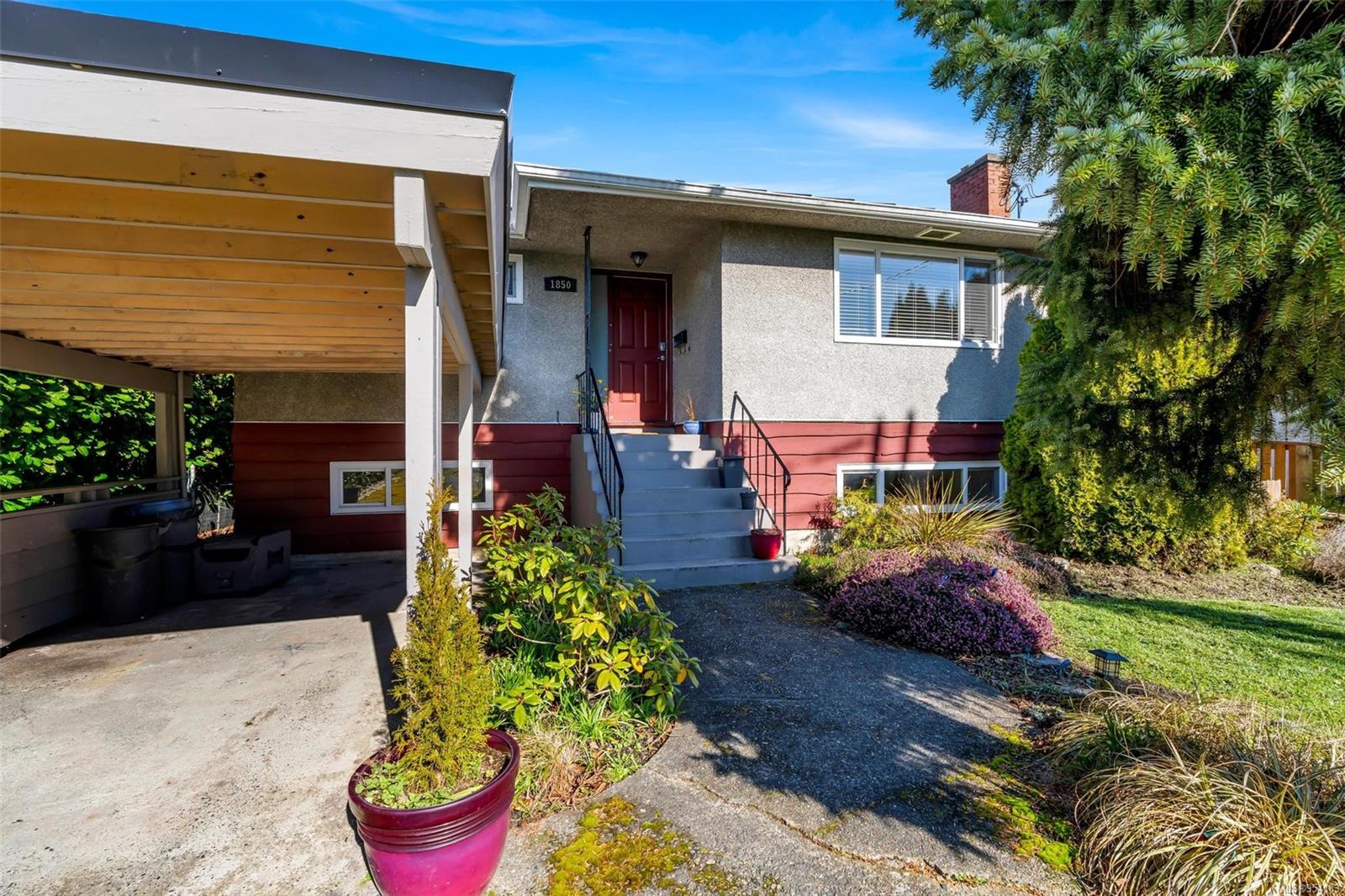 Welcome to 1850 Adanac Street! This 1961-built home, nestled on a private 5,925 square foot lot, sits on a tranquil no-through road. As you step inside, you're greeted by beautifully preserved original oak floors and abundant natural light flowing through the south and east-facing windows, accentuated by a cozy wood-burning fireplace in the living room. The kitchen has been tastefully updated with solid maple shaker doors, stainless steel appliances, & a spacious floor-to-ceiling pantry. It opens up to a deck & backyard oasis, complete with mature trees, garden space, & plenty of room for outdoor activities. Tucked privately away are three bedrooms & a 4 piece bathroom with deep soaker tub. Downstairs, you'll find a versatile den, laundry room, & a separate two-bedroom suite offering excellent rental potential. Conveniently located near the hospital, DT, Camosun & UVic, with updated features including a metal roof & vinyl windows, this home seamlessly blends charm with modern comforts.