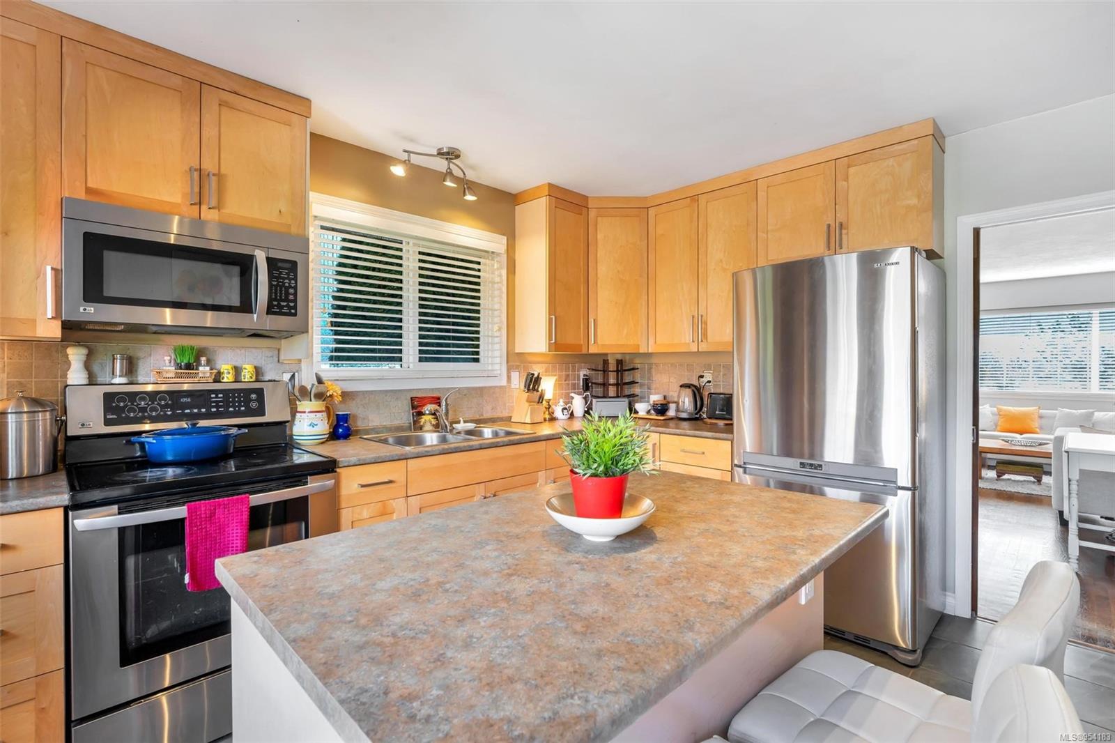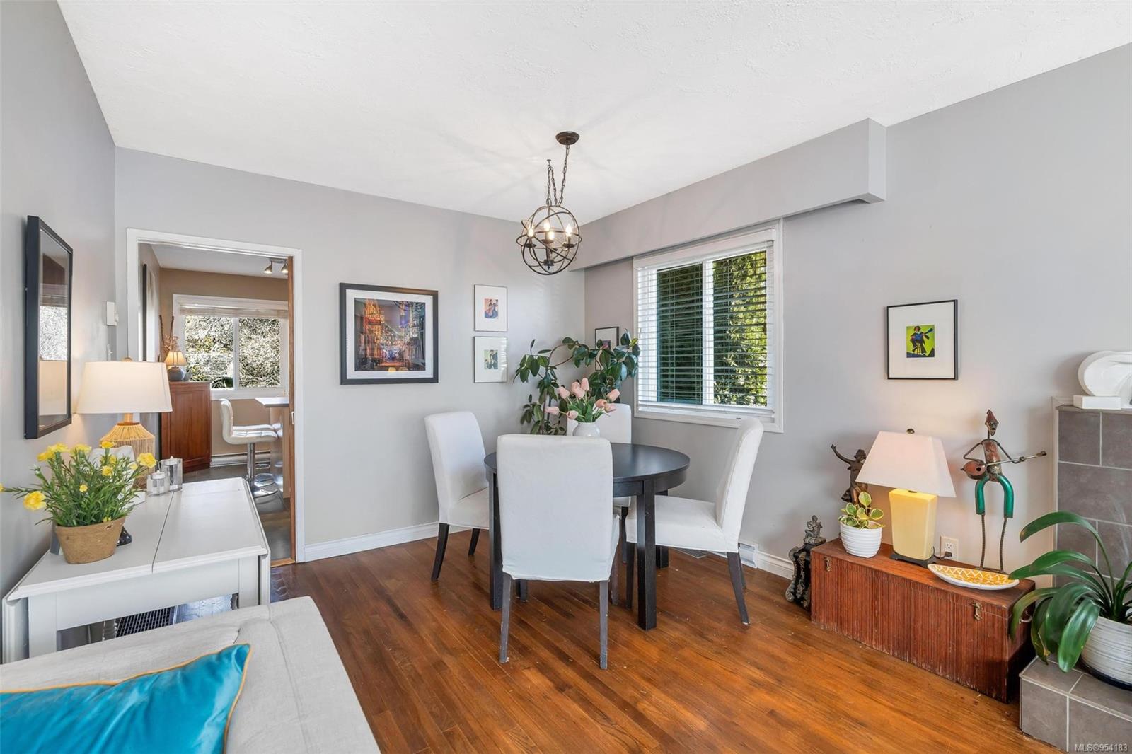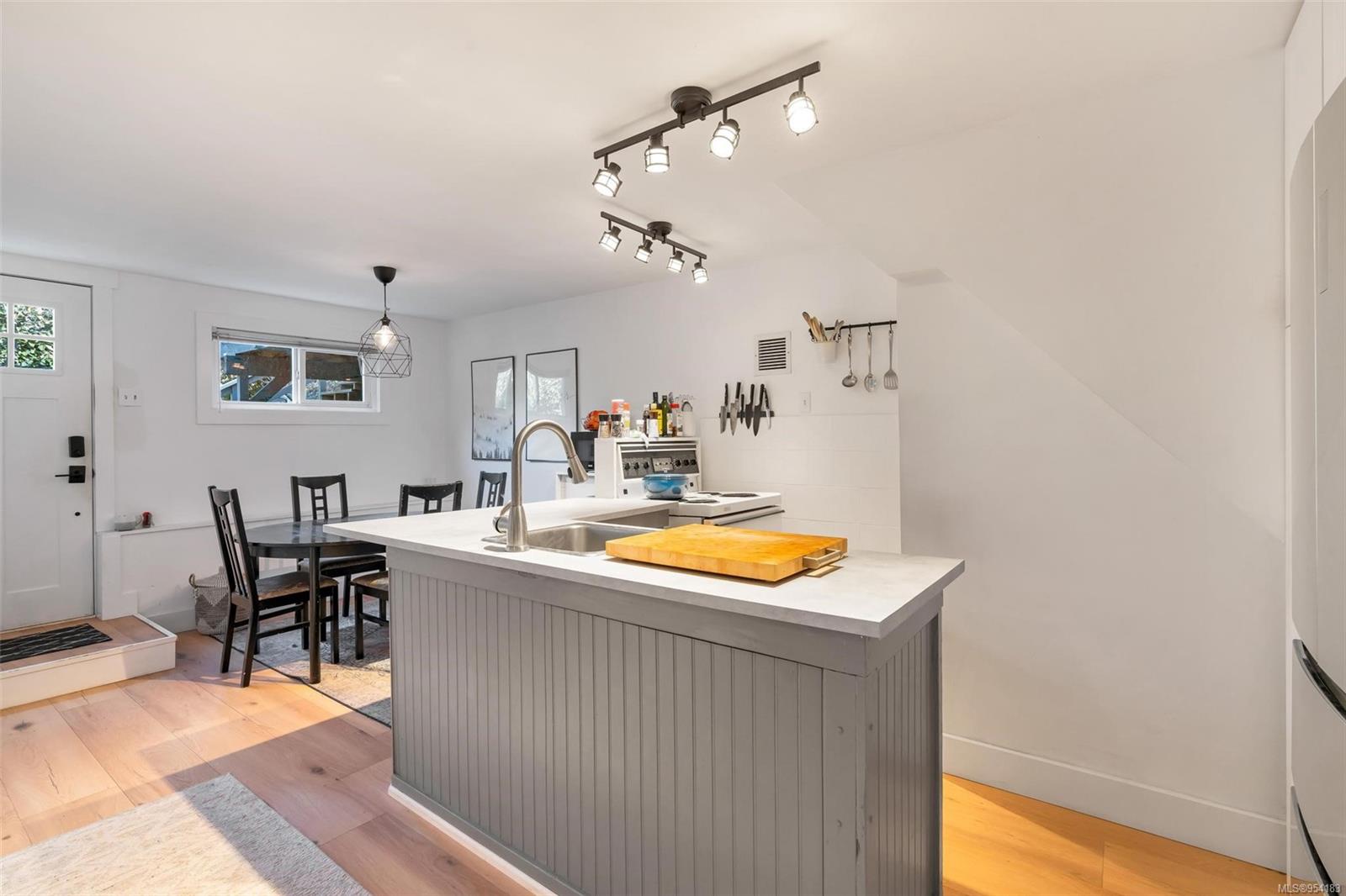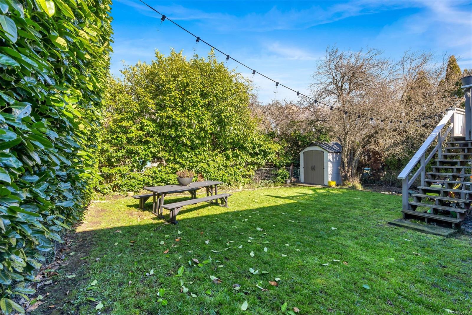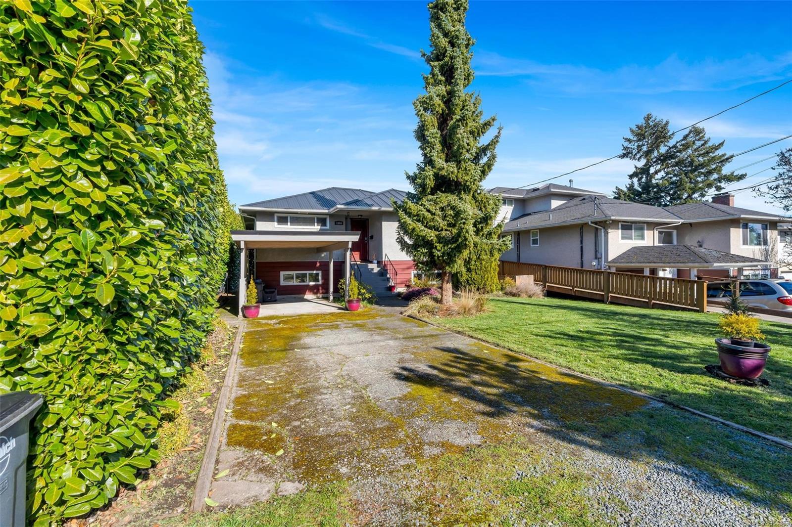 Welcome to 1850 Adanac Street! This 1961-built home, nestled on a private 5,925 square foot lot, sits on a tranquil no-through road. As you step inside, you're greeted by beautifully preserved original oak floors and abundant natural light flowing through the south and east-facing windows, accentuated by a cozy wood-burning fireplace in the living room. The kitchen has been tastefully updated with solid maple shaker doors, stainless steel appliances, & a spacious floor-to-ceiling pantry. It opens up to a deck & backyard oasis, complete with mature trees, garden space, & plenty of room for outdoor activities. Tucked privately away are three bedrooms & a 4 piece bathroom with deep soaker tub. Downstairs, you'll find a versatile den, laundry room, & a separate two-bedroom suite offering excellent rental potential. Conveniently located near the hospital, DT, Camosun & UVic, with updated features including a metal roof & vinyl windows, this home seamlessly blends charm with modern comforts.