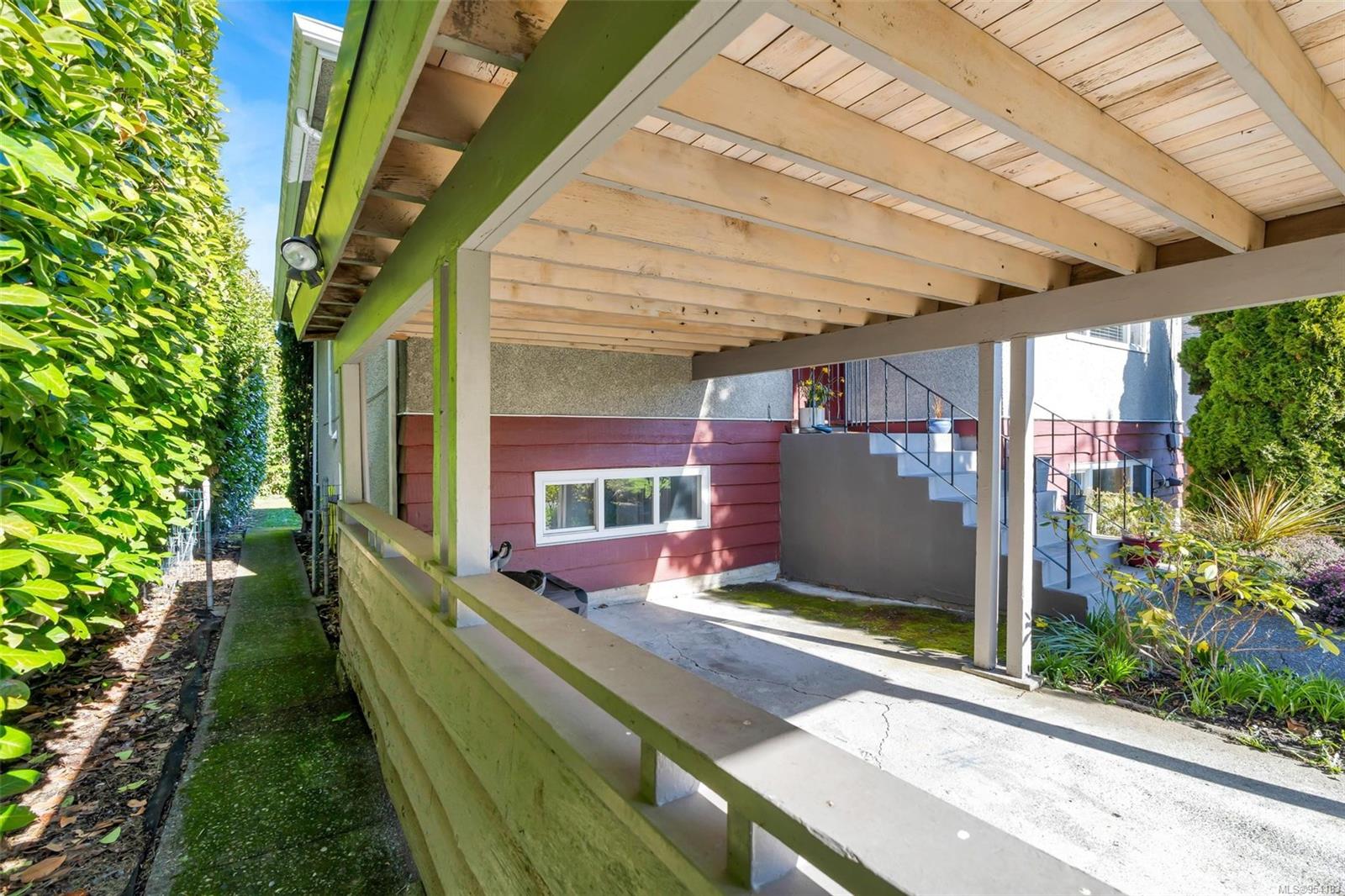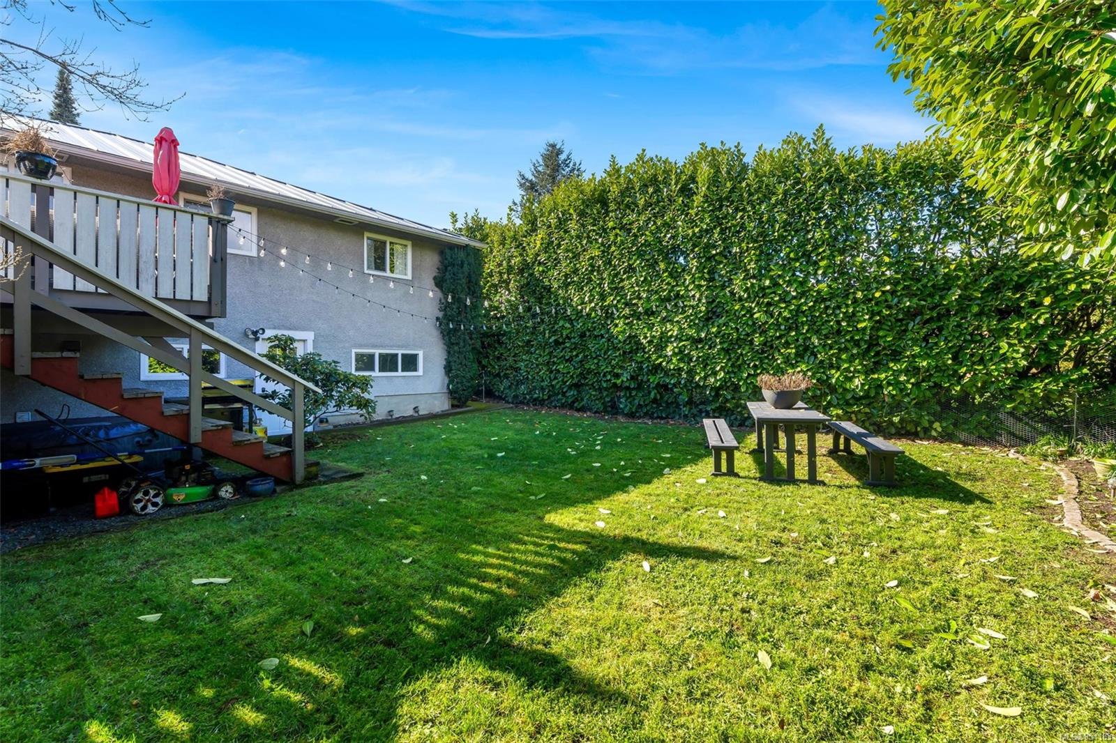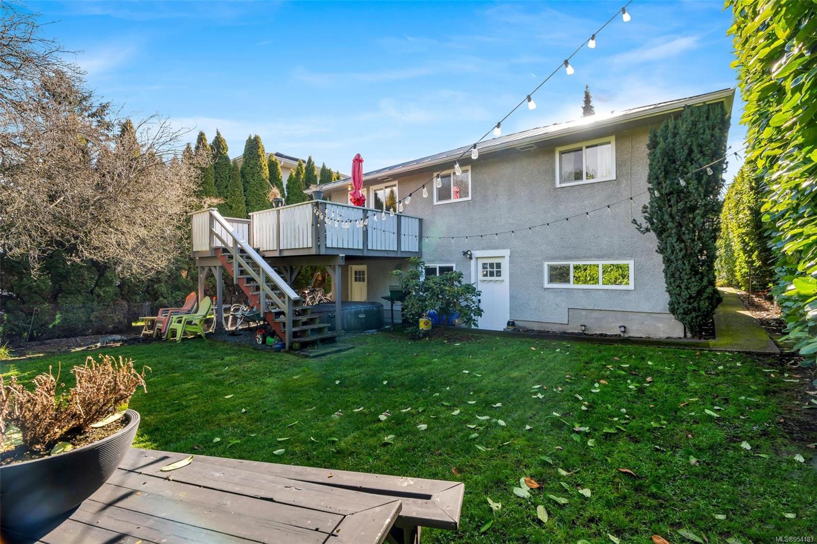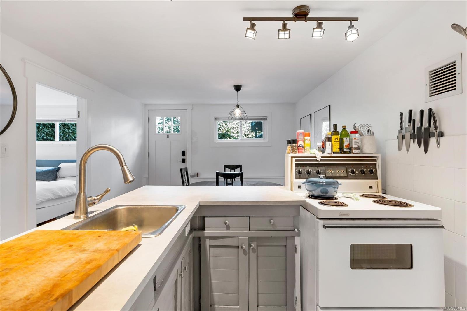 Welcome to 1850 Adanac Street! This 1961-built home, nestled on a private 5,925 square foot lot, sits on a tranquil no-through road. As you step inside, you're greeted by beautifully preserved original oak floors and abundant natural light flowing through the south and east-facing windows, accentuated by a cozy wood-burning fireplace in the living room. The kitchen has been tastefully updated with solid maple shaker doors, stainless steel appliances, & a spacious floor-to-ceiling pantry. It opens up to a deck & backyard oasis, complete with mature trees, garden space, & plenty of room for outdoor activities. Tucked privately away are three bedrooms & a 4 piece bathroom with deep soaker tub. Downstairs, you'll find a versatile den, laundry room, & a separate two-bedroom suite offering excellent rental potential. Conveniently located near the hospital, DT, Camosun & UVic, with updated features including a metal roof & vinyl windows, this home seamlessly blends charm with modern comforts.