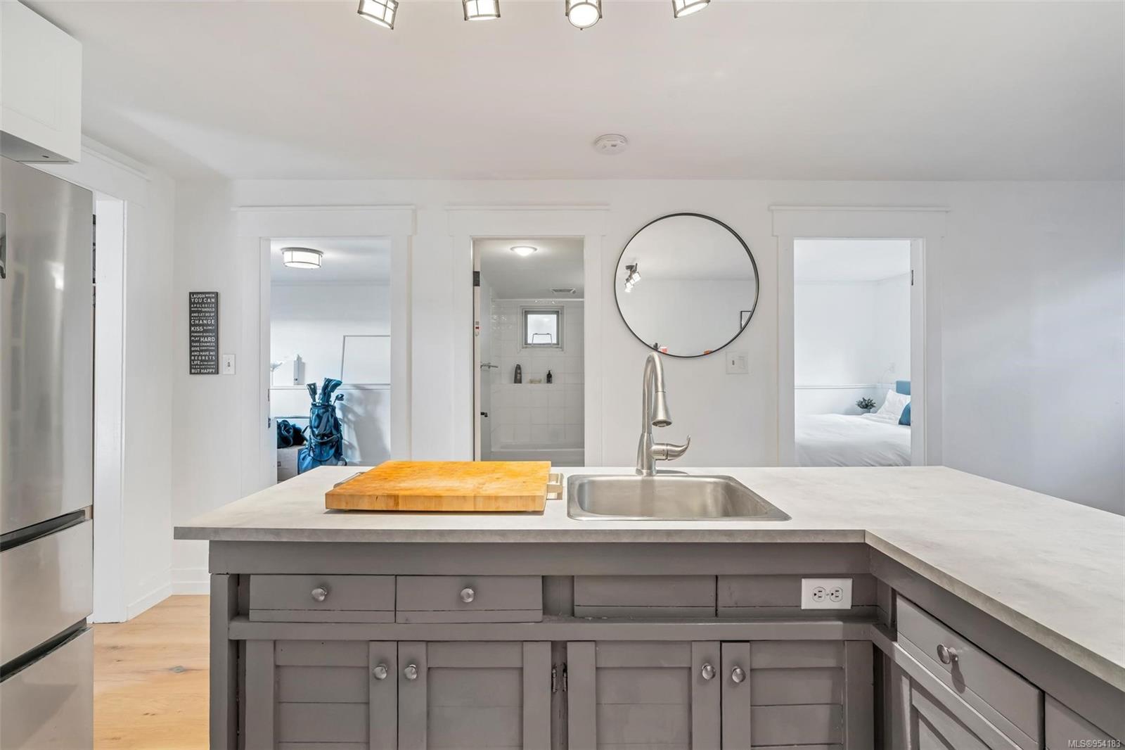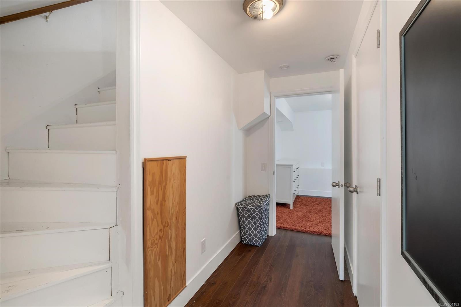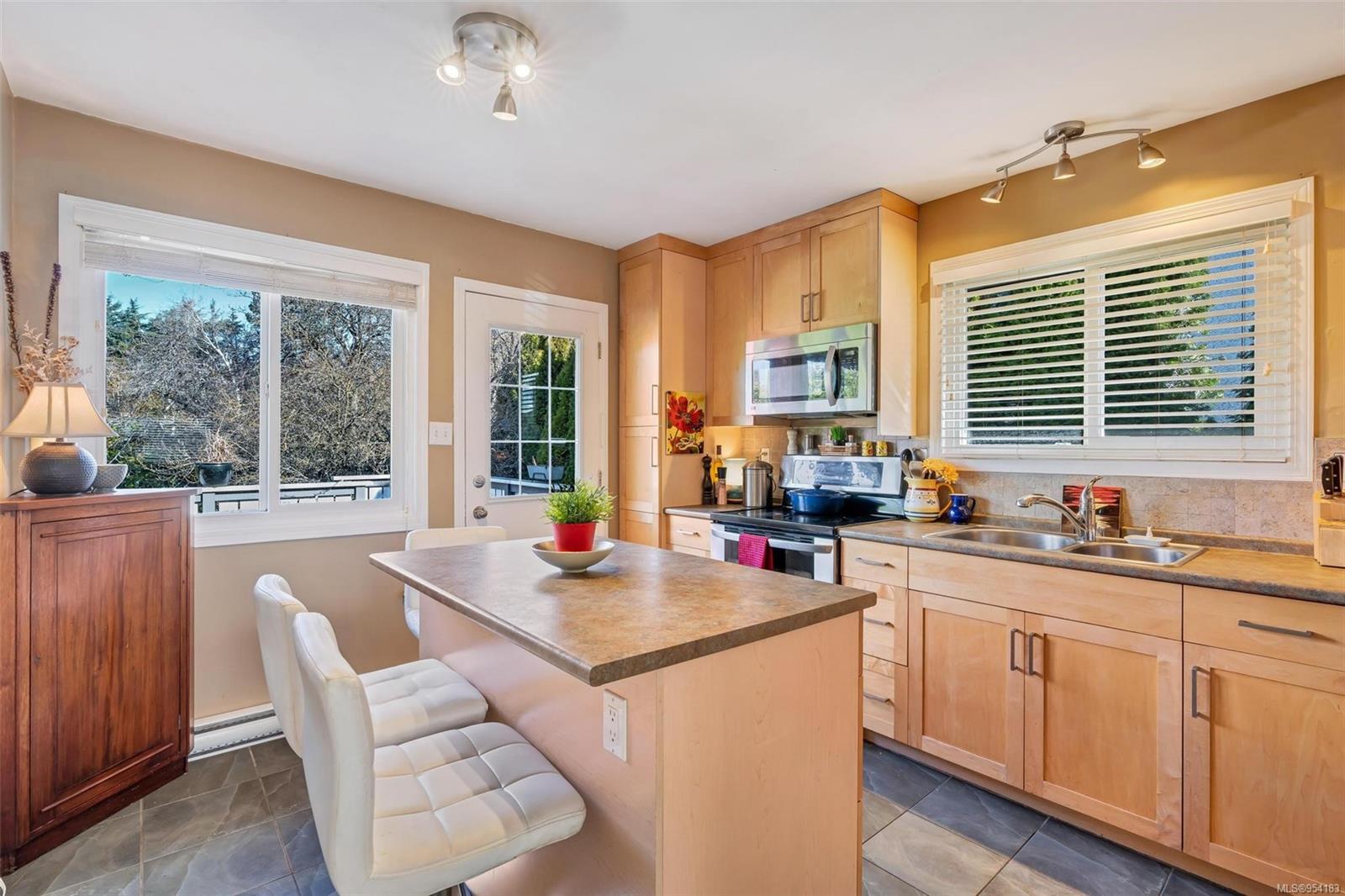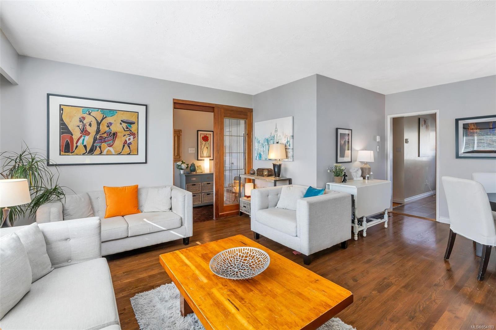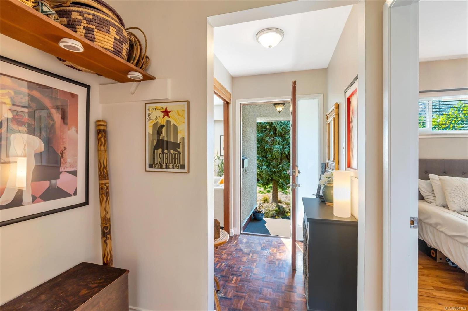 Welcome to 1850 Adanac Street! This 1961-built home, nestled on a private 5,925 square foot lot, sits on a tranquil no-through road. As you step inside, you're greeted by beautifully preserved original oak floors and abundant natural light flowing through the south and east-facing windows, accentuated by a cozy wood-burning fireplace in the living room. The kitchen has been tastefully updated with solid maple shaker doors, stainless steel appliances, & a spacious floor-to-ceiling pantry. It opens up to a deck & backyard oasis, complete with mature trees, garden space, & plenty of room for outdoor activities. Tucked privately away are three bedrooms & a 4 piece bathroom with deep soaker tub. Downstairs, you'll find a versatile den, laundry room, & a separate two-bedroom suite offering excellent rental potential. Conveniently located near the hospital, DT, Camosun & UVic, with updated features including a metal roof & vinyl windows, this home seamlessly blends charm with modern comforts.