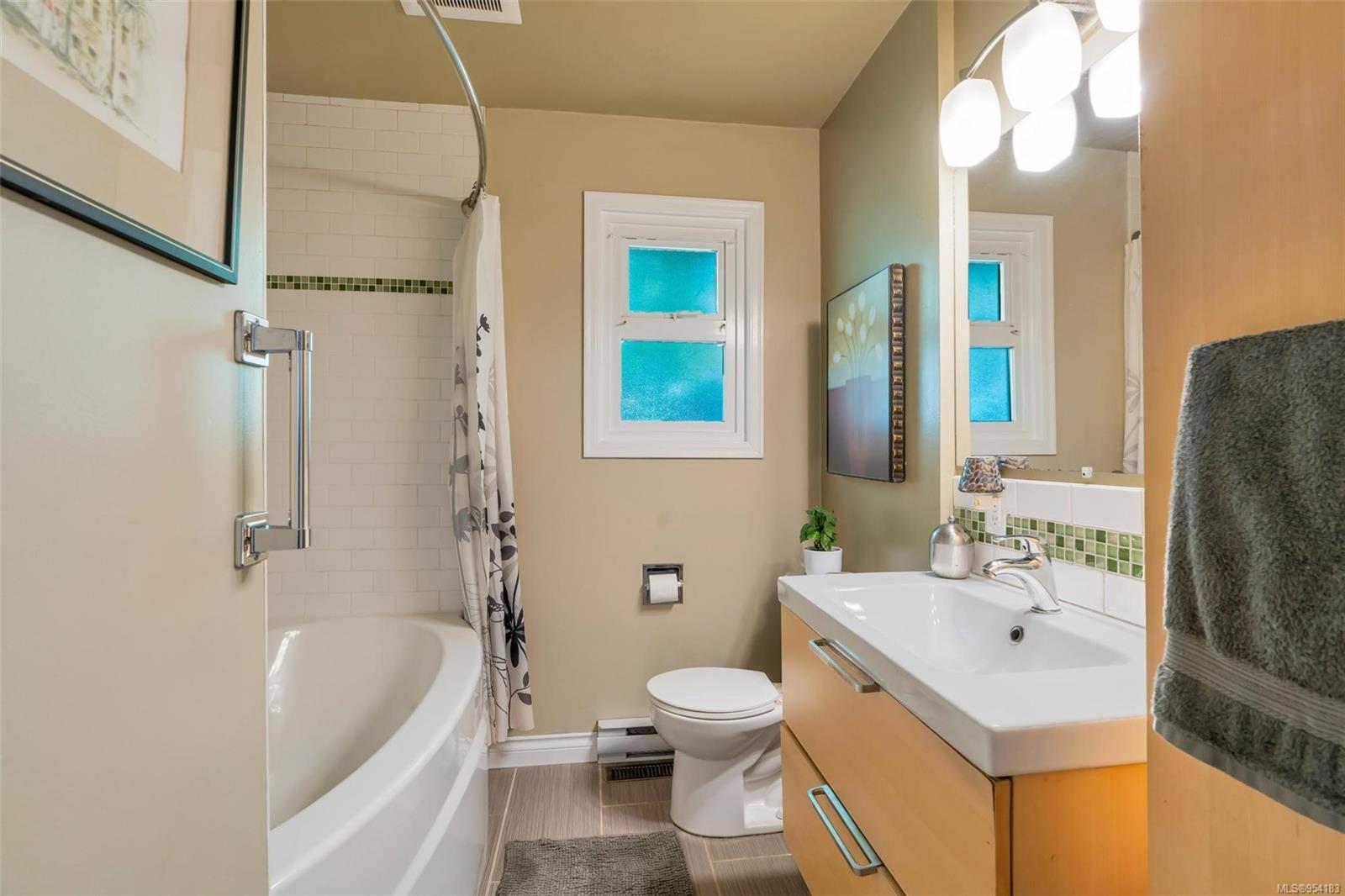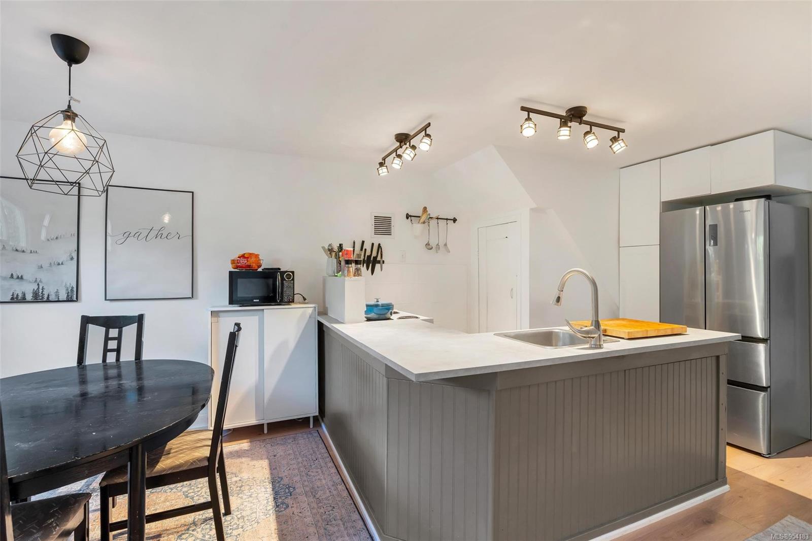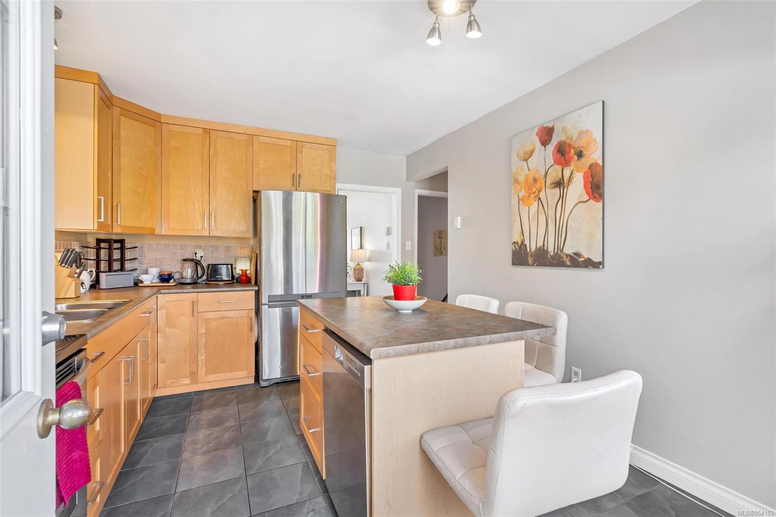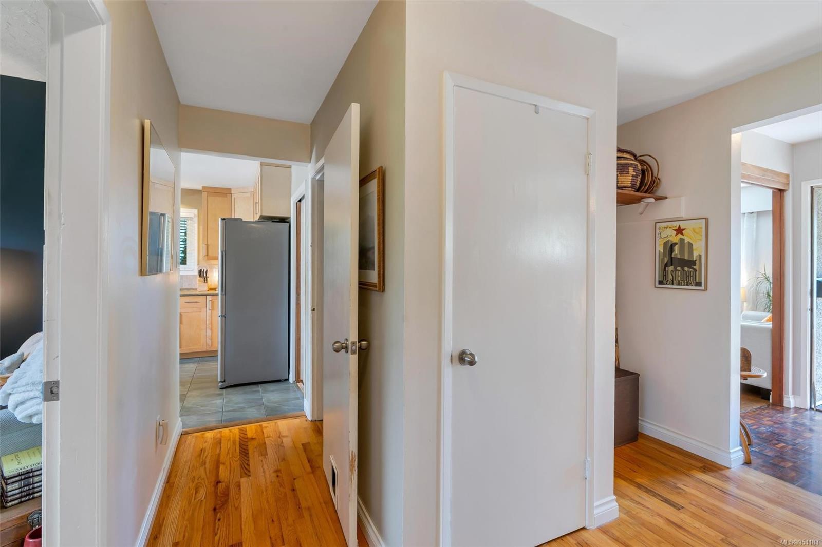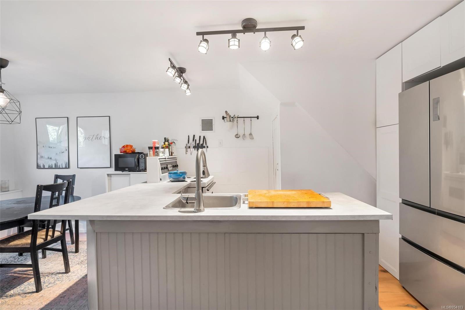 Welcome to 1850 Adanac Street! This 1961-built home, nestled on a private 5,925 square foot lot, sits on a tranquil no-through road. As you step inside, you're greeted by beautifully preserved original oak floors and abundant natural light flowing through the south and east-facing windows, accentuated by a cozy wood-burning fireplace in the living room. The kitchen has been tastefully updated with solid maple shaker doors, stainless steel appliances, & a spacious floor-to-ceiling pantry. It opens up to a deck & backyard oasis, complete with mature trees, garden space, & plenty of room for outdoor activities. Tucked privately away are three bedrooms & a 4 piece bathroom with deep soaker tub. Downstairs, you'll find a versatile den, laundry room, & a separate two-bedroom suite offering excellent rental potential. Conveniently located near the hospital, DT, Camosun & UVic, with updated features including a metal roof & vinyl windows, this home seamlessly blends charm with modern comforts.