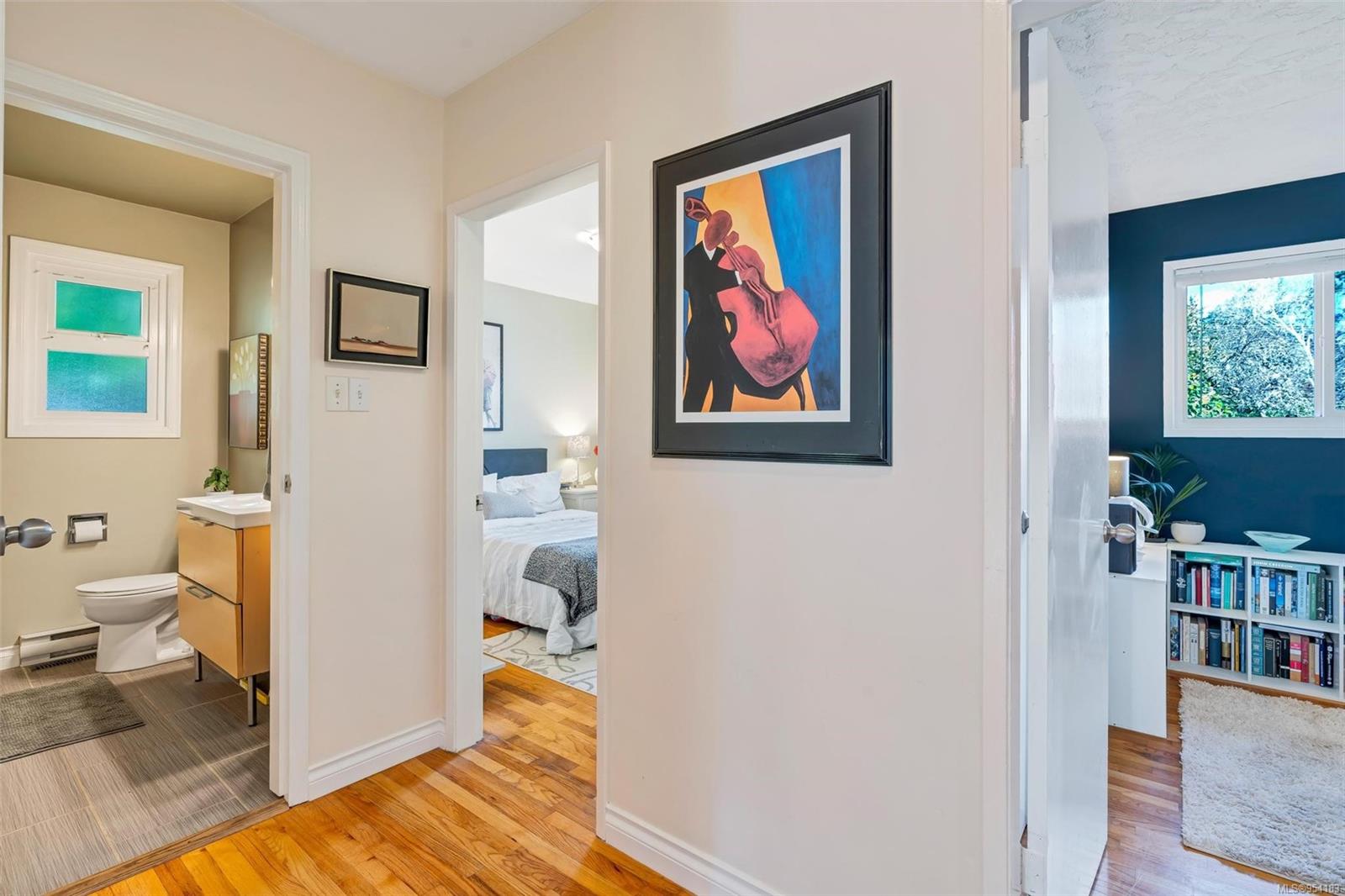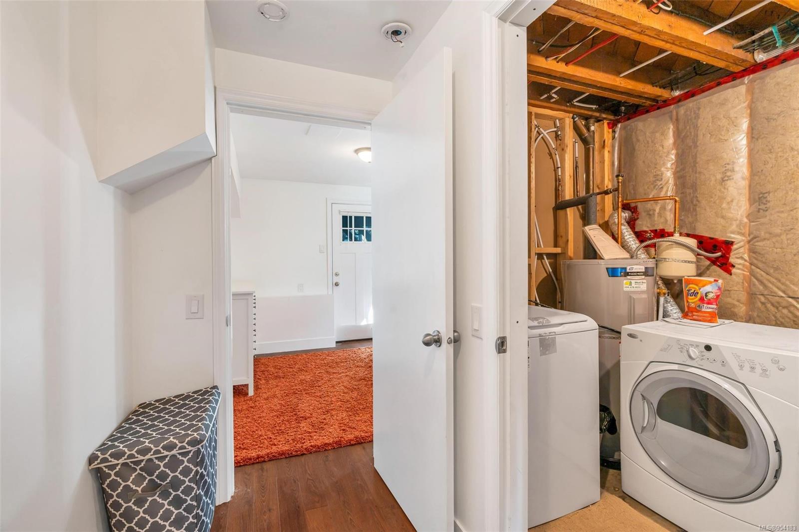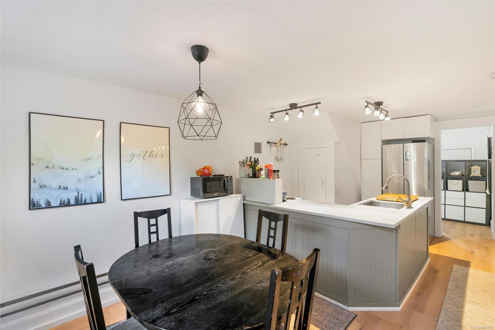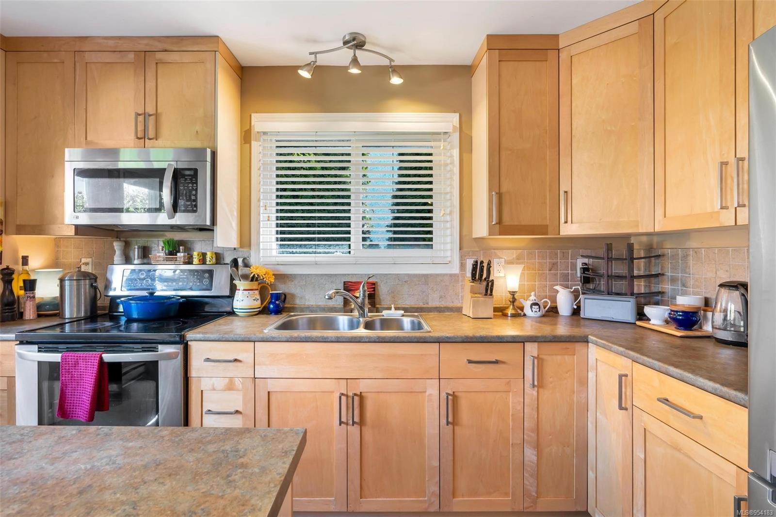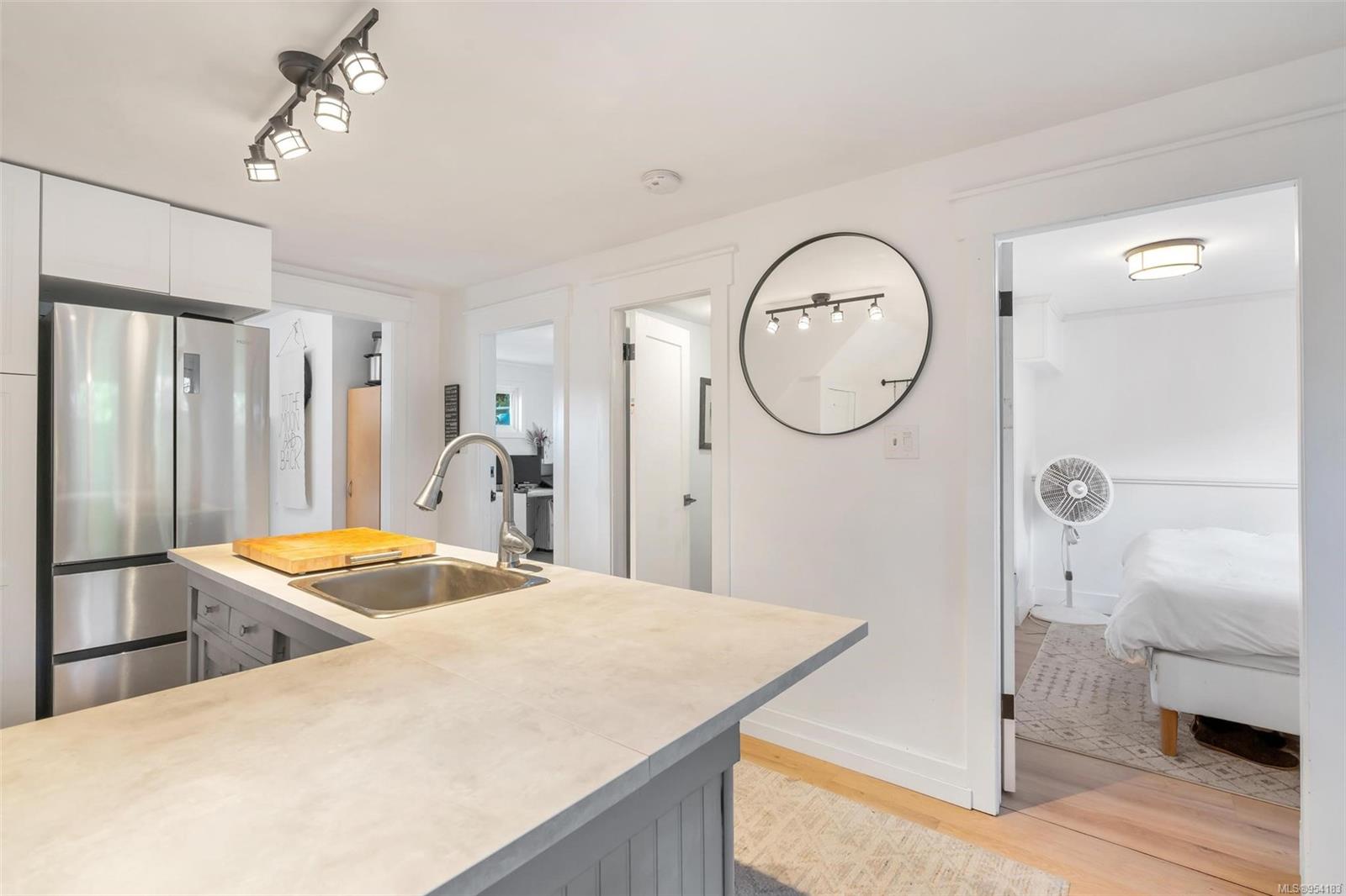 Welcome to 1850 Adanac Street! This 1961-built home, nestled on a private 5,925 square foot lot, sits on a tranquil no-through road. As you step inside, you're greeted by beautifully preserved original oak floors and abundant natural light flowing through the south and east-facing windows, accentuated by a cozy wood-burning fireplace in the living room. The kitchen has been tastefully updated with solid maple shaker doors, stainless steel appliances, & a spacious floor-to-ceiling pantry. It opens up to a deck & backyard oasis, complete with mature trees, garden space, & plenty of room for outdoor activities. Tucked privately away are three bedrooms & a 4 piece bathroom with deep soaker tub. Downstairs, you'll find a versatile den, laundry room, & a separate two-bedroom suite offering excellent rental potential. Conveniently located near the hospital, DT, Camosun & UVic, with updated features including a metal roof & vinyl windows, this home seamlessly blends charm with modern comforts.