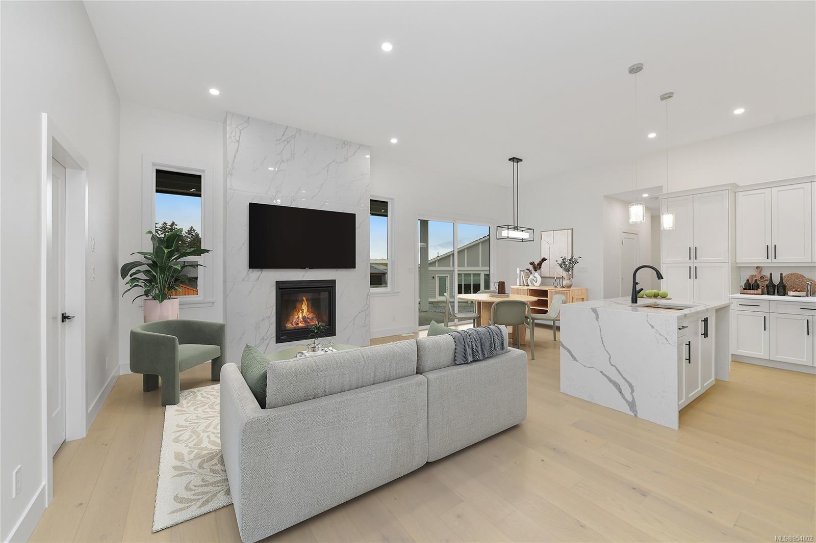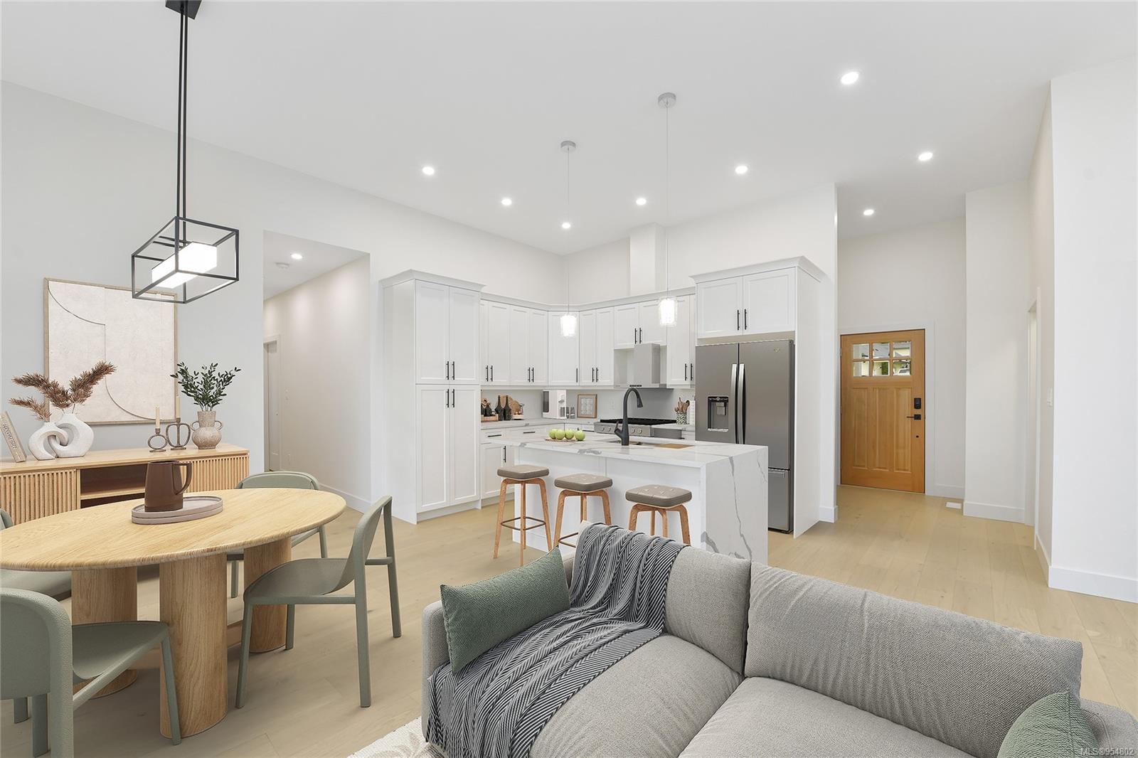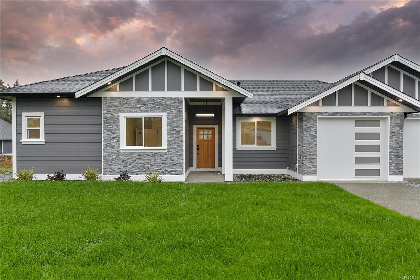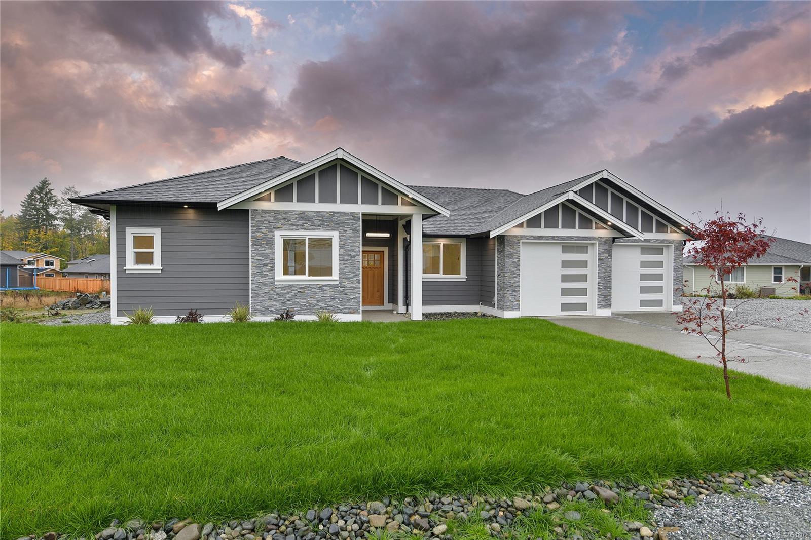 Welcome to this beautiful new rancher built by Green Initiative Developments, where every detail has been meticulously crafted. The fir front door sets the stage for this flawlessly designed one level residence. Step into the living space boasting 11ft ceilings, seamlessly connecting the open kitchen, living & dining area. Oversized 8x8 sliders usher in an abundance of natural light, leading to a spacious 200sqft patio. The primary bedroom showcases a luxurious 5pc ensuite with heated tile floors & a relaxing soaker tub, plus a walk-in closet. Two additional bedrooms share a spacious jack'n'jill bathroom. On the other wing of the home, discover an office/den with a separate entrance, ideal for a home-based business, offering convenience & accessibility. Unique to the subdivision is the horseshoe driveway, ideal for all of your parking needs. Completing the package is an oversized double car garage with an impressive crawl space, an organizer's dream for extra storage.