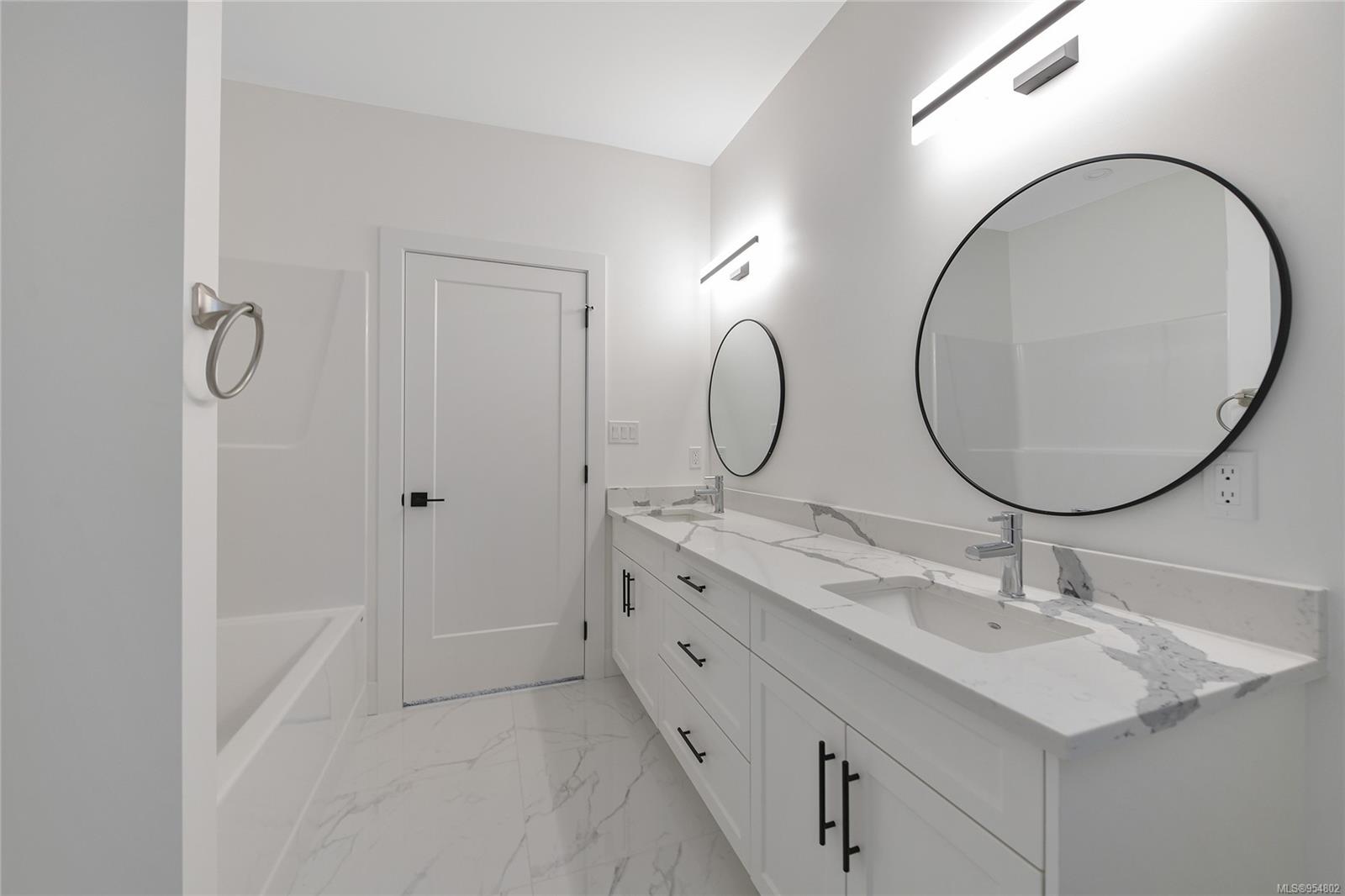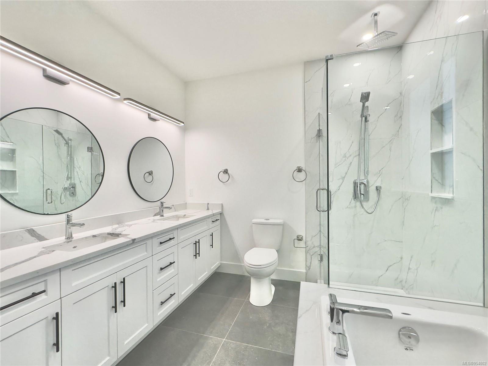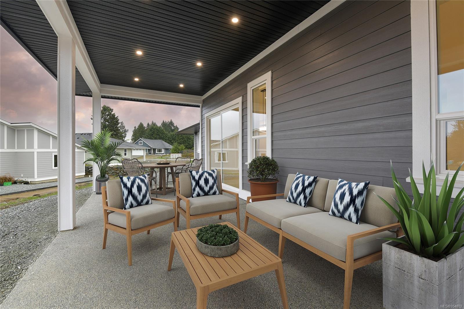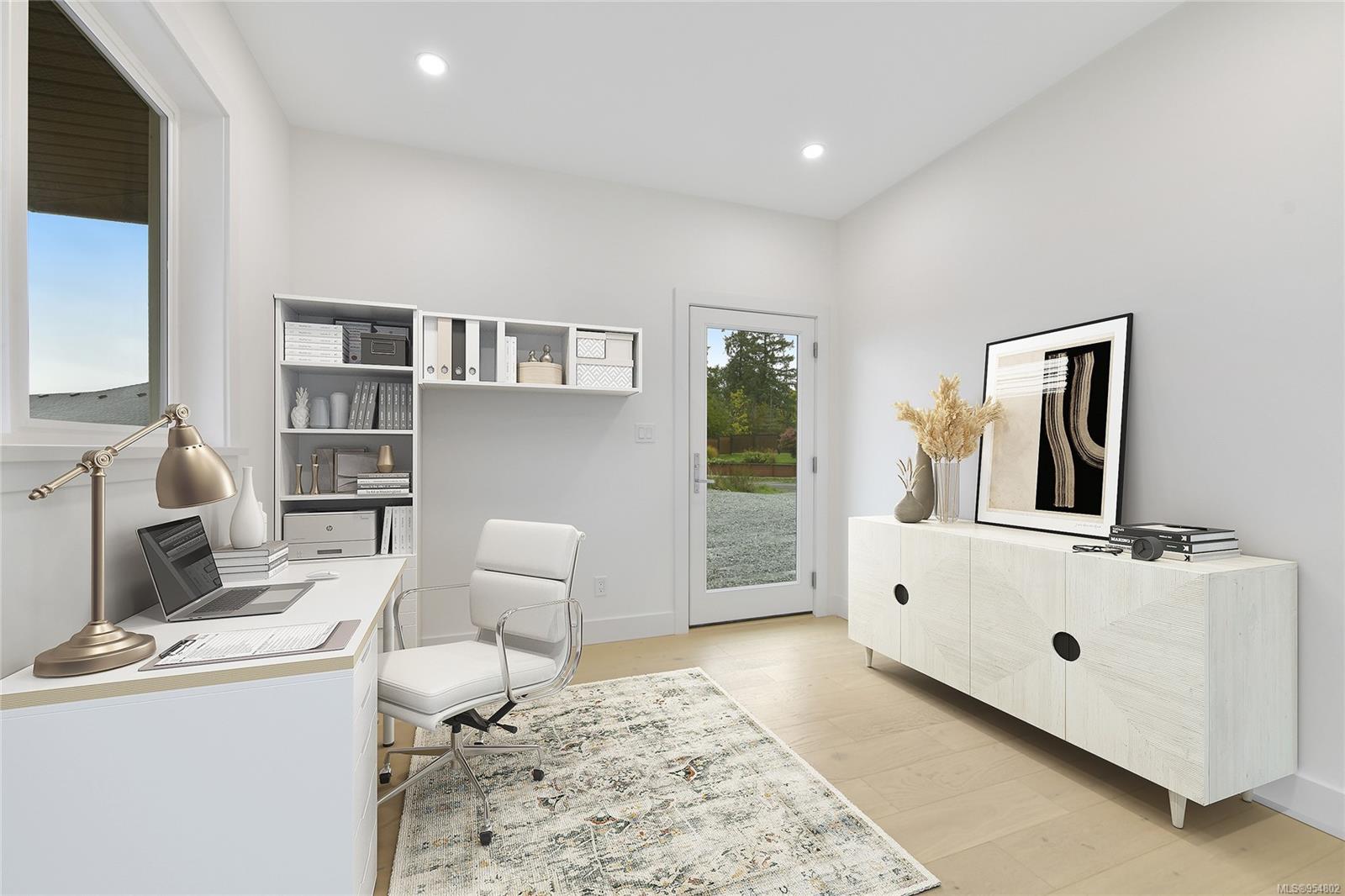 Welcome to this beautiful new rancher built by Green Initiative Developments, where every detail has been meticulously crafted. The fir front door sets the stage for this flawlessly designed one level residence. Step into the living space boasting 11ft ceilings, seamlessly connecting the open kitchen, living & dining area. Oversized 8x8 sliders usher in an abundance of natural light, leading to a spacious 200sqft patio. The primary bedroom showcases a luxurious 5pc ensuite with heated tile floors & a relaxing soaker tub, plus a walk-in closet. Two additional bedrooms share a spacious jack'n'jill bathroom. On the other wing of the home, discover an office/den with a separate entrance, ideal for a home-based business, offering convenience & accessibility. Unique to the subdivision is the horseshoe driveway, ideal for all of your parking needs. Completing the package is an oversized double car garage with an impressive crawl space, an organizer's dream for extra storage.