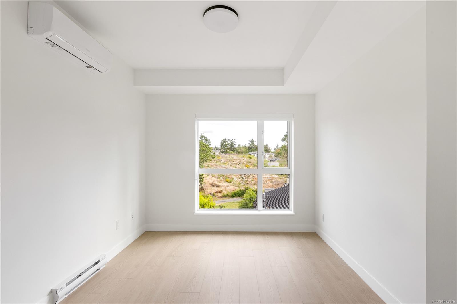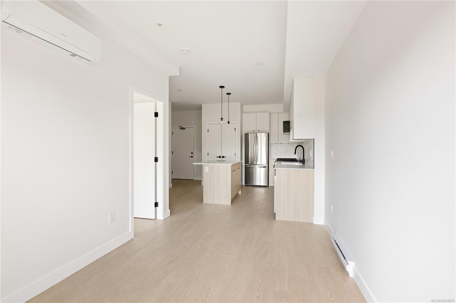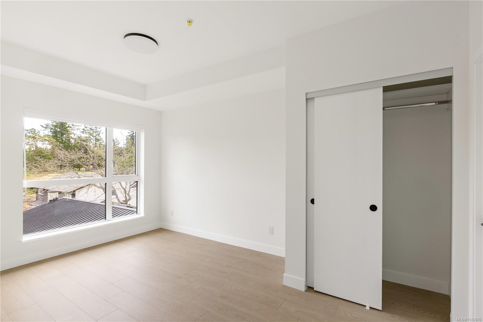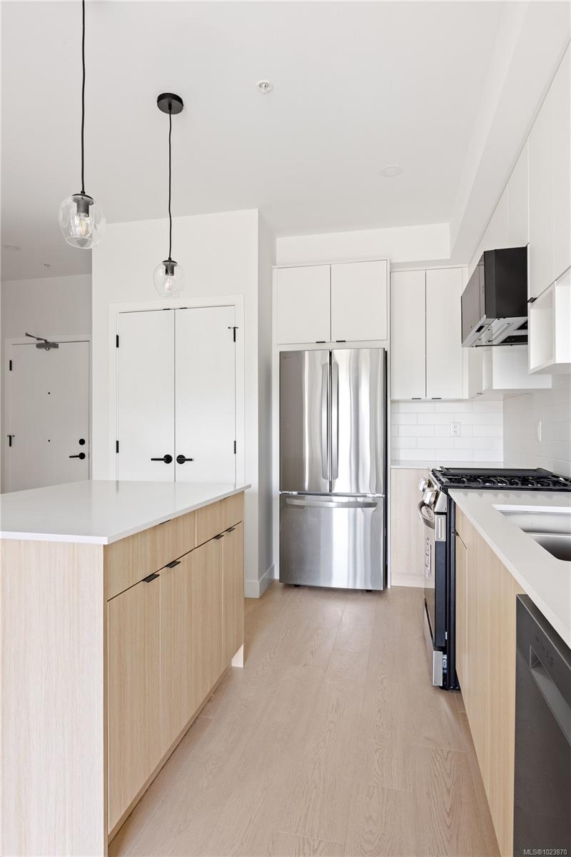 Welcome to Unit 431- an immaculate, newly built 1-bedroom Condo nestled on the quiet side of the building in the heart of Langford. Perched on the top floor, this bright and modern home offers sweeping views and an ideal blend of comfort and style. The open concept layout is perfect for everyday living or entertaining, featuring sleek finishes, quartz countertops, stainless steel appliances, and large windows that flood the space with natural light. Enjoy peaceful mornings and stunning sunsets from your private balcony. GST has already been paid, and the home includes secured underground parking for added value and convenience. Located just minutes from Millstream Village, parks, and transit, this is an ideal opportunity for first-time home buyers, investors, or anyone looking to downsize without compromise.