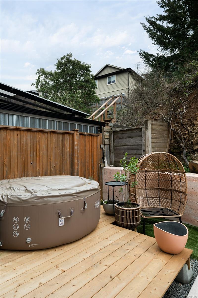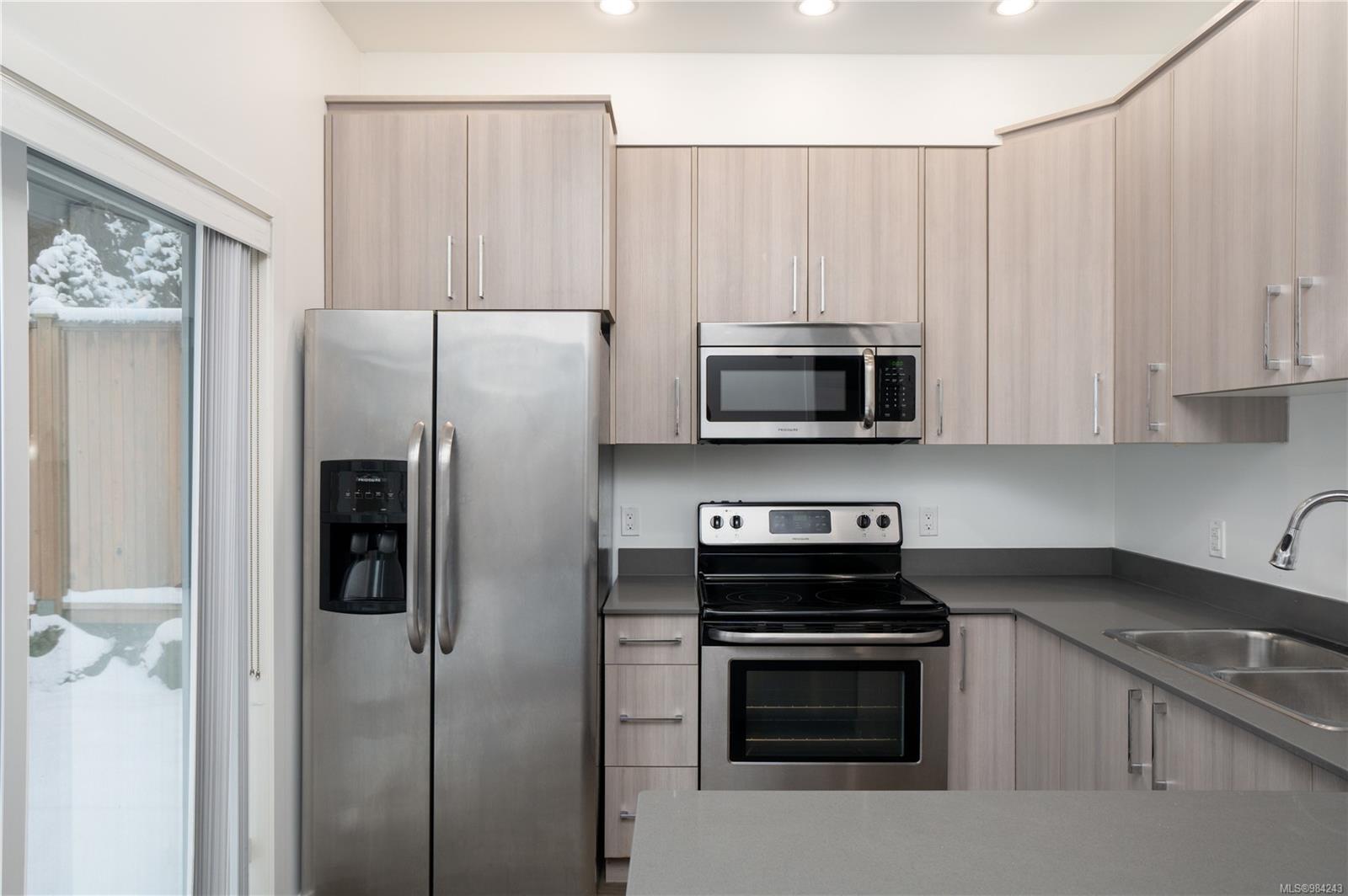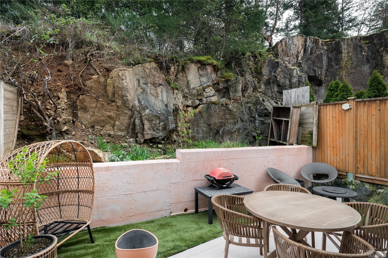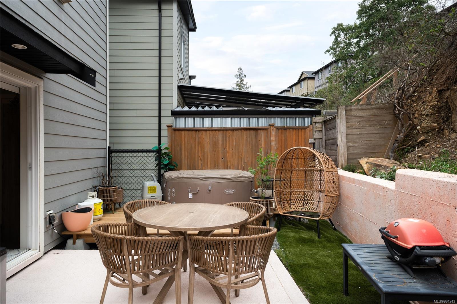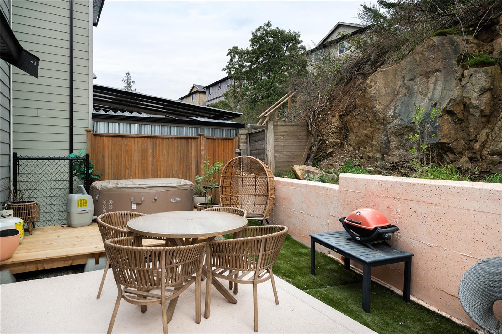 Beautiful 3 level detached home with a lovely backyard awaits, vacant and ready for immediate possession. This 2015 turnkey home has been freshly painted throughout, is located on a quiet cul-de-sac and features 3 bedrooms & 3 bathrooms. Perched atop a hill with stunning views of the mountains & forest throughout the main level and the primary bedroom. The modern kitchen boasts quartz countertops, stainless appliances, and a patio door that opens into the backyard oasis. Have your morning coffee in the privacy and comfort of your fully fenced patio and garden. An excellent layout that includes vaulted ceilings in the upper bedrooms plus a spacious lower level bedroom ideal for a teen or multigenerational family members. Other features include a gas fireplace, an energy efficient Rinnai ductless wall furnace, plus a garage and ample parking. Located steps to Happy Valley Elementary and minutes to the Westshore's downtown core, this is the perfect family home that will not last long!