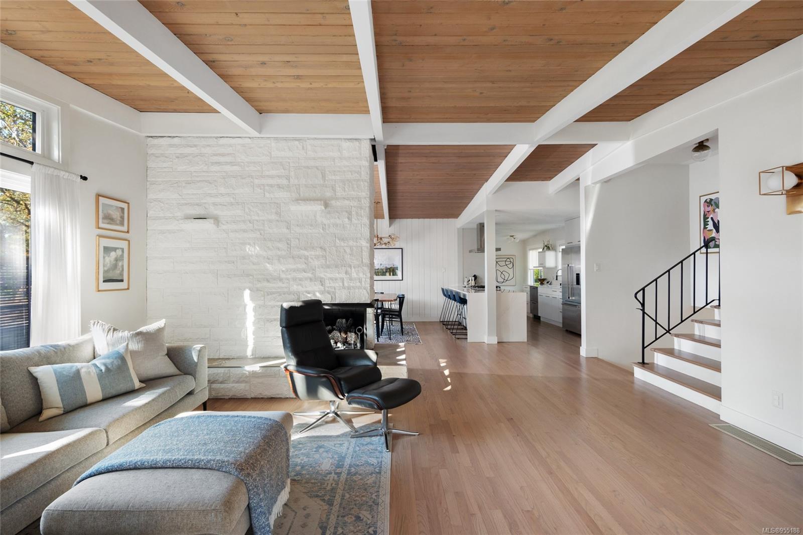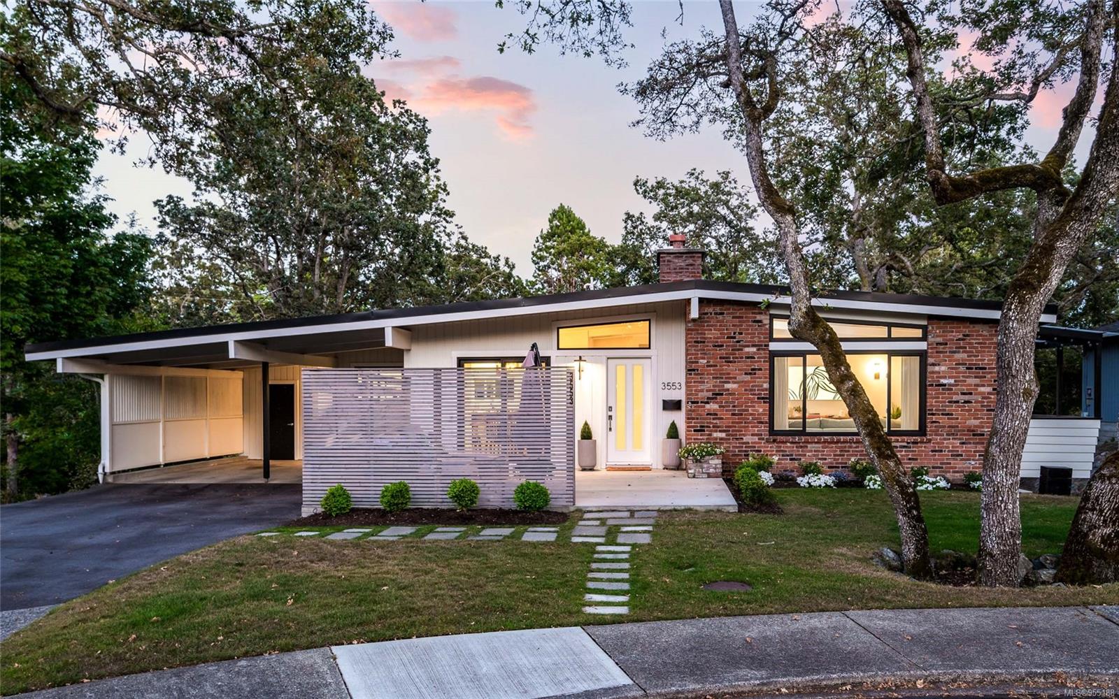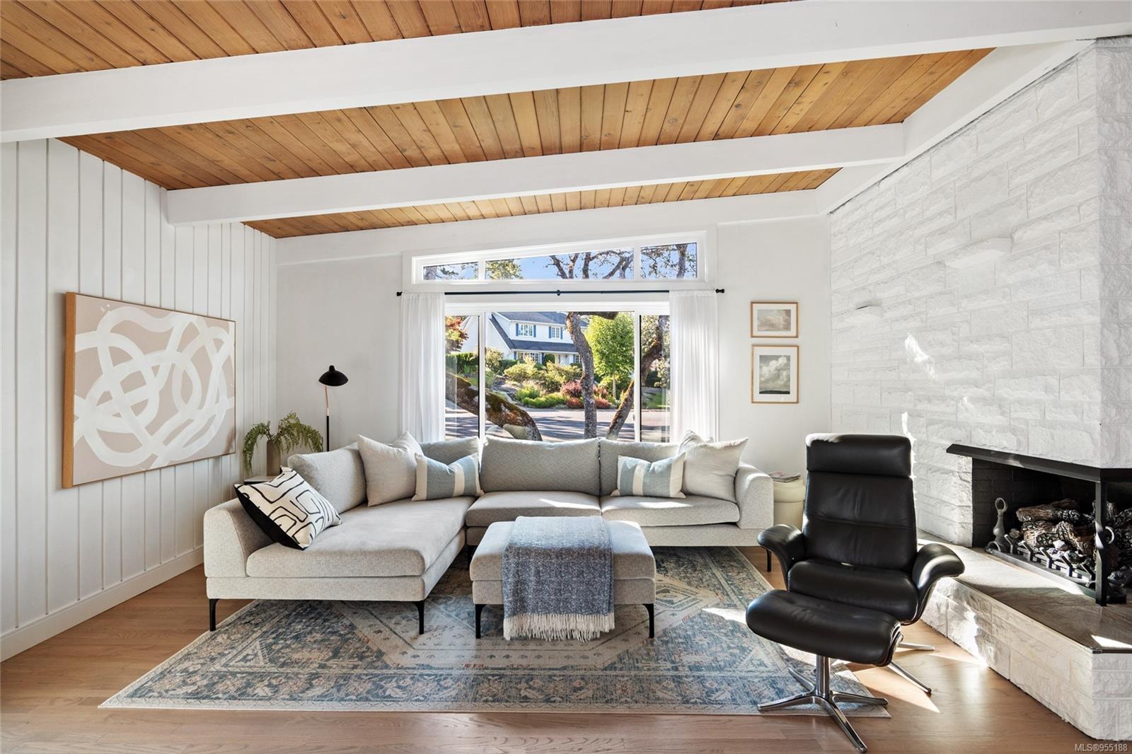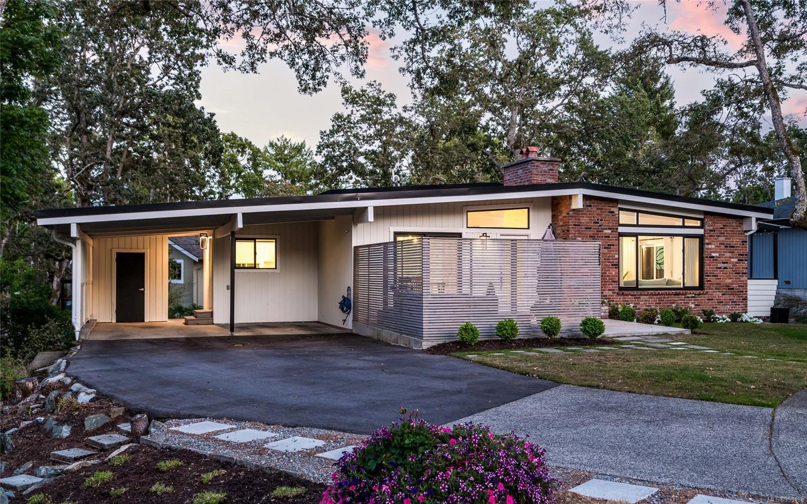 Pleased to present this luxurious Mid-Century Modern masterpiece nestled down a private & picturesque cul-de-sac! This exquisite & fully reimagined residence will impress even the most discerning buyer. Offering true elegance & lifestyle that makes Oak Bay world-renowned, there's nothing left to do but move in & enjoy! Situated on a 9129 sq/ft lot w/East to West orientation, bask in the sun all day from one of your two patios while watching the kids play. Inside, enjoy a stunning great room with w/10' vaulted ceilings showcasing beautiful beams, a cozy rock gas fireplace & custom bespoke kitchen designed for entertaining & accented w/SS apps! The upper level offers a warm primary suite w/a bright custom ensuite, 2 more generous BRs & a 2nd Bath. The lower level provides many options w/a wonderful large walk-out family room & BONUS in-law suite (w/extra room to easily add another BR) that is perfect for teenagers or extra income! Down offers extra 500 sq/ft of storage. A MUST SEE home!