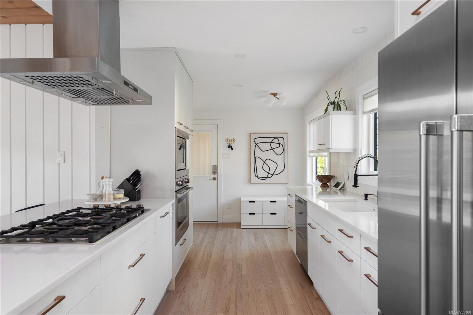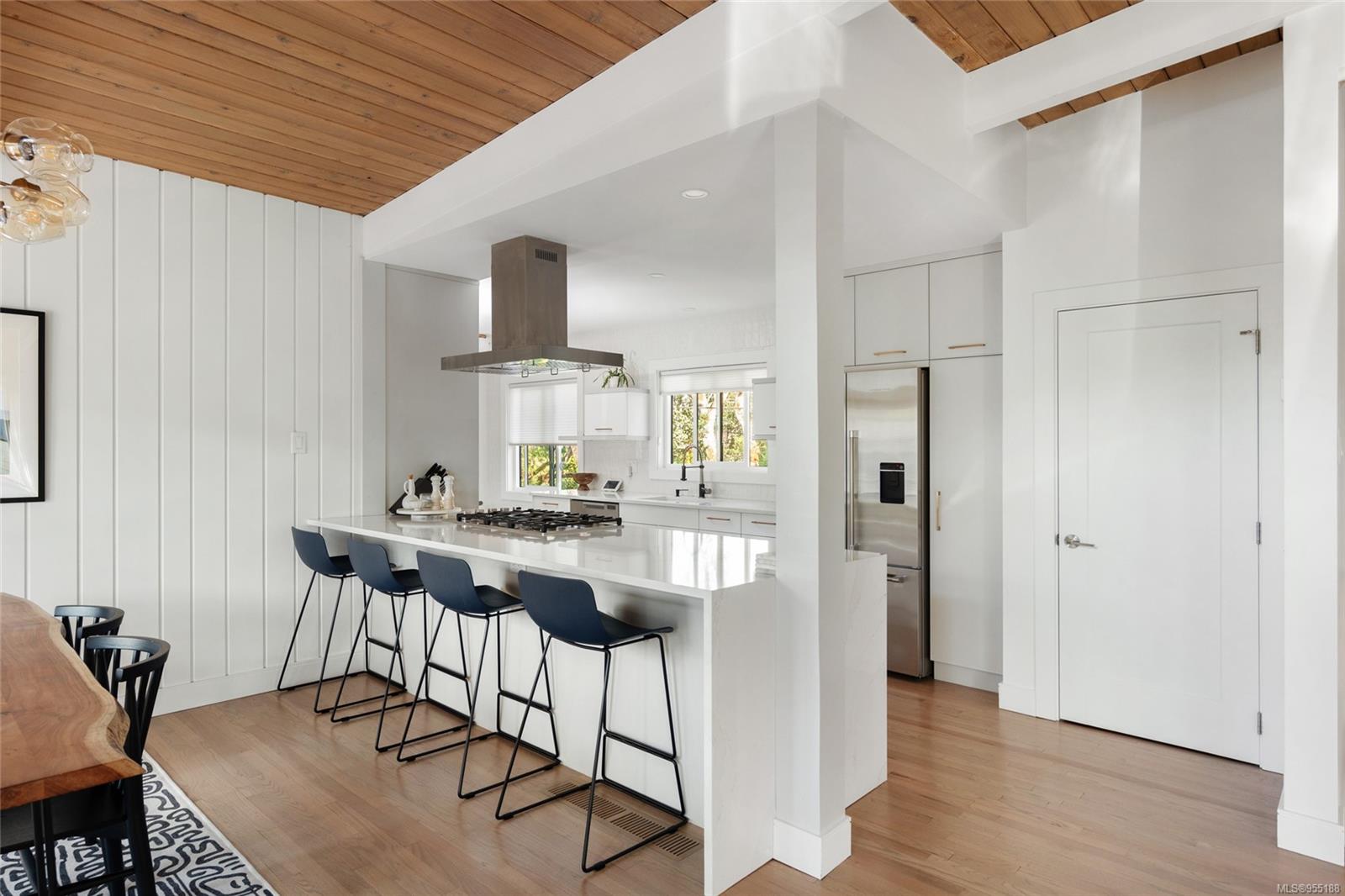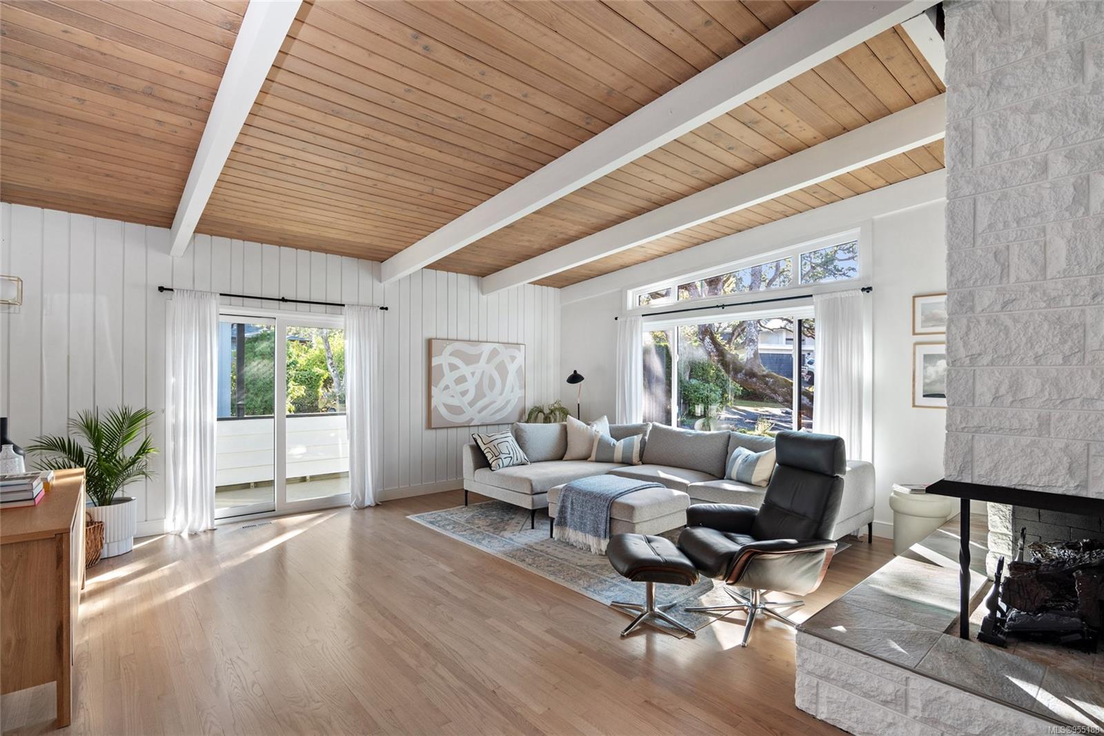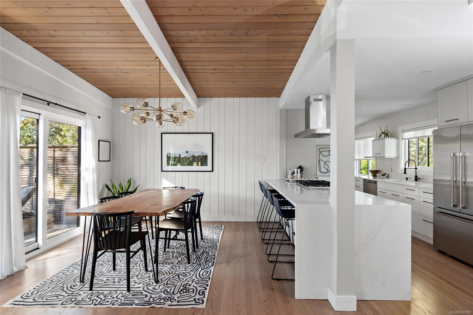Pleased to present this luxurious Mid-Century Modern masterpiece nestled down a private & picturesque cul-de-sac! This exquisite & fully reimagined residence will impress even the most discerning buyer. Offering true elegance & lifestyle that makes Oak Bay world-renowned, there's nothing left to do but move in & enjoy! Situated on a 9129 sq/ft lot w/East to West orientation, bask in the sun all day from one of your two patios while watching the kids play. Inside, enjoy a stunning great room with w/10' vaulted ceilings showcasing beautiful beams, a cozy rock gas fireplace & custom bespoke kitchen designed for entertaining & accented w/SS apps! The upper level offers a warm primary suite w/a bright custom ensuite, 2 more generous BRs & a 2nd Bath. The lower level provides many options w/a wonderful large walk-out family room & BONUS in-law suite (w/extra room to easily add another BR) that is perfect for teenagers or extra income! Down offers extra 500 sq/ft of storage. A MUST SEE home!