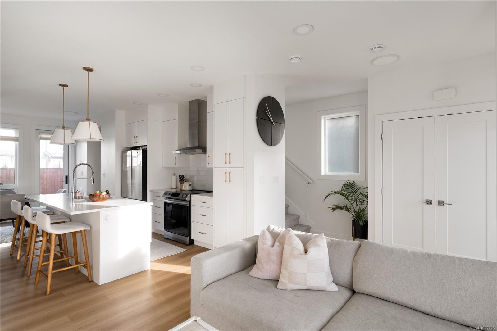 Upstairs, the thoughtful floor plan continues with the primary bedroom, two additional bedrooms, and laundry all conveniently located on the upper level. Featuring modern details throughout and a bright, sun-soaked feel, this home is complete with three parking spaces and is ideally located just steps from the ocean, Royal Bay High and the Royal Bay Commons--offering modern coastal living at its finest.