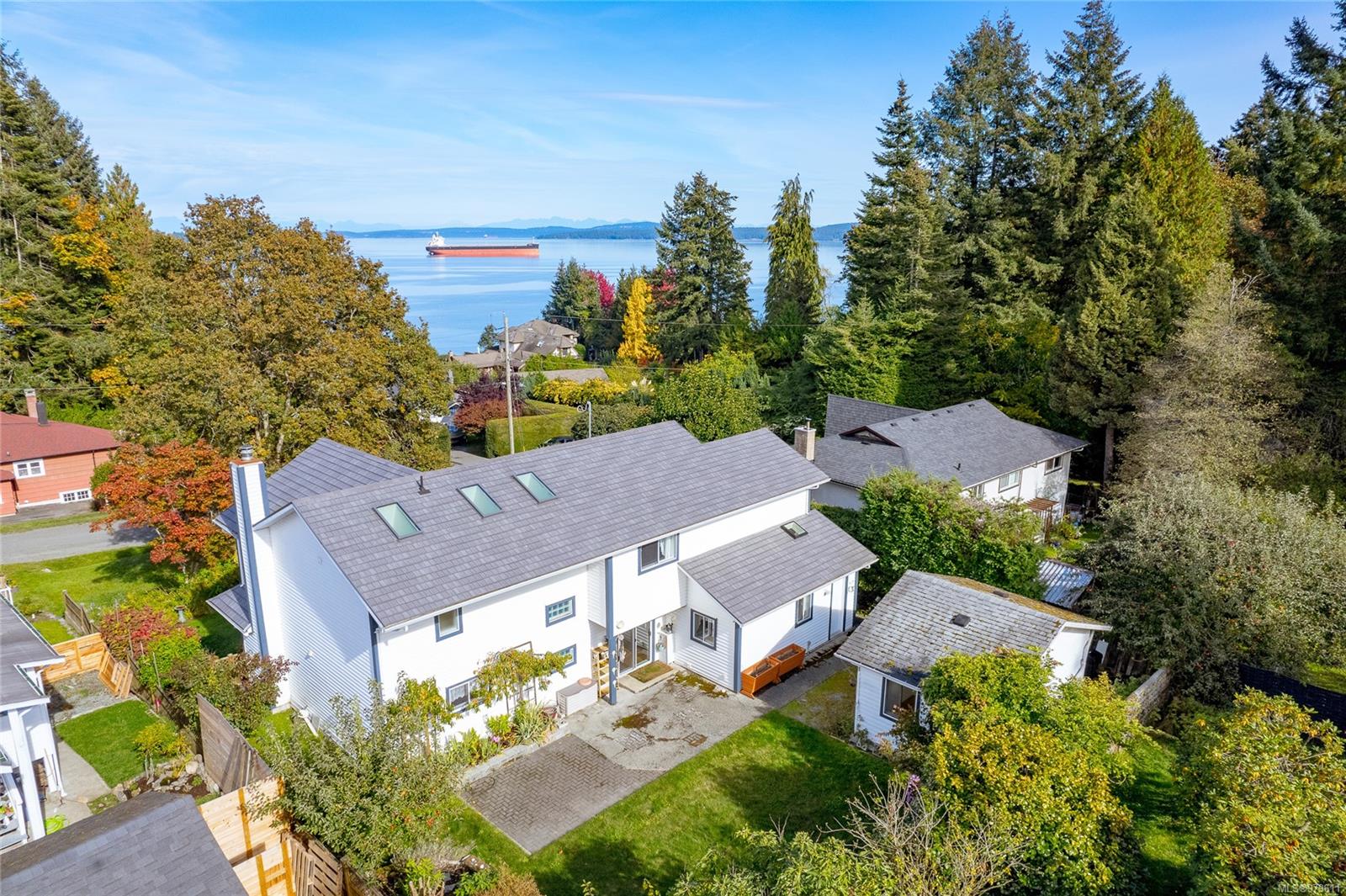 Discover your dream home in picturesque Saltair! This well-loved and meticulously maintained 4-bedroom, 3-bathroom sanctuary spans 2,598 sq ft on a private no-through road. Enjoy breathtaking ocean views, where each sunrise and sunset paints the sky in mesmerizing hues. The open-plan kitchen and dining area, adorned with cork flooring, beckons culinary adventures. Outside, find an established backyard with an abundance of fruit trees and greenery which includes a convenient detached workshop and office. A cozy wood pellet fireplace and grand living room exudes warmth and functionality. With 1-bedroom, 1-bathroom downstairs this allows for the flexibility of main floor living or privacy for extended family and guests. Nestled in a serene, family-friendly neighborhood with beach access just 5 minutes away, this is coastal living at its finest. Don't miss your chance to own this tranquil retreat--a haven where every day feels like a peaceful escape!