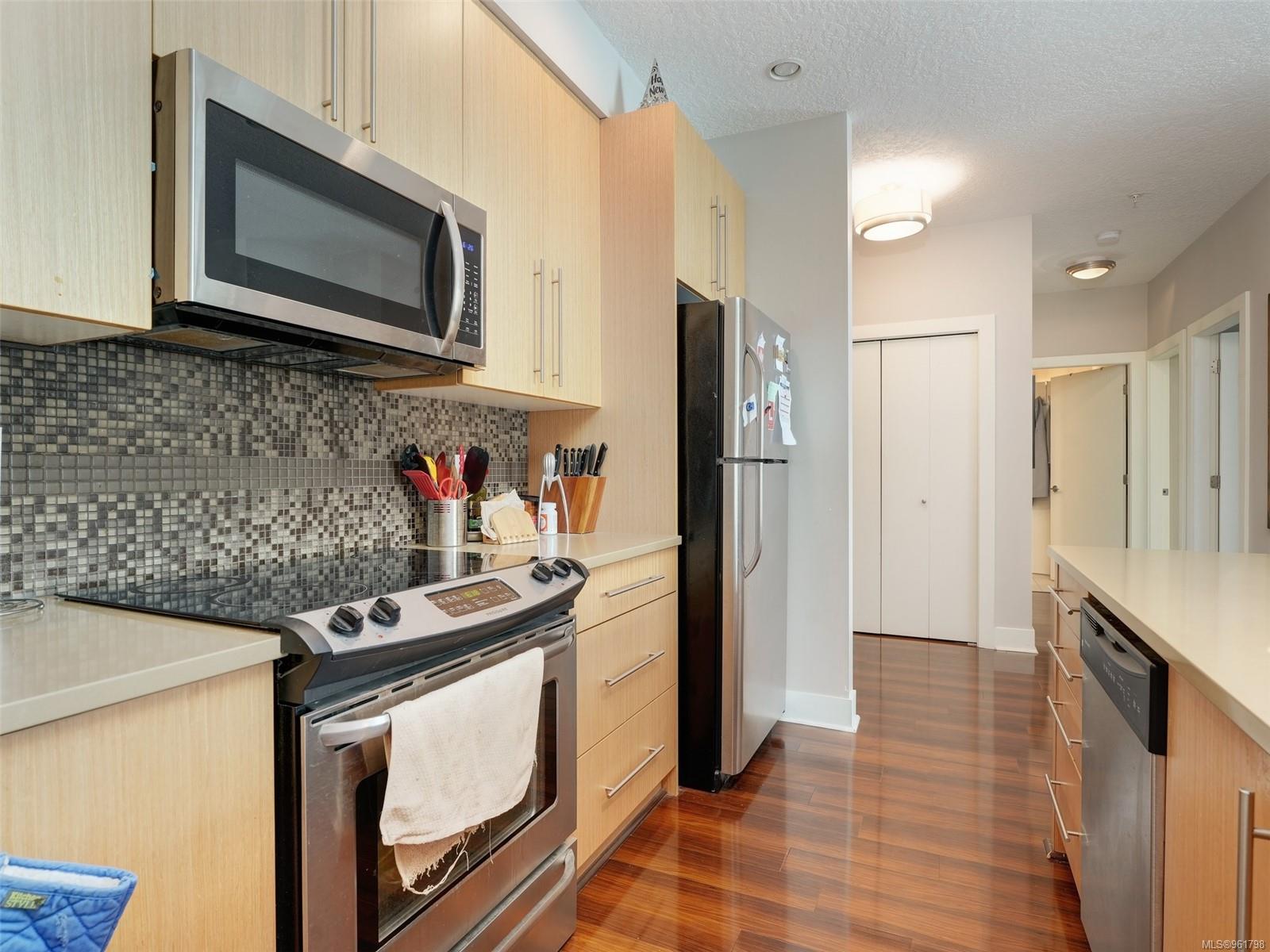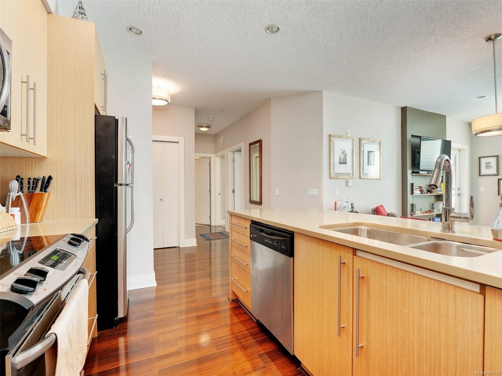 Absolutely gorgeous 2 Bedroom in the 2011 built Duval on the quiet side of the building overlooking the lovely garden courtyard and gazebo. Beautiful exposure and plenty of natural light. Fantastic functional floorplan with an amazing kitchen and extra large bathroom, large private deck, underground parking. Excellent location close to commonwealth pool, shopping , dining, trails, parks, recreation, Broadmead village and transportation. Elk/Beaver Lake are so close by. Easy access to UVic and Camosun. Rentals, kids, pets and BBQ allowed. What are you waiting for?