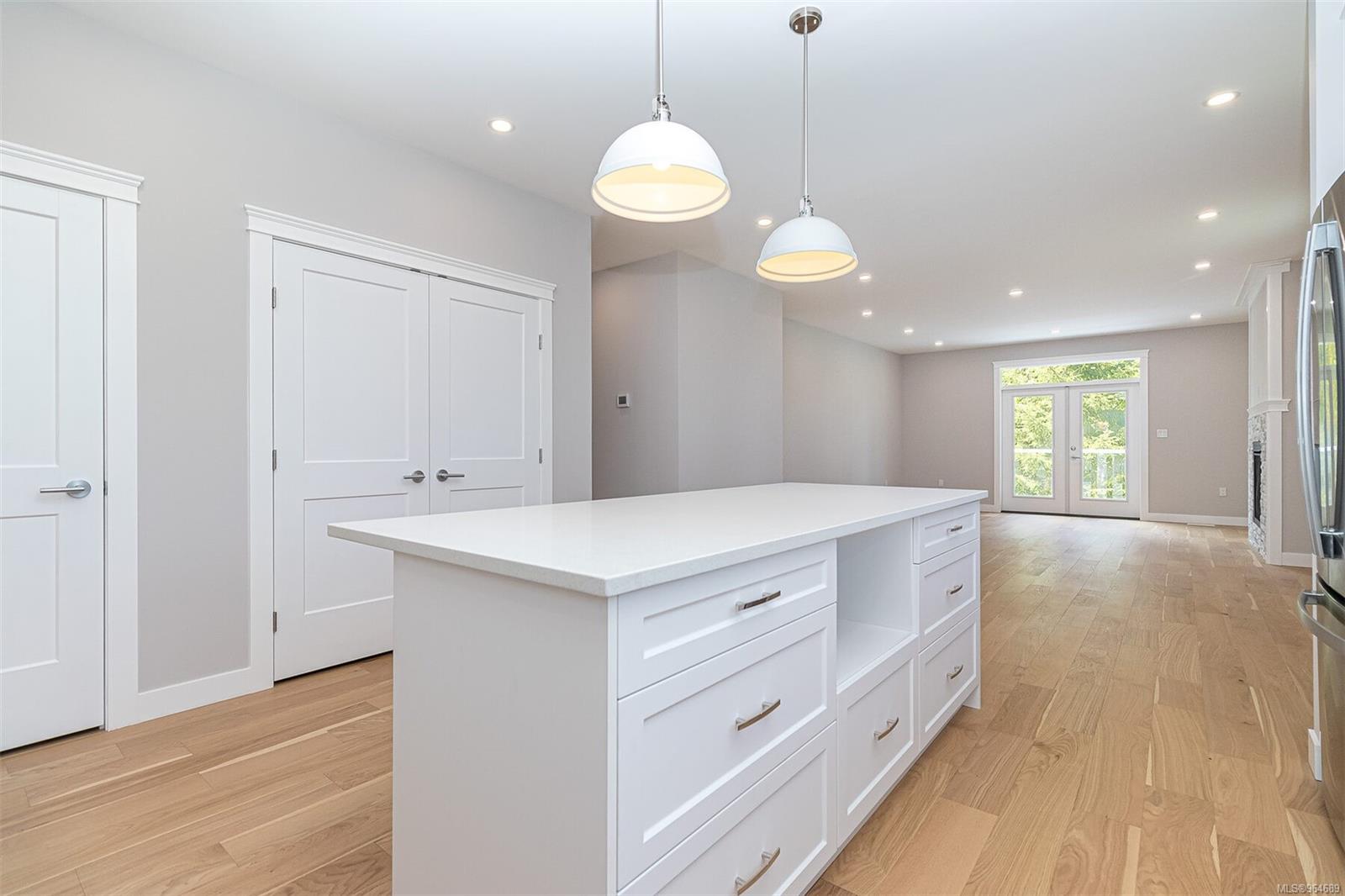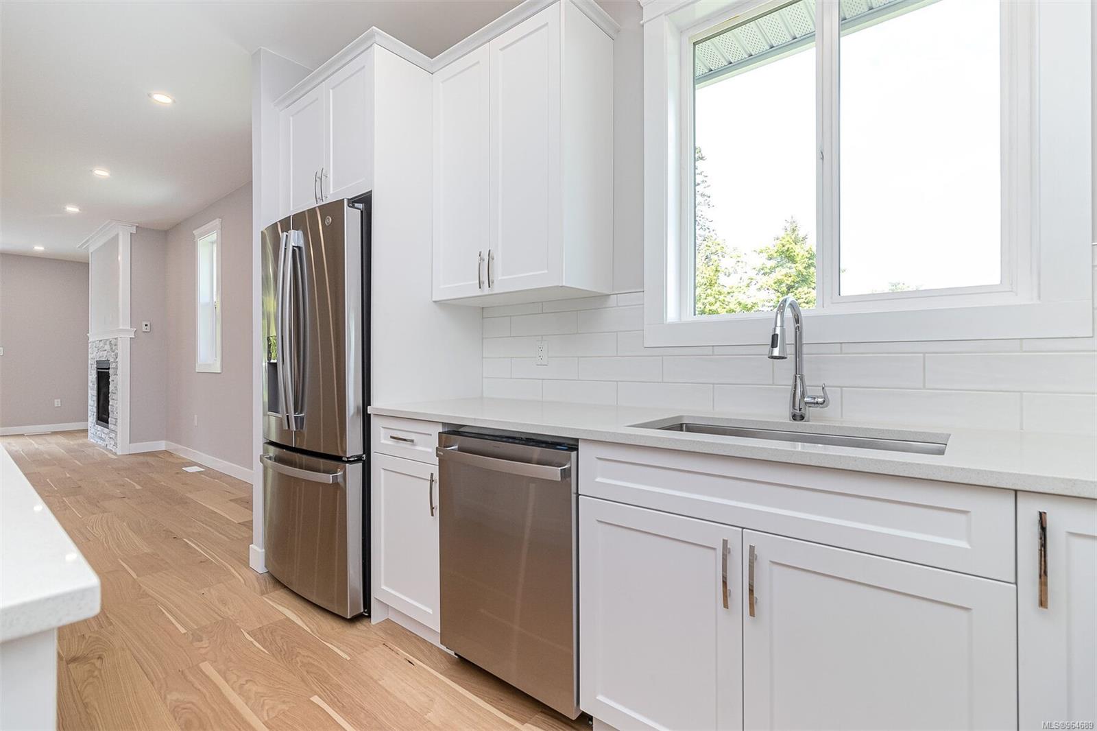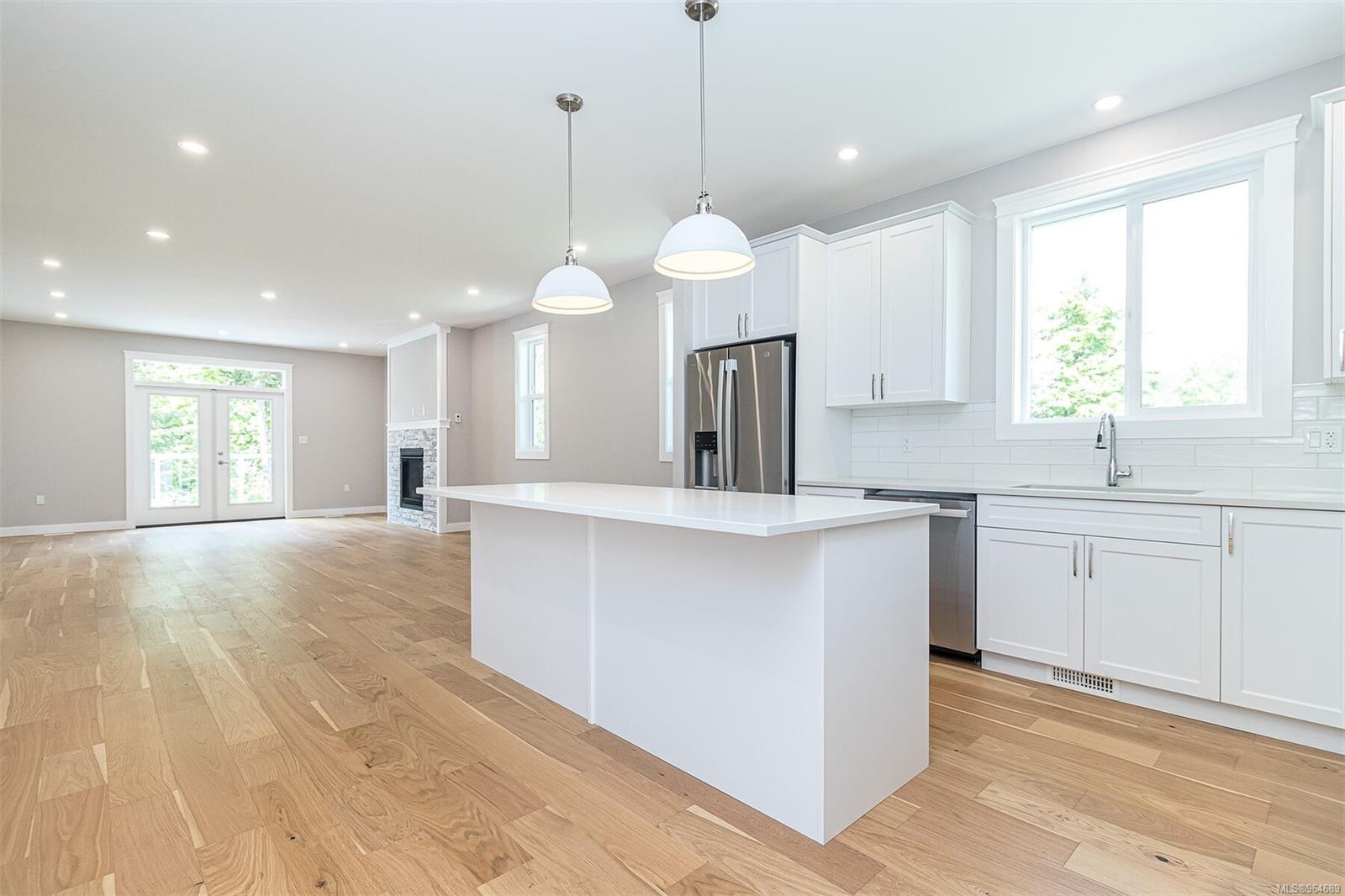 Welcome to Cowichan Bay Estates! This captivating 3-bedroom, 2-bathroom rancher offers 1650 sqft of open-concept living space. A spacious driveway and double car garage, leading to a welcoming entry and first bedroom with a convenient alcove. The kitchen boasts a large island, subway tile backsplash, and quartz countertops. Entertain effortlessly in the dining room and living area with a cozy gas fireplace and French doors to the deck. Discover the laundry room, second bedroom, and 4-piece bathroom adjacent to the kitchen. Retreat to the primary bedroom with a walk-in closet and spa-like ensuite. Engineered hardwood flooring and tile grace the home, with additional features including a 4ft crawl space, gas furnace, and electric heat pump. Step outside to enjoy a scenic walking trail. Cowichan Bay offers amenities and easy access to Victoria and Duncan. Price is plus GST.
