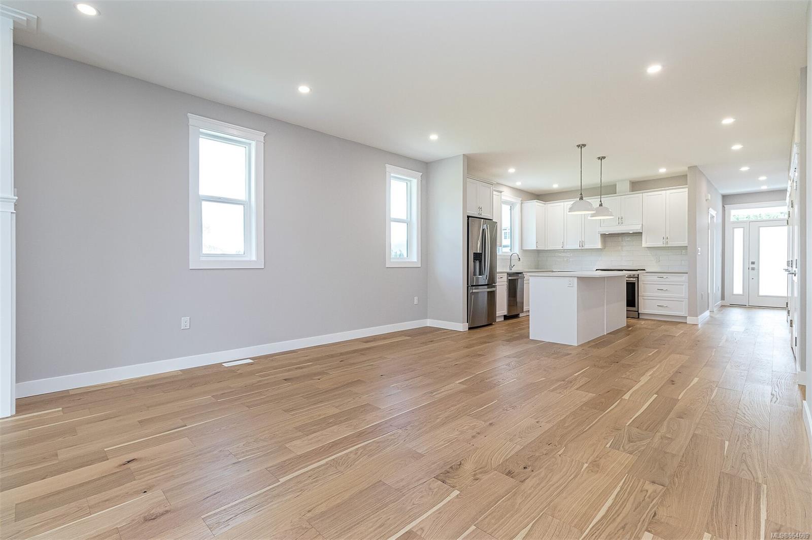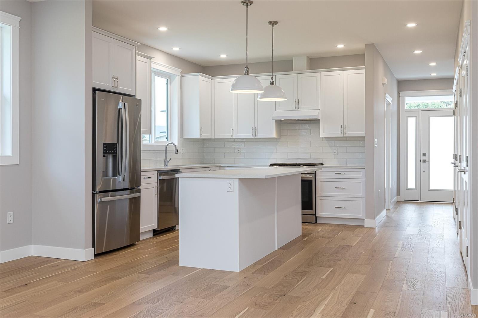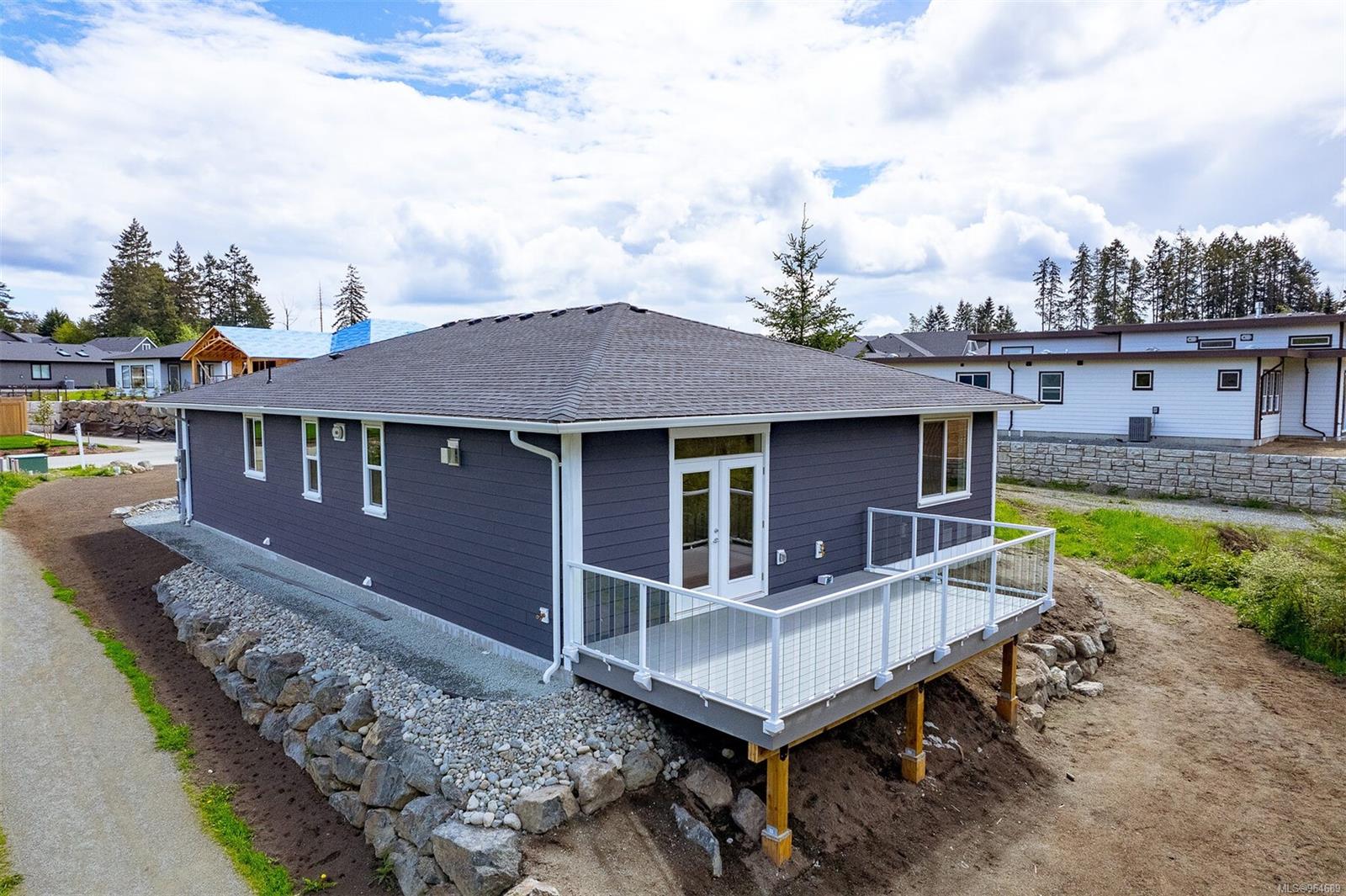 Welcome to Cowichan Bay Estates! This captivating 3-bedroom, 2-bathroom rancher offers 1650 sqft of open-concept living space. A spacious driveway and double car garage, leading to a welcoming entry and first bedroom with a convenient alcove. The kitchen boasts a large island, subway tile backsplash, and quartz countertops. Entertain effortlessly in the dining room and living area with a cozy gas fireplace and French doors to the deck. Discover the laundry room, second bedroom, and 4-piece bathroom adjacent to the kitchen. Retreat to the primary bedroom with a walk-in closet and spa-like ensuite. Engineered hardwood flooring and tile grace the home, with additional features including a 4ft crawl space, gas furnace, and electric heat pump. Step outside to enjoy a scenic walking trail. Cowichan Bay offers amenities and easy access to Victoria and Duncan. Price is plus GST.