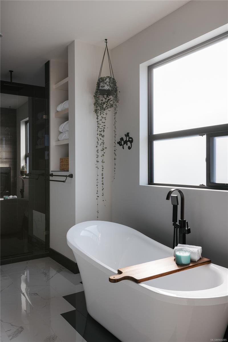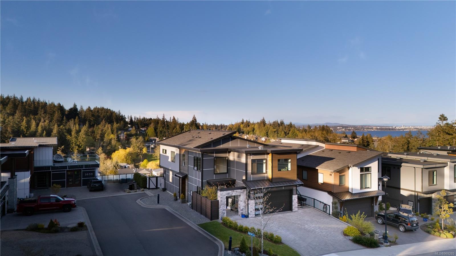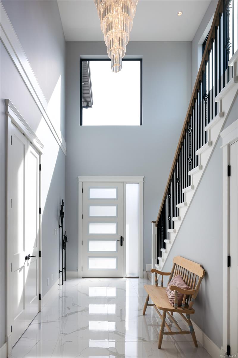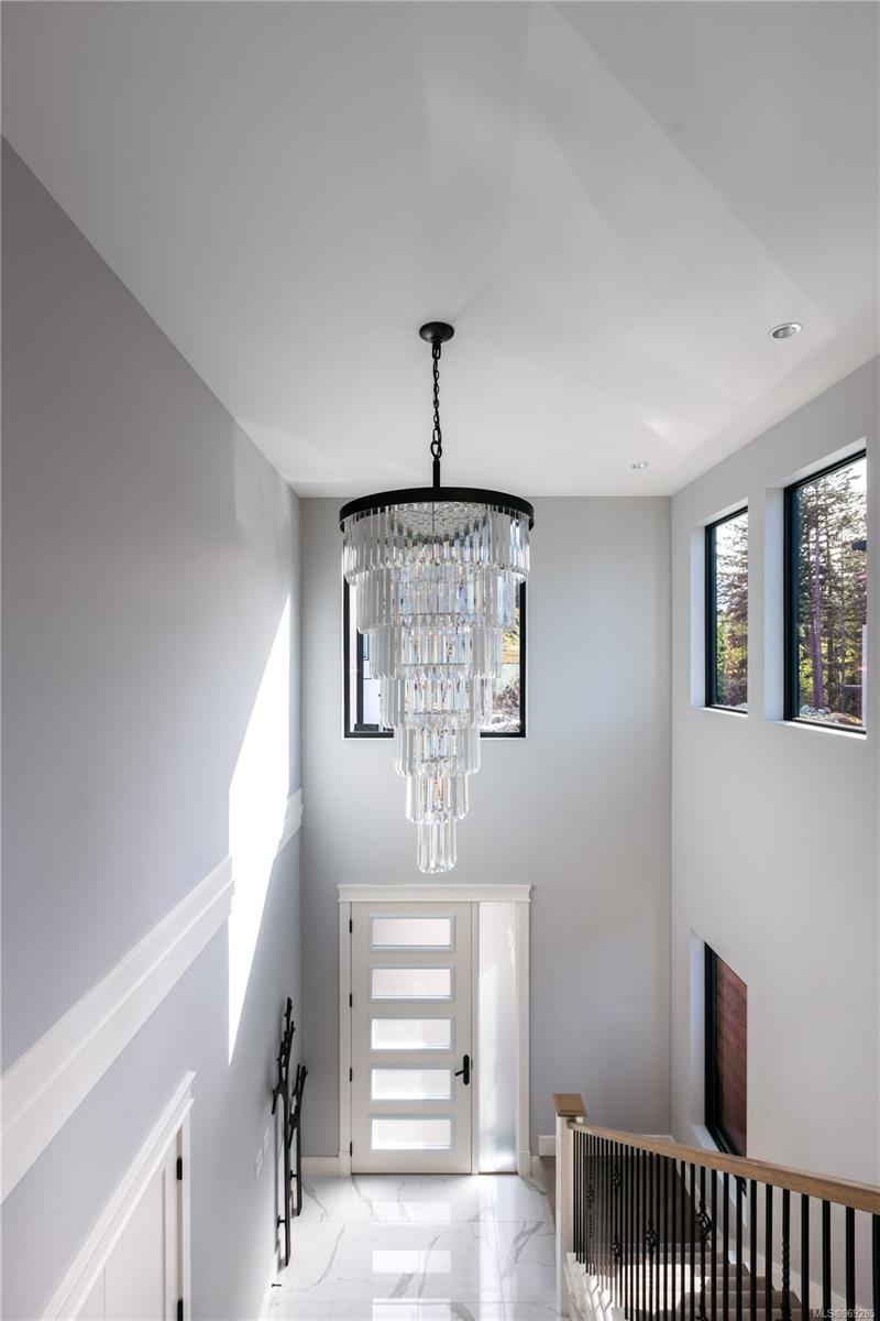 Welcome to this stunning 2018 home perched at the top of Elevation Pointe Terr. Offering panoramic views, generous space, contemporary style & a suite, this residence effortlessly ticks all the right boxes for luxurious living. As you step inside, you are greeted by a grand two-story entryway w/ beautiful tile floors. The main level unfolds into a spacious open-concept living area, featuring sprawling kitchen, dining & living room, all framed by expansive ocean views towards Downtown Victoria. The seamless indoor-outdoor living experience is truly exceptional. Open the oversized bi-sliding glass doors to the patio, creating an expansive entertainment space. In the evenings, the twinkling city lights in the distance add a magical ambiance to the already spectacular setting. Spanning >3500 sq/ft of finished living space, this home boasts 5 bedrooms & 4 baths. The thoughtful design & impeccable finishes throughout ensure both comfort & style. Large crawl space for extra storage.