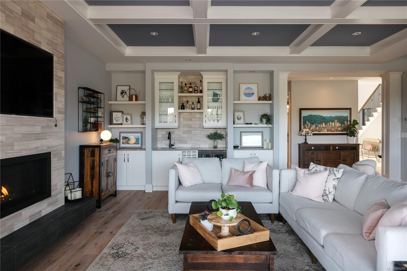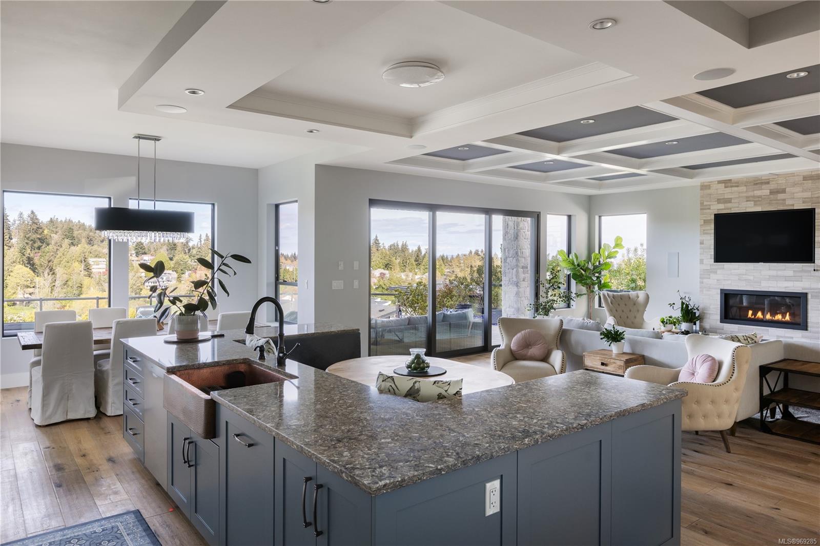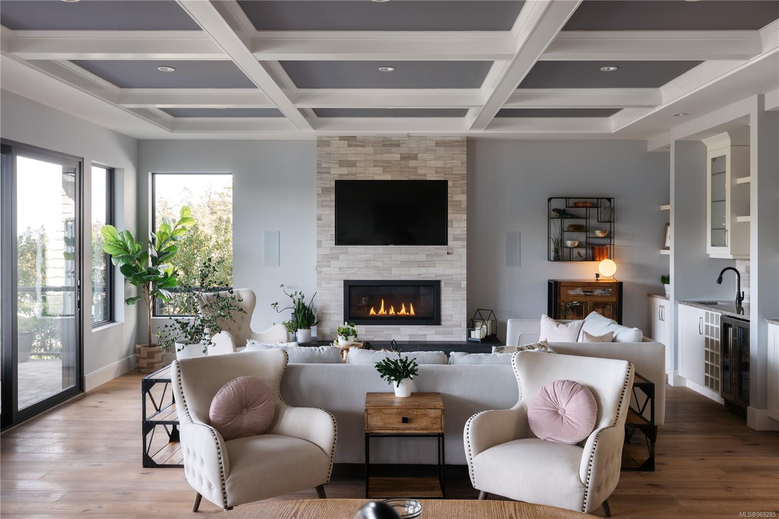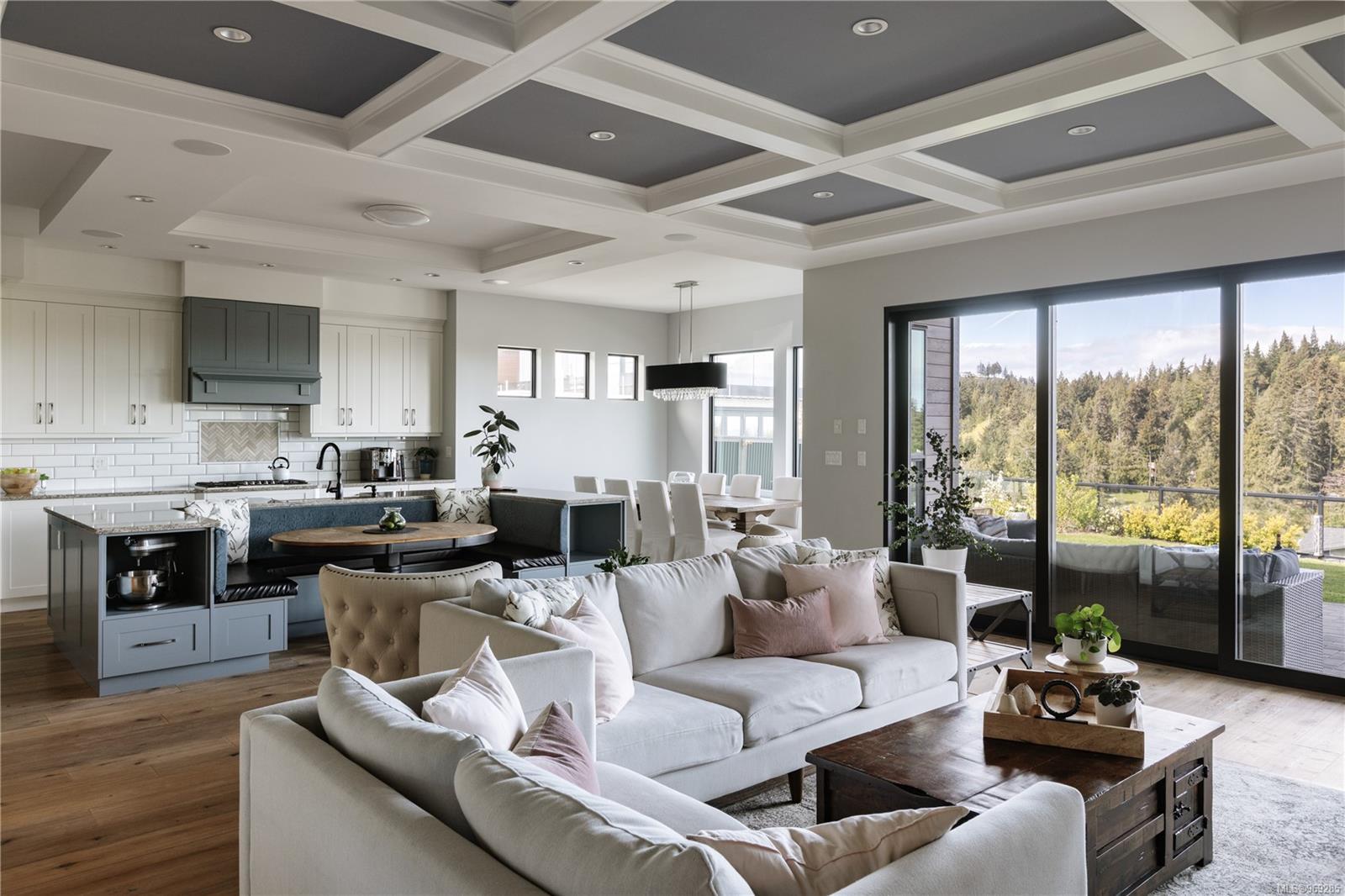 Welcome to this stunning 2018 home perched at the top of Elevation Pointe Terr. Offering panoramic views, generous space, contemporary style & a suite, this residence effortlessly ticks all the right boxes for luxurious living. As you step inside, you are greeted by a grand two-story entryway w/ beautiful tile floors. The main level unfolds into a spacious open-concept living area, featuring sprawling kitchen, dining & living room, all framed by expansive ocean views towards Downtown Victoria. The seamless indoor-outdoor living experience is truly exceptional. Open the oversized bi-sliding glass doors to the patio, creating an expansive entertainment space. In the evenings, the twinkling city lights in the distance add a magical ambiance to the already spectacular setting. Spanning >3500 sq/ft of finished living space, this home boasts 5 bedrooms & 4 baths. The thoughtful design & impeccable finishes throughout ensure both comfort & style. Large crawl space for extra storage.