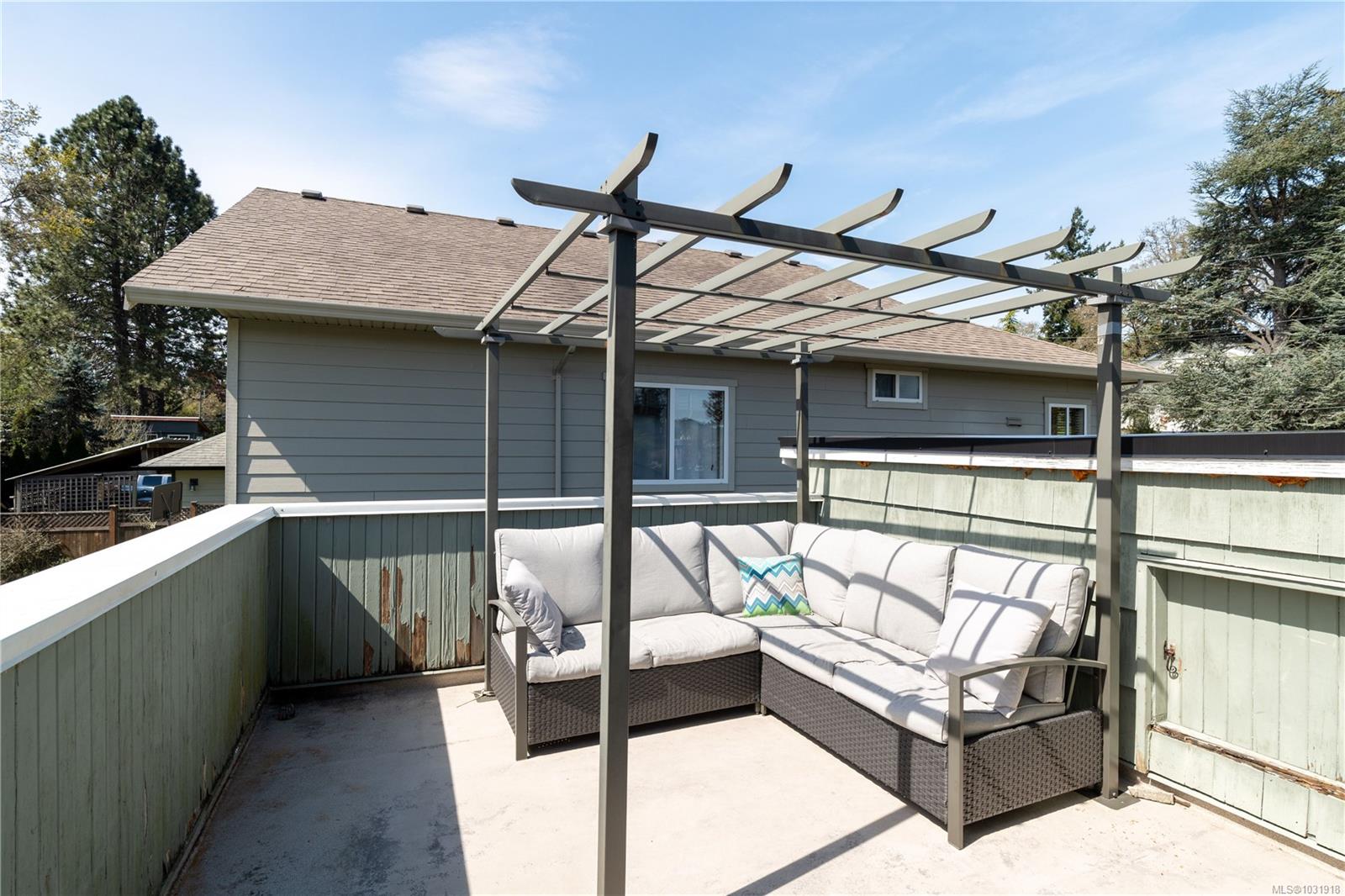 **Open House Sat. Apr 25th, 1pm to 230pm & Sun 11am to 1230pm** Welcome to this charming, well maintained home in the central Glanford neighbourhood of Saanich, perfectly positioned between the Trans Canada and Pat Bay Highways for easy access in every direction. Offering an ideal blend of comfort and functionality, this home features a stunning backyard, updated flooring along with a new roof and gutters completed in 2024, providing peace of mind for years to come. The main level features a spacious front family room with a cozy gas fireplace, while the back of the home opens to a bright living and dining area and functional kitchen overlooking the sunny backyard. Two bedrooms, a full bath, and laundry complete this level. Upstairs, the private primary retreat offers an ensuite, walk in closet, and rooftop deck to enjoy evening sun. Set on a flat, fully fenced lot ideal for kids, pets, and entertaining, all close to parks, schools, and shopping.