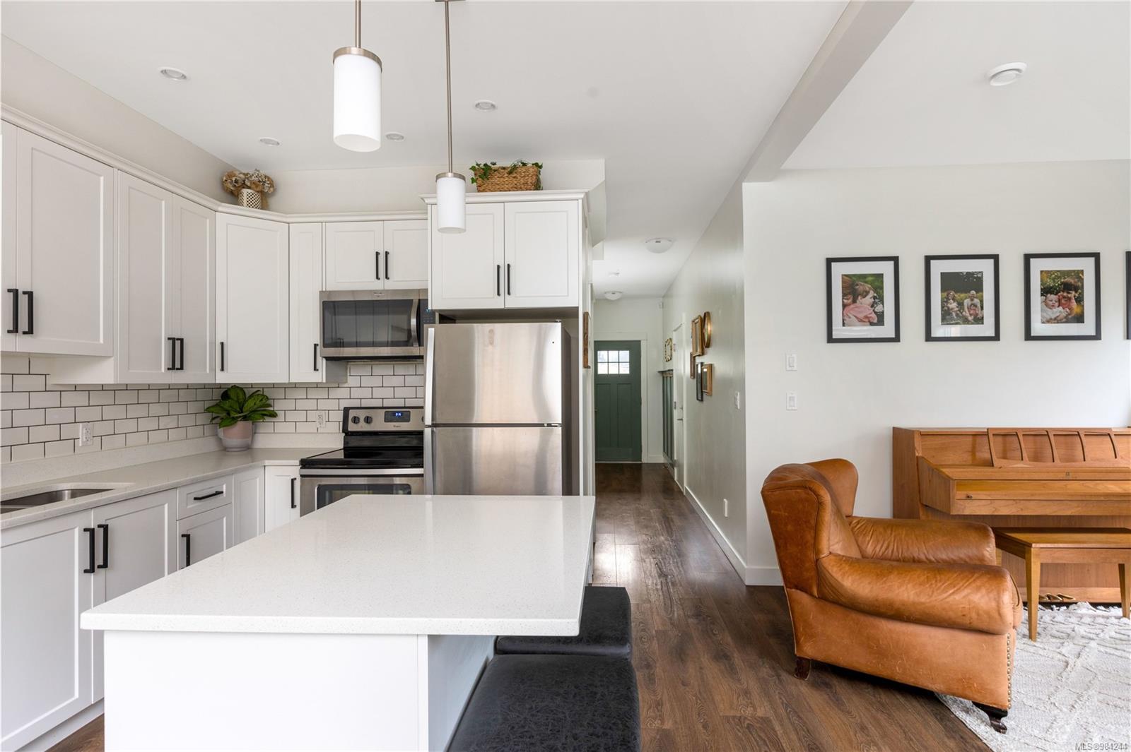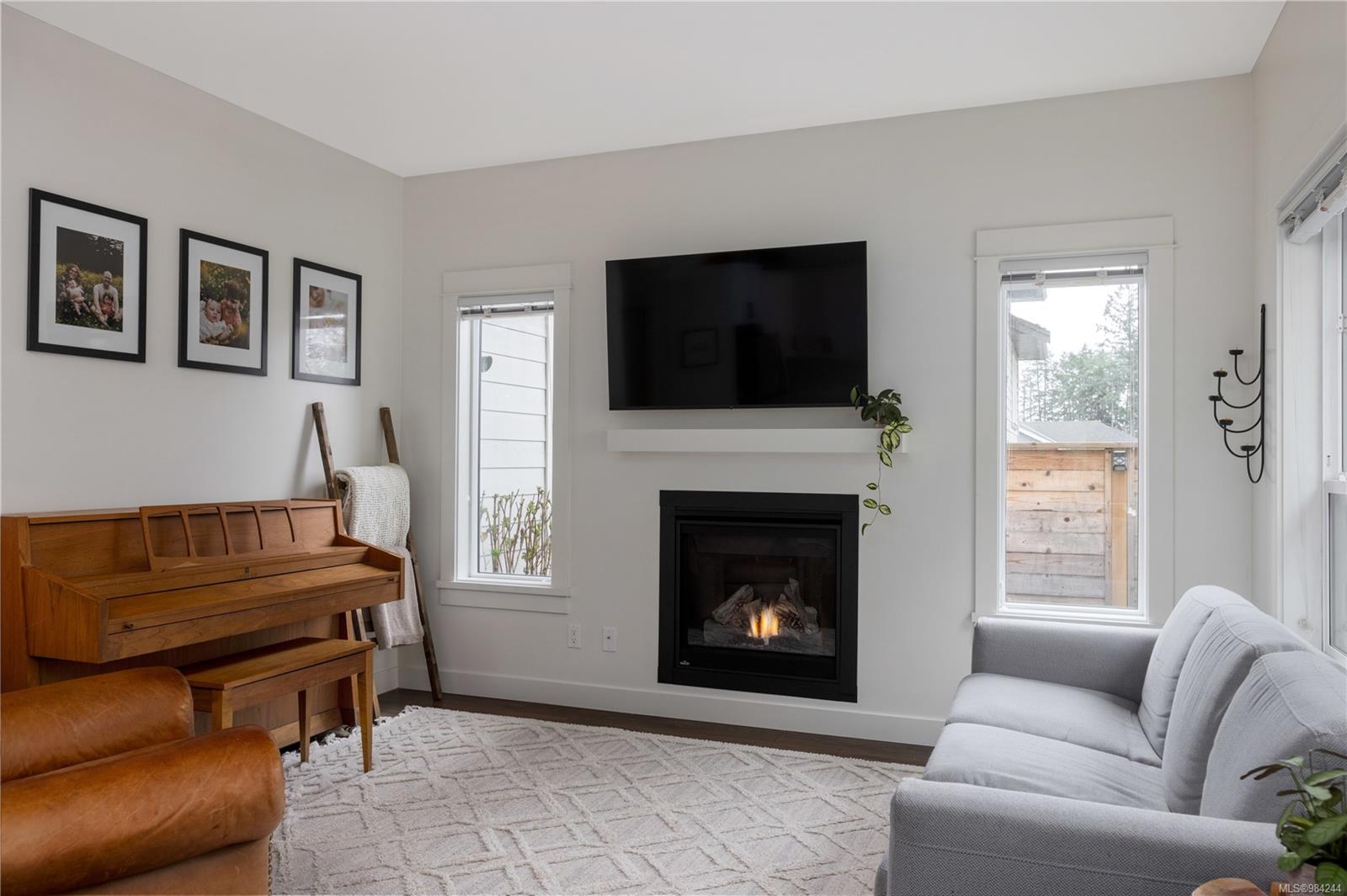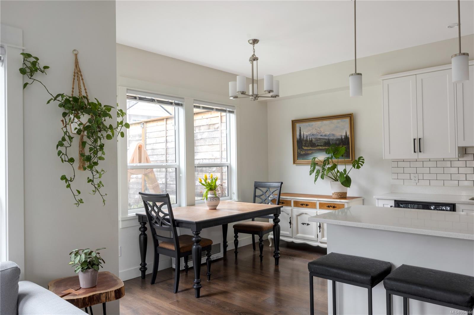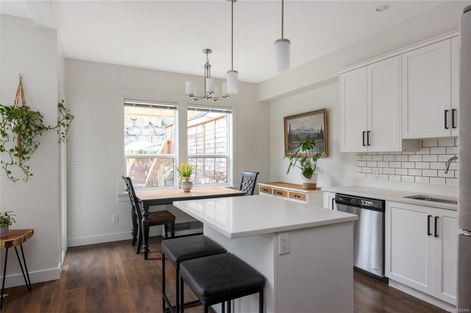 Steps to Thetis Lake this 2017 built 3 bedroom 3 bathroom townhome has been beautifully updated and meticulously maintained. Ample parking plus a garage, located on a quiet cul-de-sac that has just 1 shared wall with the neighbour. Thoughtfully laid out this home boasts 9-foot ceilings on the main and an inviting open concept plan. Enter the living space to enjoy a cozy gas fireplace surrounded by windows looking out on the sunny backyard that is fully fenced and boasts a beautiful covered patio space. Rinnai wall furnace, updated white paint, black hardware & a large powder room are just a few of the many features of this beautiful home. Walk upstairs to a generous primary bedroom with ensuite bathroom featuring heated floors and a walk-in closet. Two secondary bedrooms, a separate laundry room & a large 4 piece bathroom complete this gorgeous Thetis townhome.