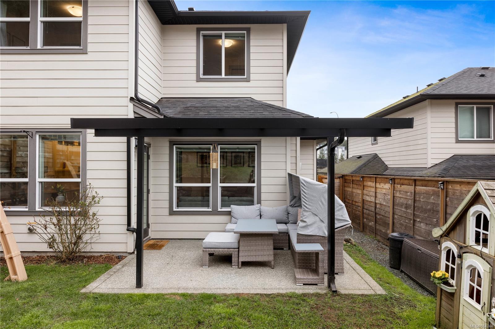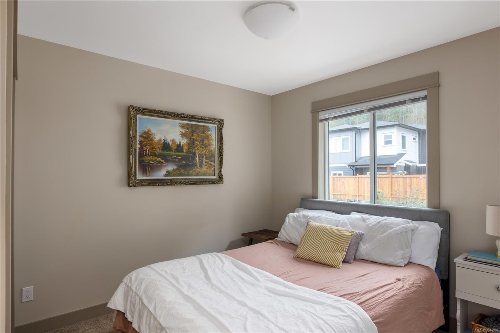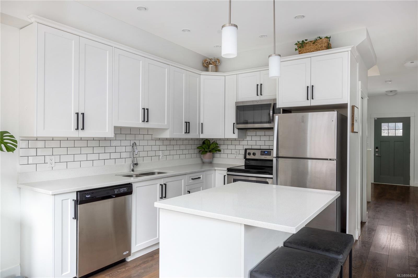 Steps to Thetis Lake this 2017 built 3 bedroom 3 bathroom townhome has been beautifully updated and meticulously maintained. Ample parking plus a garage, located on a quiet cul-de-sac that has just 1 shared wall with the neighbour. Thoughtfully laid out this home boasts 9-foot ceilings on the main and an inviting open concept plan. Enter the living space to enjoy a cozy gas fireplace surrounded by windows looking out on the sunny backyard that is fully fenced and boasts a beautiful covered patio space. Rinnai wall furnace, updated white paint, black hardware & a large powder room are just a few of the many features of this beautiful home. Walk upstairs to a generous primary bedroom with ensuite bathroom featuring heated floors and a walk-in closet. Two secondary bedrooms, a separate laundry room & a large 4 piece bathroom complete this gorgeous Thetis townhome.