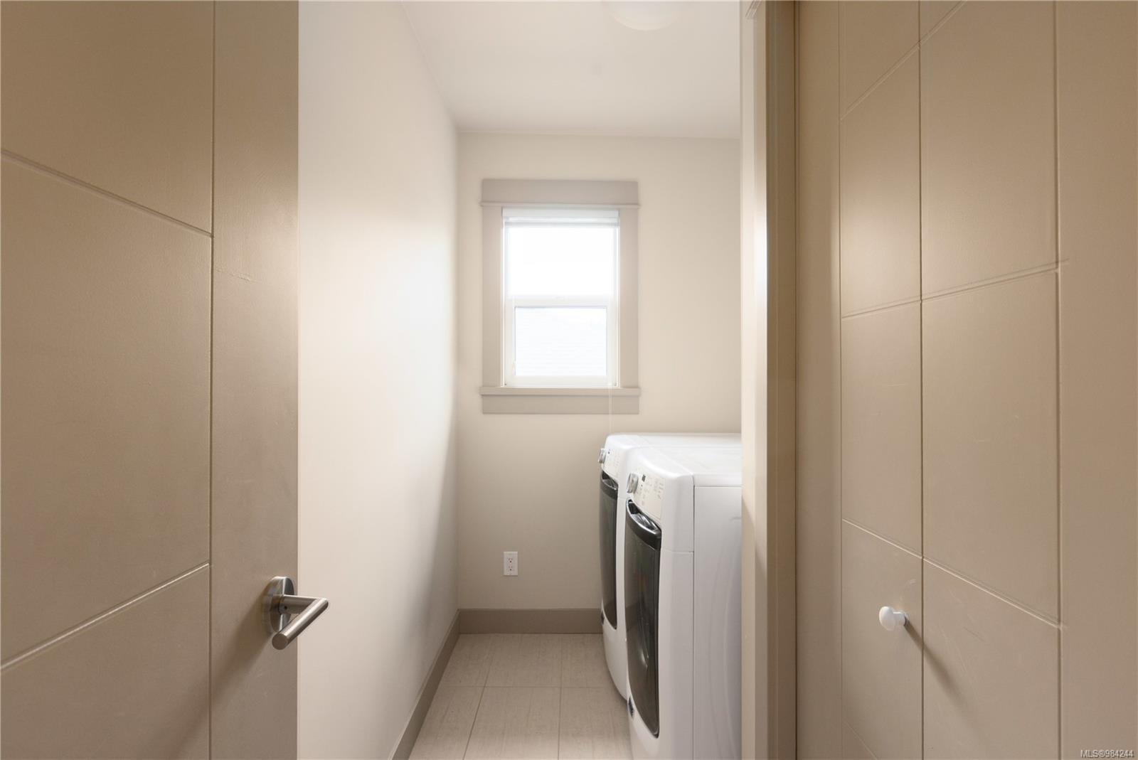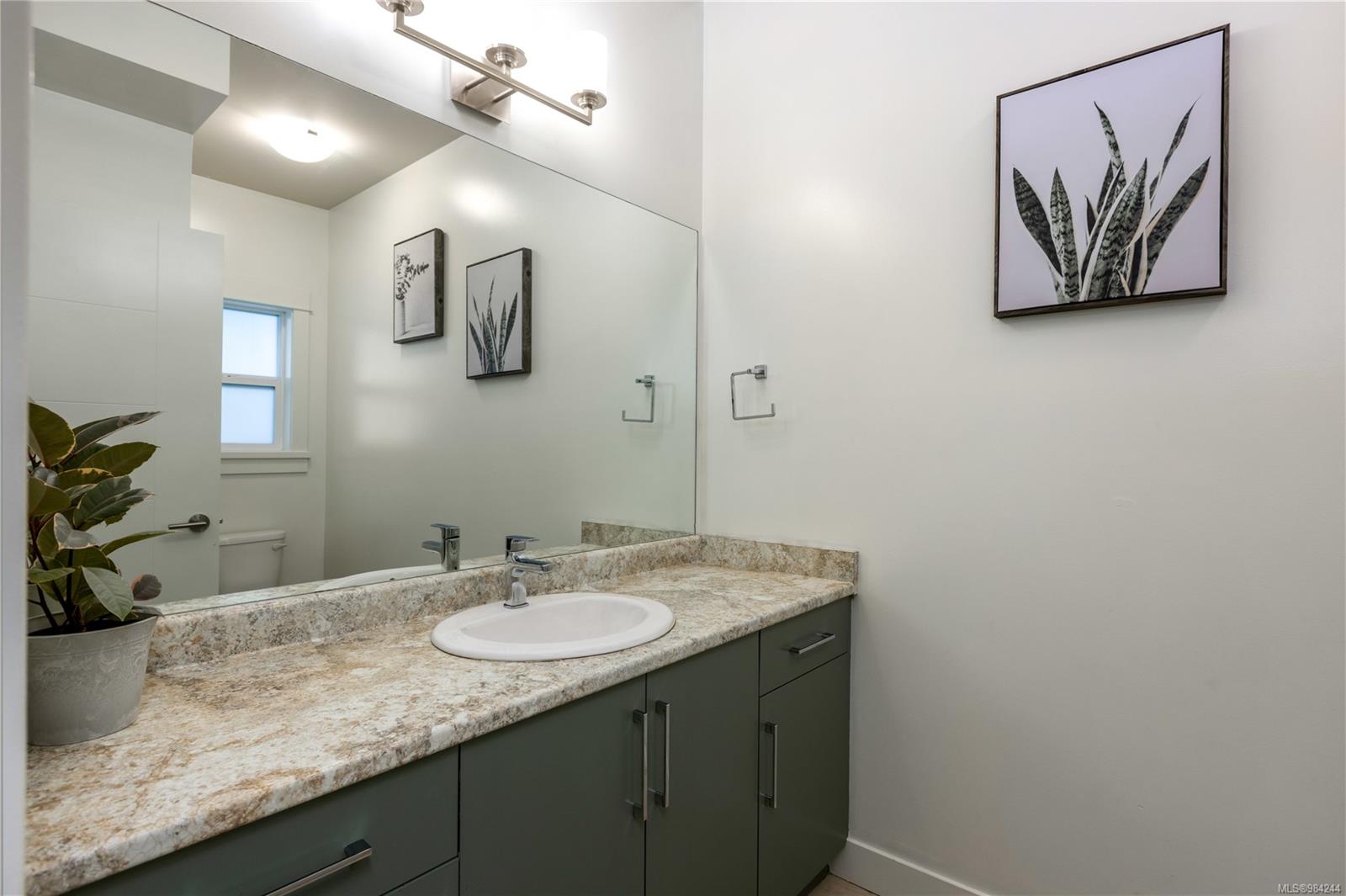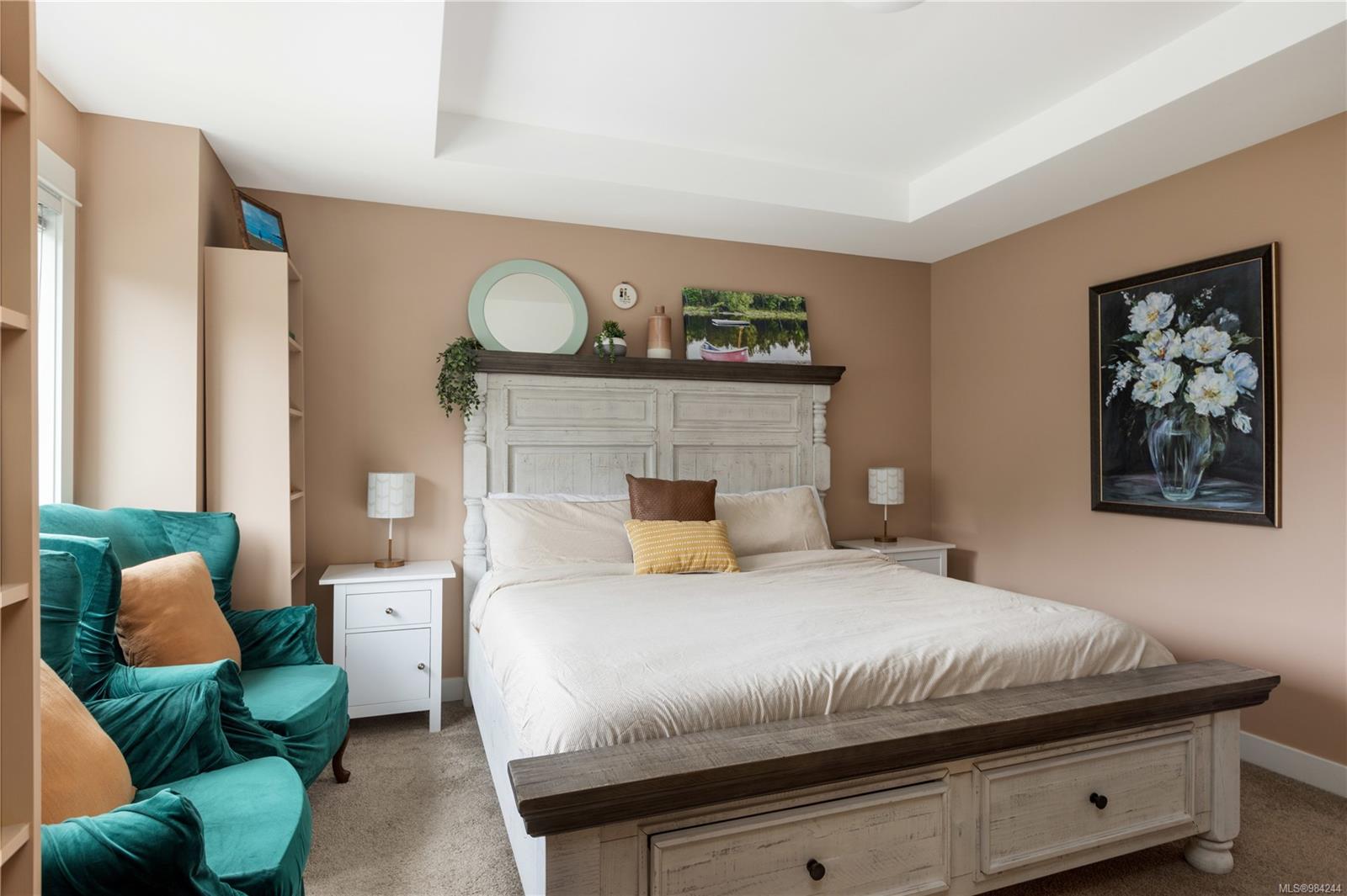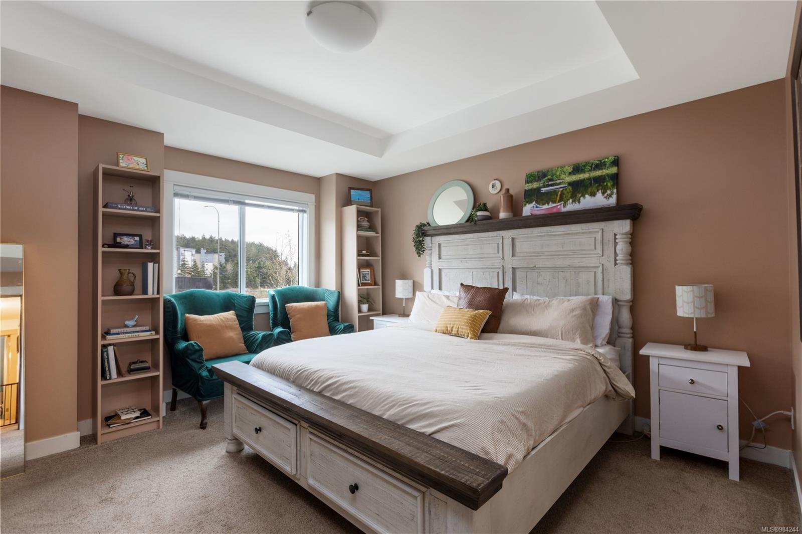 Steps to Thetis Lake this 2017 built 3 bedroom 3 bathroom townhome has been beautifully updated and meticulously maintained. Ample parking plus a garage, located on a quiet cul-de-sac that has just 1 shared wall with the neighbour. Thoughtfully laid out this home boasts 9-foot ceilings on the main and an inviting open concept plan. Enter the living space to enjoy a cozy gas fireplace surrounded by windows looking out on the sunny backyard that is fully fenced and boasts a beautiful covered patio space. Rinnai wall furnace, updated white paint, black hardware & a large powder room are just a few of the many features of this beautiful home. Walk upstairs to a generous primary bedroom with ensuite bathroom featuring heated floors and a walk-in closet. Two secondary bedrooms, a separate laundry room & a large 4 piece bathroom complete this gorgeous Thetis townhome.