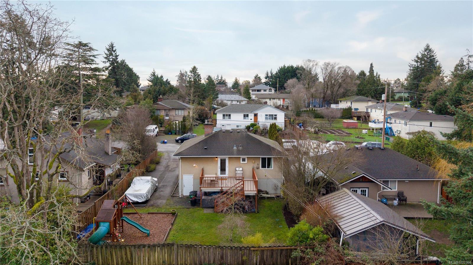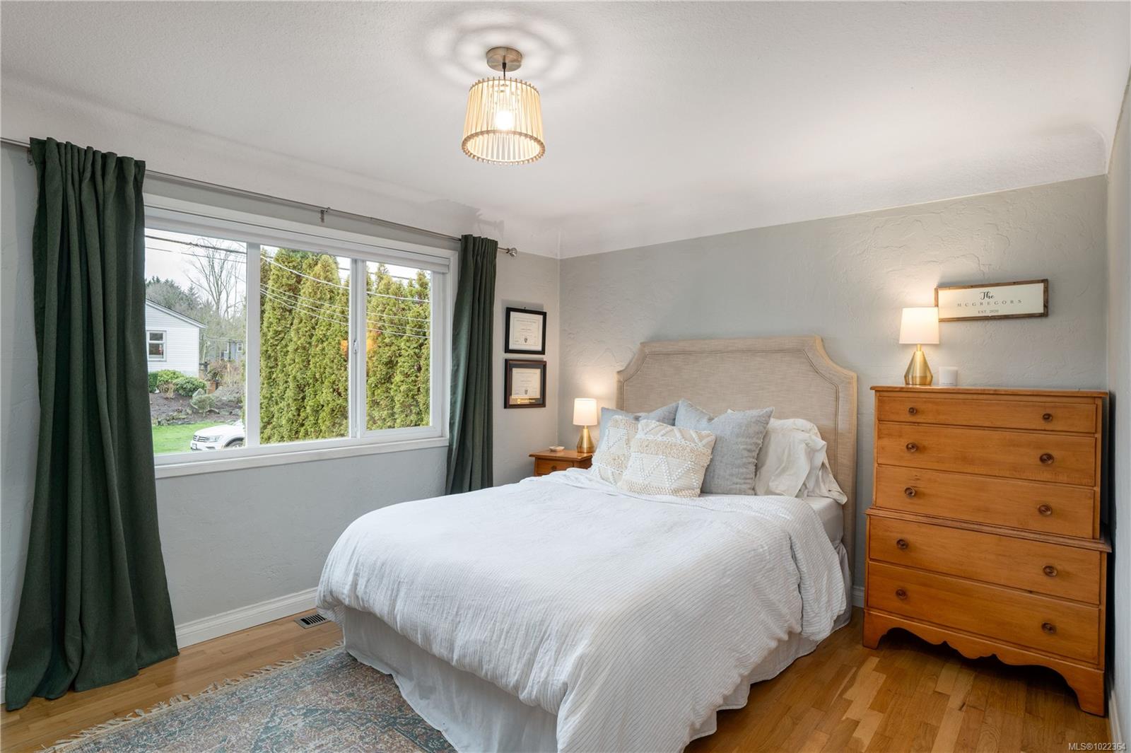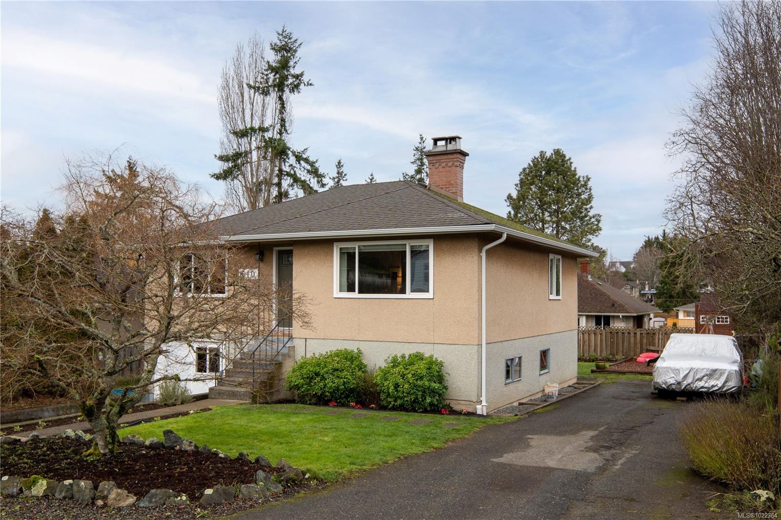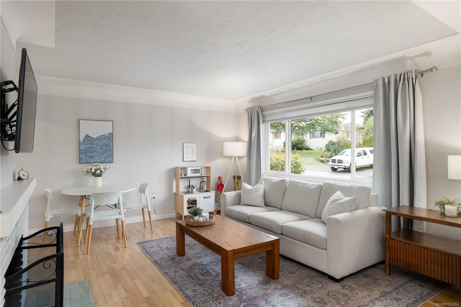 Meticulously maintained, beautifully updated & tucked away on a quiet Saanich street. Full of charm and thoughtful upgrades step inside to enjoy the stunning new kitchen (2022), warm hardwood floors, coved ceilings, & a freshly updated bathroom that blends timeless character with modern comfort. The main level offers a charming living space, 2 bedrooms and a four-piece bath, while the bright kitchen opens directly onto the deck with a BBQ gas hook up, perfect for entertaining and enjoying the spacious backyard. Downstairs, you'll find a finished bedroom plus over 700sf of unfinished space, offering endless potential for additional living area, a suite, or workspace. Major updates include perimeter drain replacement (2020), gas furnace (2019), gutters, downspouts, fascia & HWT (2025). Completing the home are 2 driveways, providing excellent parking for multiple vehicles, an RV/boat. Centrally located this is a fantastic opportunity in a highly convenient yet peaceful Saanich location.