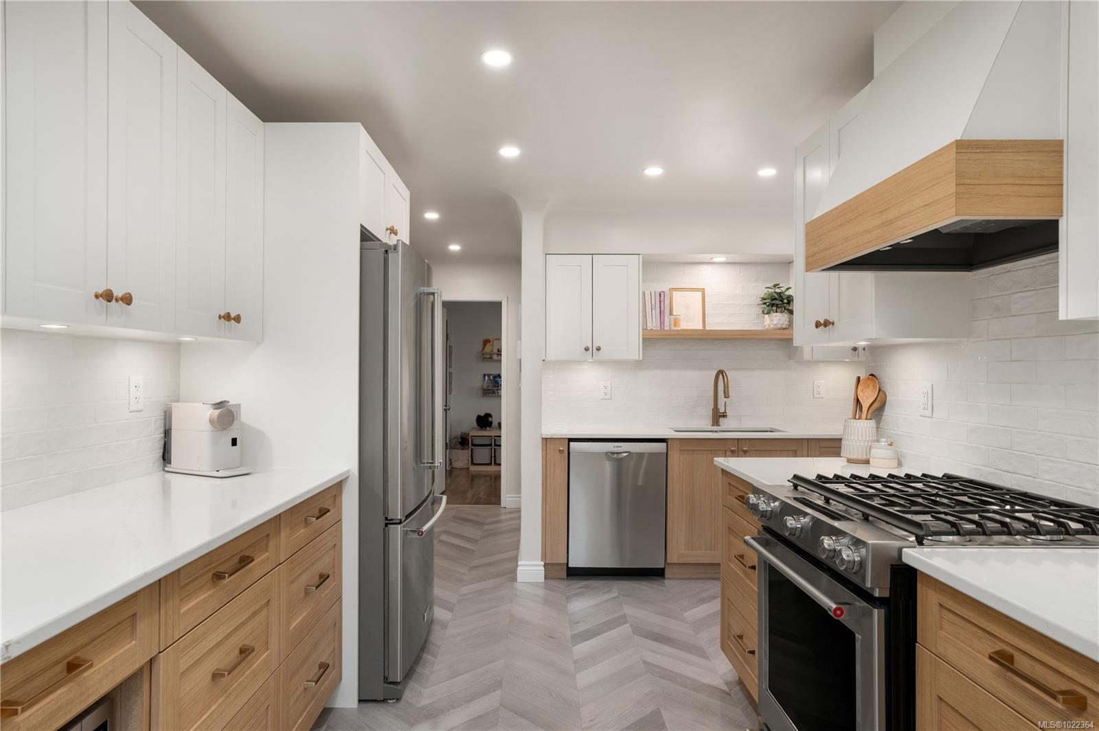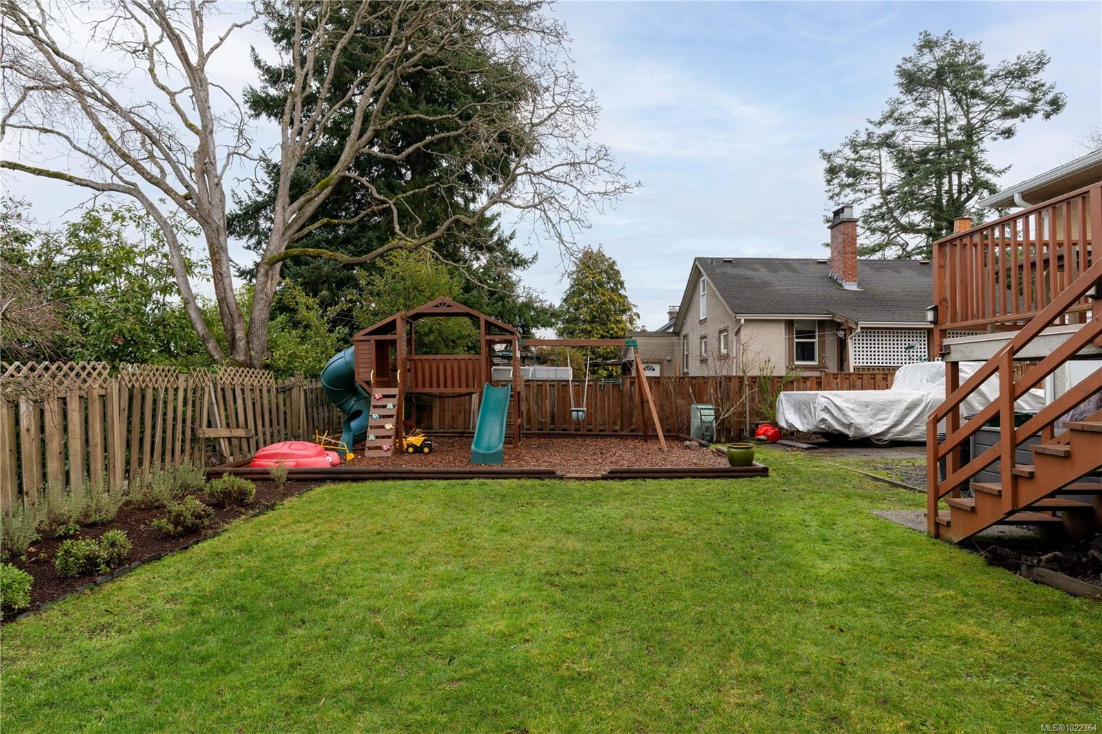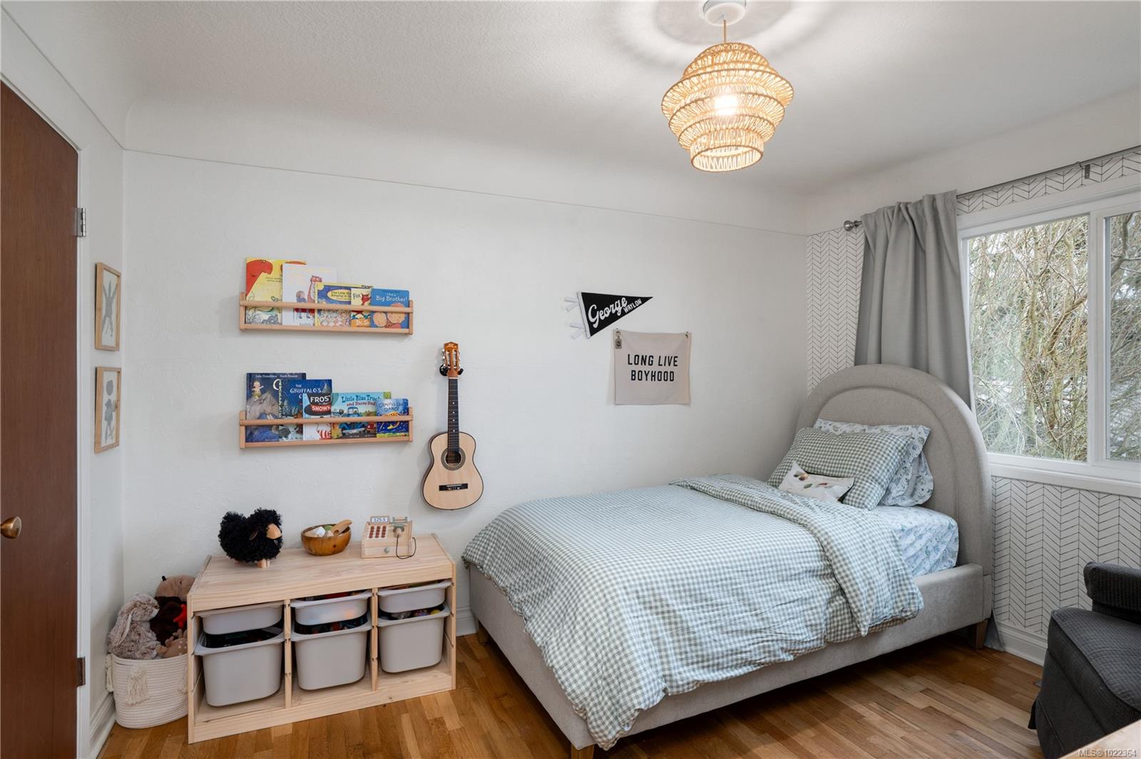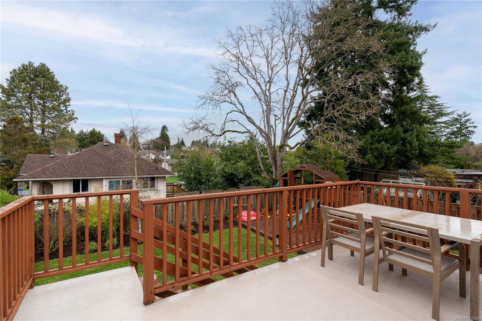 Meticulously maintained, beautifully updated & tucked away on a quiet Saanich street. Full of charm and thoughtful upgrades step inside to enjoy the stunning new kitchen (2022), warm hardwood floors, coved ceilings, & a freshly updated bathroom that blends timeless character with modern comfort. The main level offers a charming living space, 2 bedrooms and a four-piece bath, while the bright kitchen opens directly onto the deck with a BBQ gas hook up, perfect for entertaining and enjoying the spacious backyard. Downstairs, you'll find a finished bedroom plus over 700sf of unfinished space, offering endless potential for additional living area, a suite, or workspace. Major updates include perimeter drain replacement (2020), gas furnace (2019), gutters, downspouts, fascia & HWT (2025). Completing the home are 2 driveways, providing excellent parking for multiple vehicles, an RV/boat. Centrally located this is a fantastic opportunity in a highly convenient yet peaceful Saanich location.