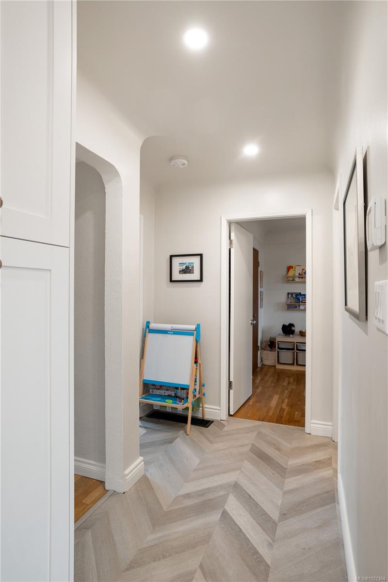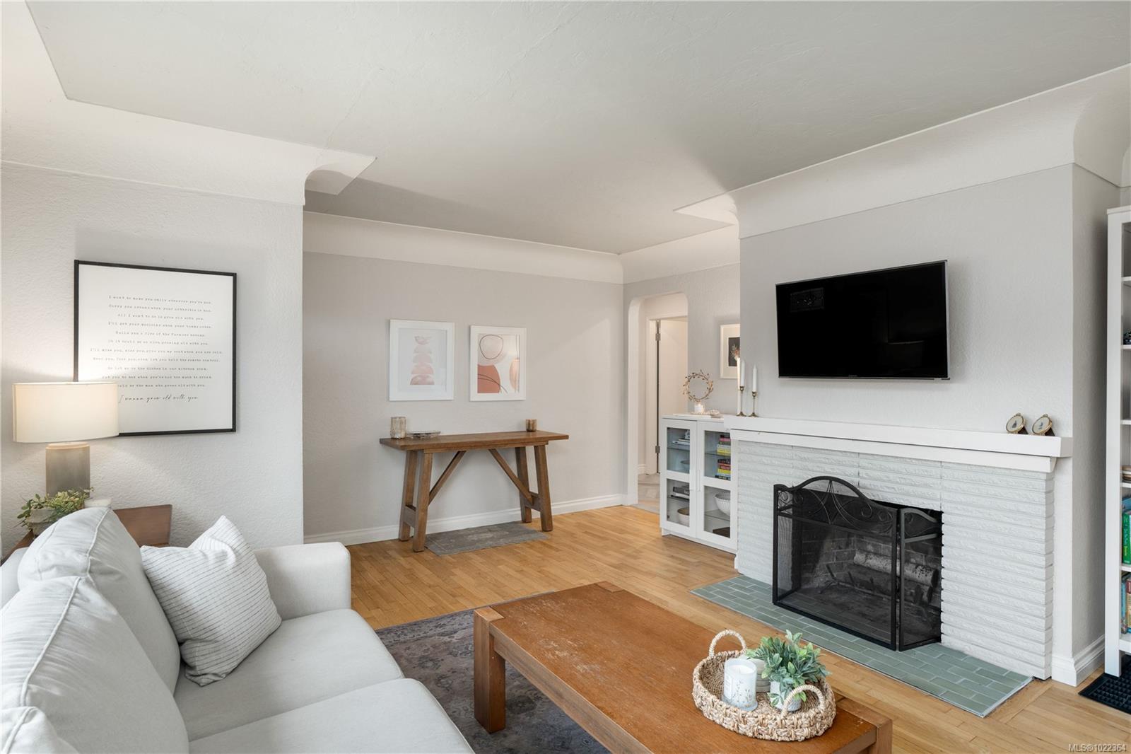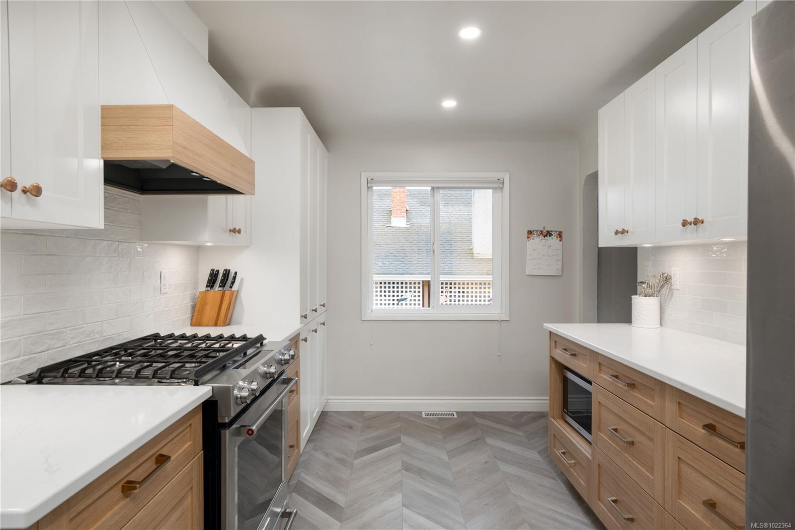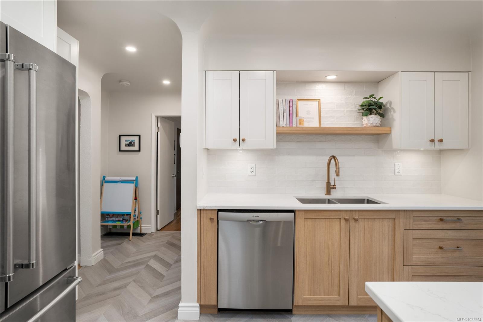 Meticulously maintained, beautifully updated & tucked away on a quiet Saanich street. Full of charm and thoughtful upgrades step inside to enjoy the stunning new kitchen (2022), warm hardwood floors, coved ceilings, & a freshly updated bathroom that blends timeless character with modern comfort. The main level offers a charming living space, 2 bedrooms and a four-piece bath, while the bright kitchen opens directly onto the deck with a BBQ gas hook up, perfect for entertaining and enjoying the spacious backyard. Downstairs, you'll find a finished bedroom plus over 700sf of unfinished space, offering endless potential for additional living area, a suite, or workspace. Major updates include perimeter drain replacement (2020), gas furnace (2019), gutters, downspouts, fascia & HWT (2025). Completing the home are 2 driveways, providing excellent parking for multiple vehicles, an RV/boat. Centrally located this is a fantastic opportunity in a highly convenient yet peaceful Saanich location.