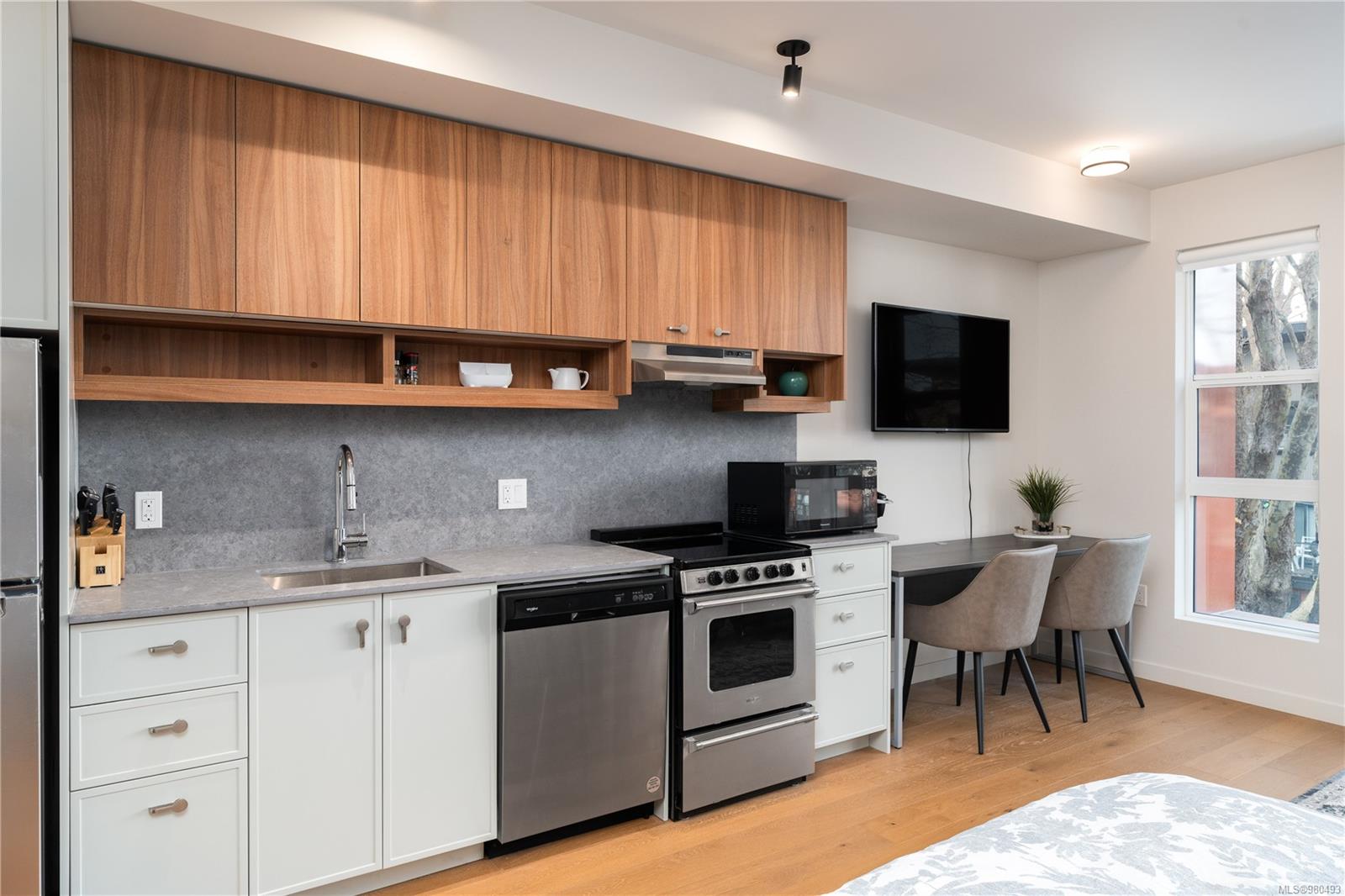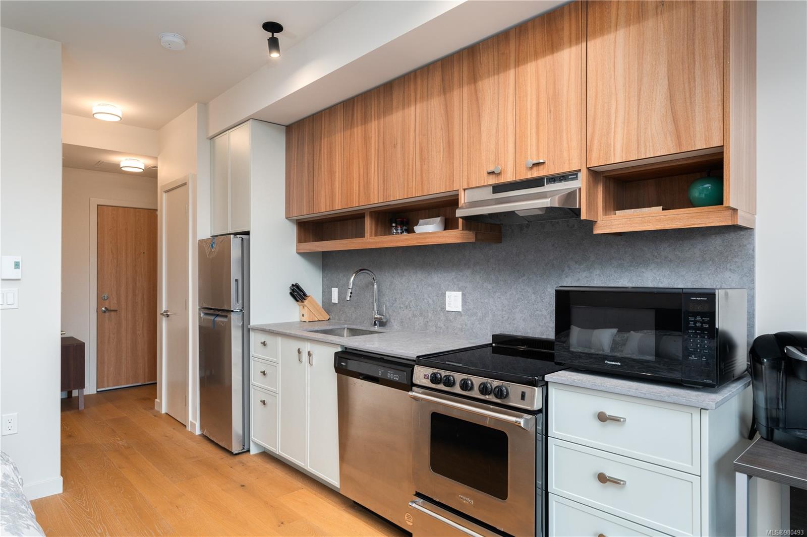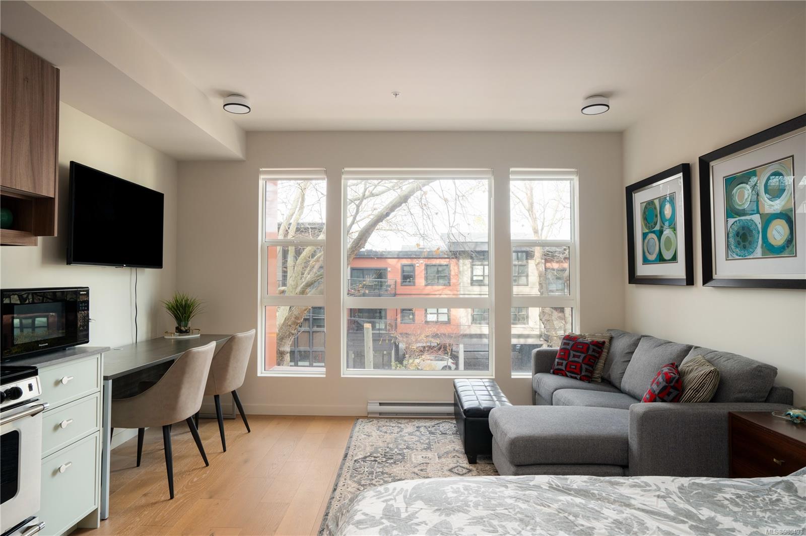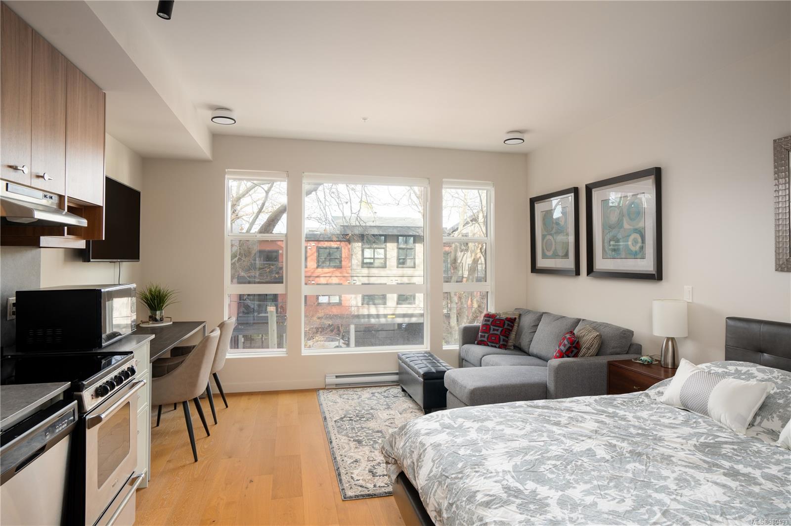 Nestled in the heart of Victoria's vibrant Midtown district, this like-new condo offers exceptional value with the GST already paid! Situated on a peaceful, tree-lined no-through street, this beautiful building is perfectly positioned in a dynamic neighbourhood. Steps from the Galloping Goose Trail and the Gorge Waterway, and the convenience of Mayfair Mall, everything you need is right at your doorstep. Inside this modern 6-storey building, you'll find high-end finishes throughout. Your home features sleek stone countertops, elegant oak flooring, stainless steel appliances, and in-suite laundry. Tresah offers secure bike parking, access to two MODO Car Share electric vehicles, and a prime location near transit, shopping, and dining. This affordable, move-in-ready home is your chance to embrace urban living--don't let it pass you by!