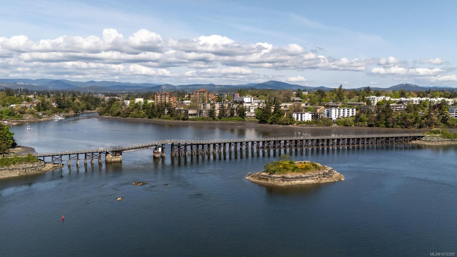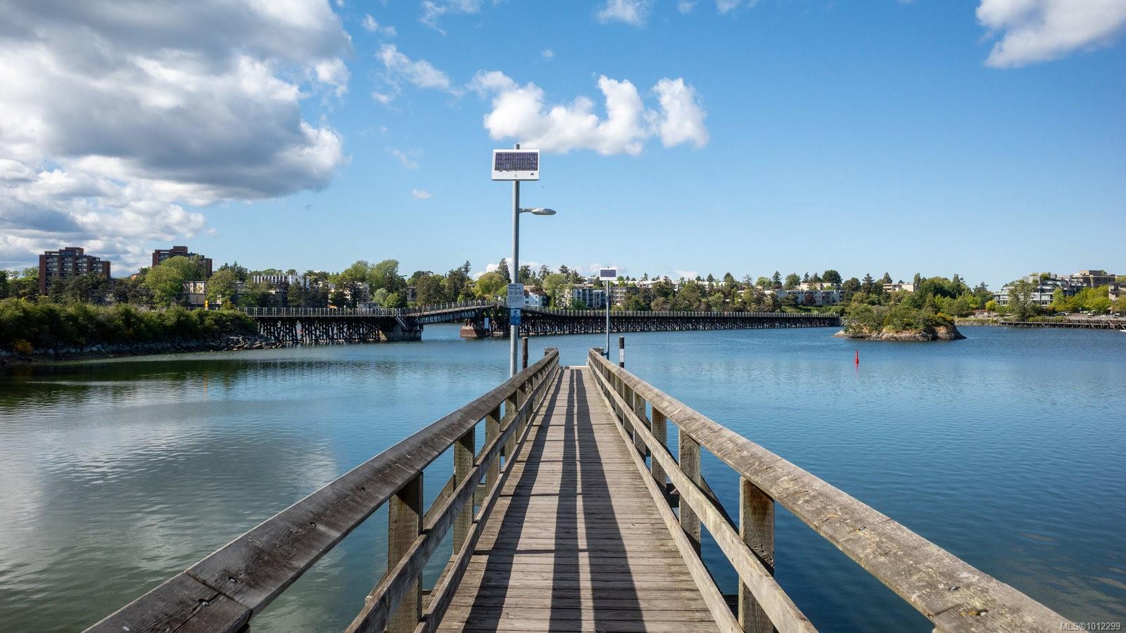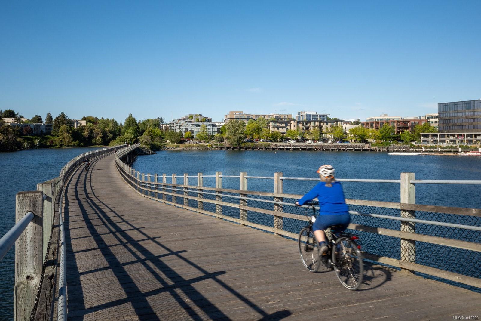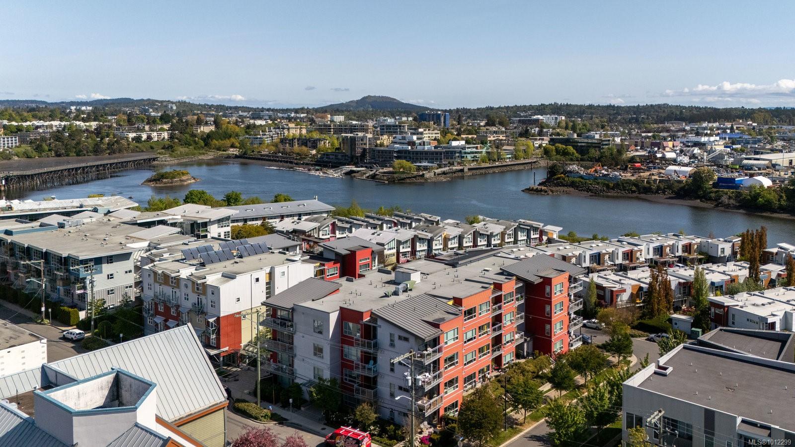 Welcome to the Railyards, one of Victoria's most sought-after waterfront communities. Nestled along the Gorge Waterway and Galloping Goose Trail, this 1-bedroom condo is a dream for outdoor enthusiasts. The condo's open concept layout features numerous upgrades, including LED lighting throughout, vinyl plank flooring, quartz kitchen countertops, bathroom vanity and both new carpet and Kendal dual direction fan/light combo in the bedroom. The spacious blended living/dining room offers great natural light, while the generous bedroom includes a cheater door to access the bathroom, featuring a relaxing soaker tub. Additional perks include in-suite laundry, a storage locker, and bicycle storage. Pet friendly, rental friendly, and just a short walk to downtown, this home offers the perfect mix of tranquility and urban access in one of Victoria's best locations.