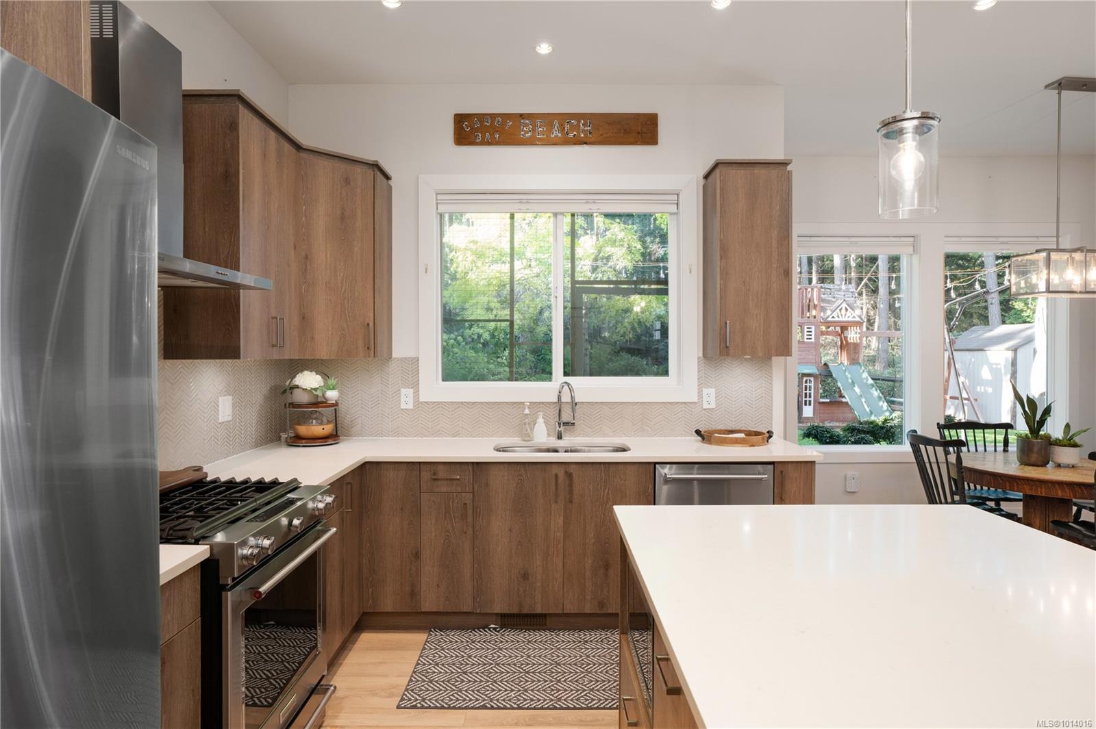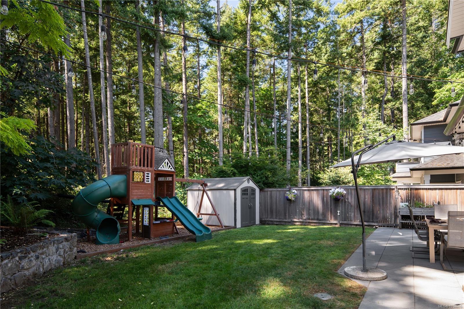 Nestled at the quiet end of a no-through road, this picturesque family home with a 1bed suite above the garage, awaits. With a tree-lined backyard and a brand-new elementary school just a 5min walk away, it's the one you've been waiting for. Spanning over 3000sf, the home features a stunning kitchen with quartz countertops & a spacious pantry overlooking the private backyard. Where nature meets luxury, cozy up by the gas fireplace or step out to the concrete patio to enjoy your backyard oasis. Upstairs, the generous primary suite boasts a walk-in closet & a spa-inspired ensuite with freestanding tub, separate tiled shower & heated floors. Two additional bedrooms, a four piece bathroom plus a 1-bedroom flex suite above the garage with its own meter offers versatility and completes the upper level. Highlights include a den on the main, a heat pump, hot water on demand & a dbl garage. Close to Royal Bay amenities & Olympic View Golf Course, the home that truly has it all, won't last long!
