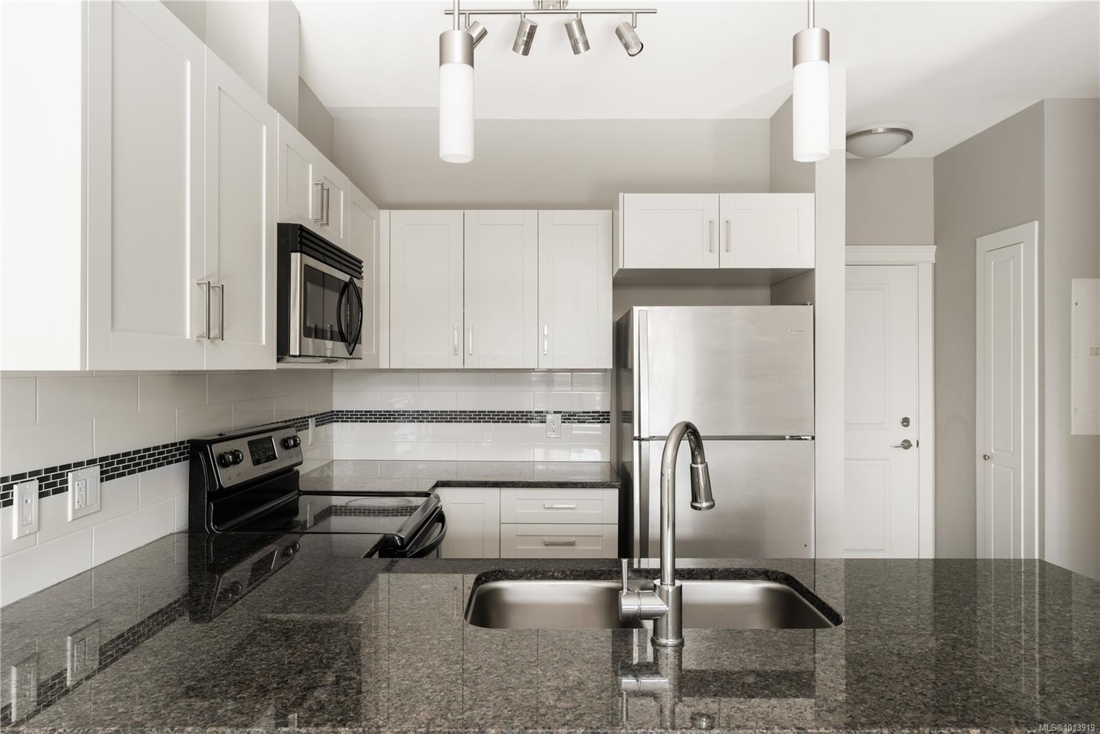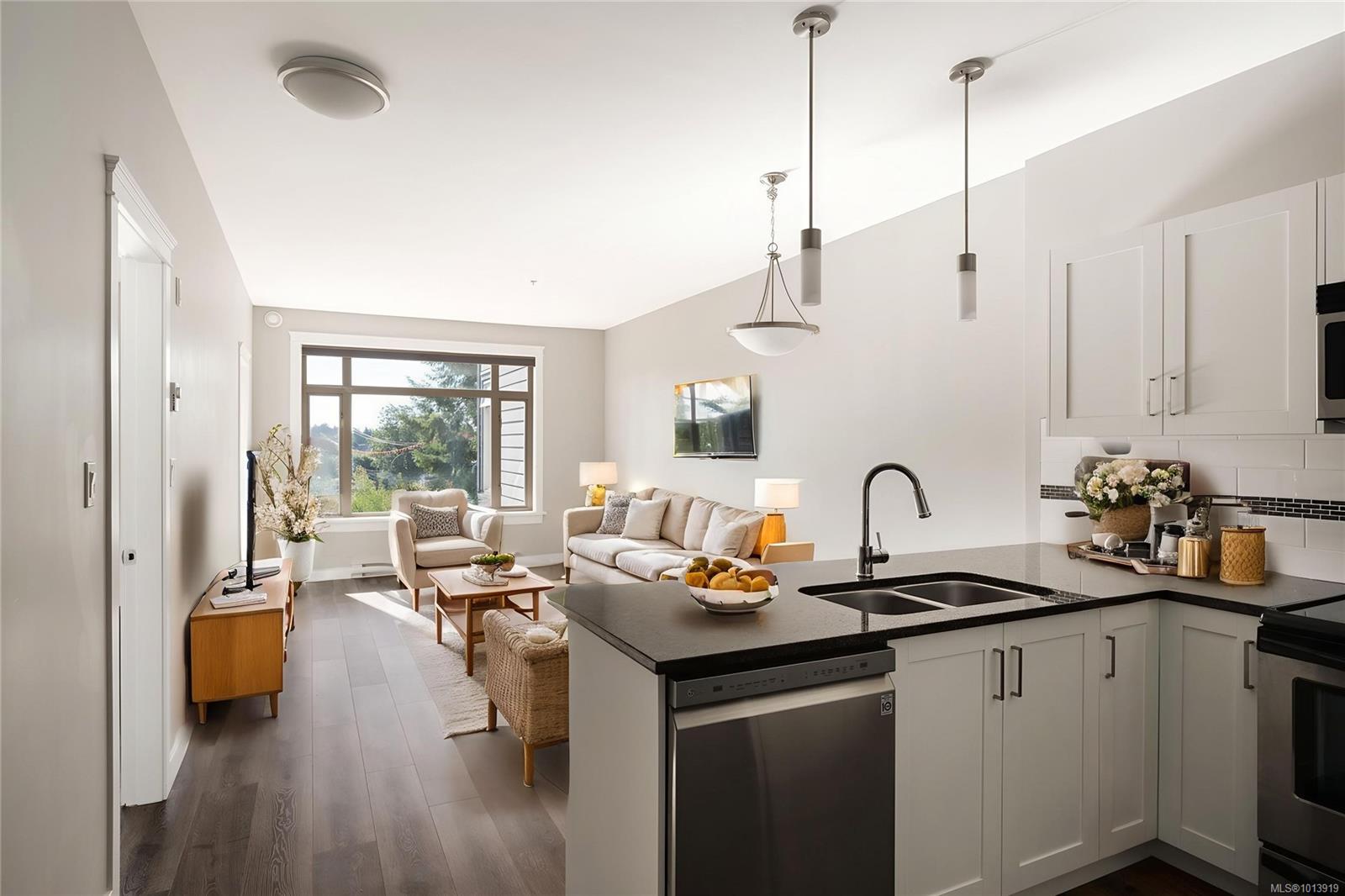 Top-floor, sun-soaked, and centrally located--this 1-bedroom condo in Evo West has it all. Bright and beautifully maintained, the home features 9' ceilings, a spacious white kitchen with granite countertops and stainless steel appliances, and a sunny living room that opens to a large, private patio perfect for year-round enjoyment. Enjoy the convenience of in-suite laundry, secure parking, and a well-run building. Ideally situated in the heart of downtown Langford, you're just steps from shops, restaurants, and every amenity. A fantastic opportunity to own in one of the Westshore's most walkable locations.