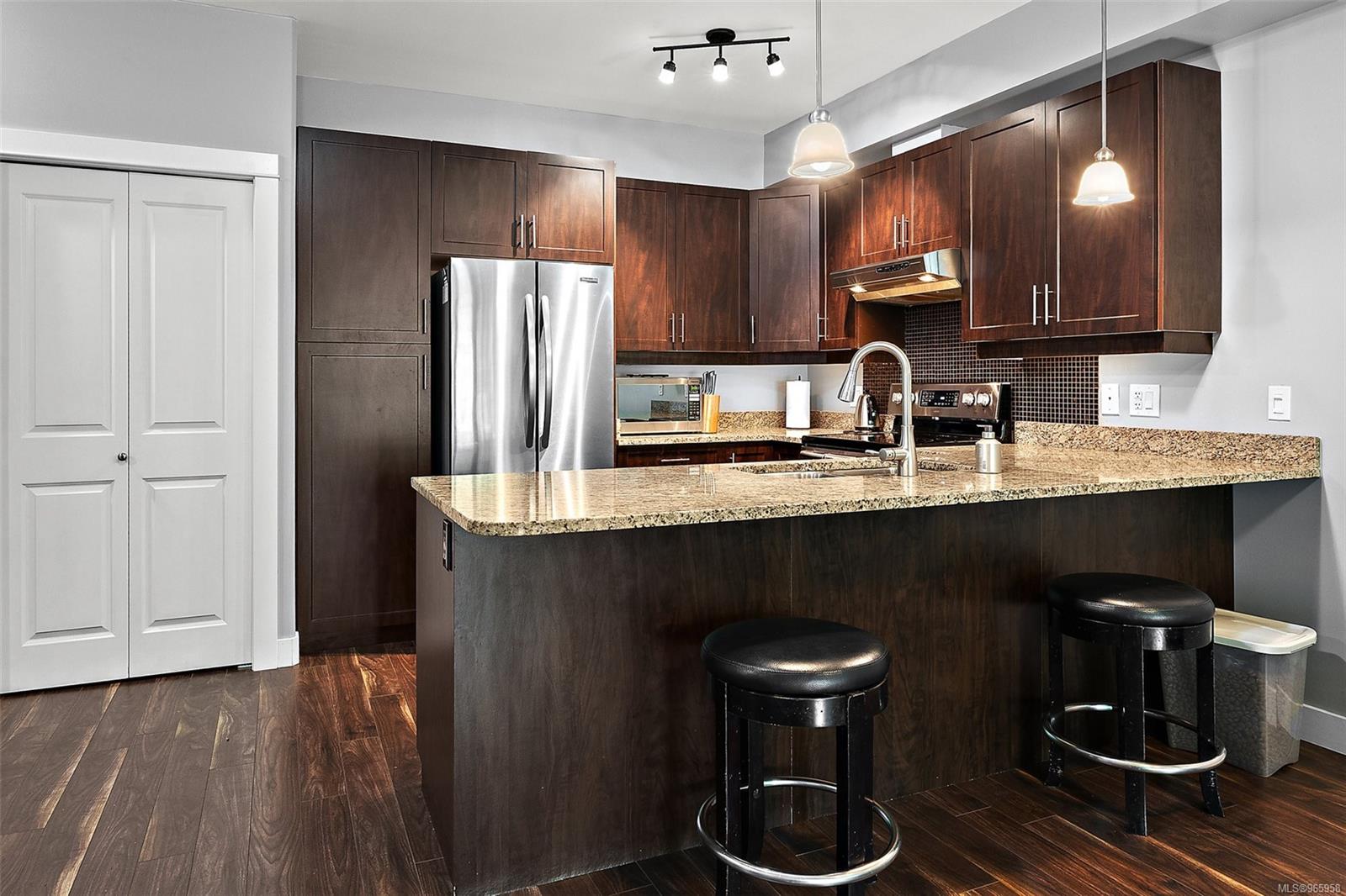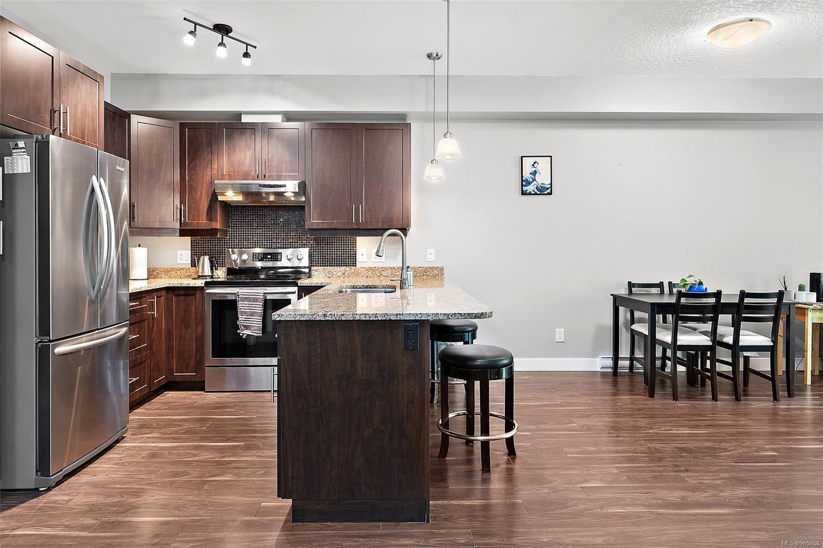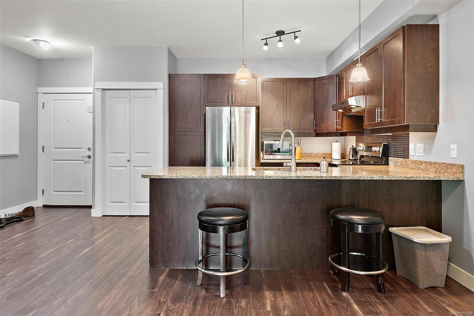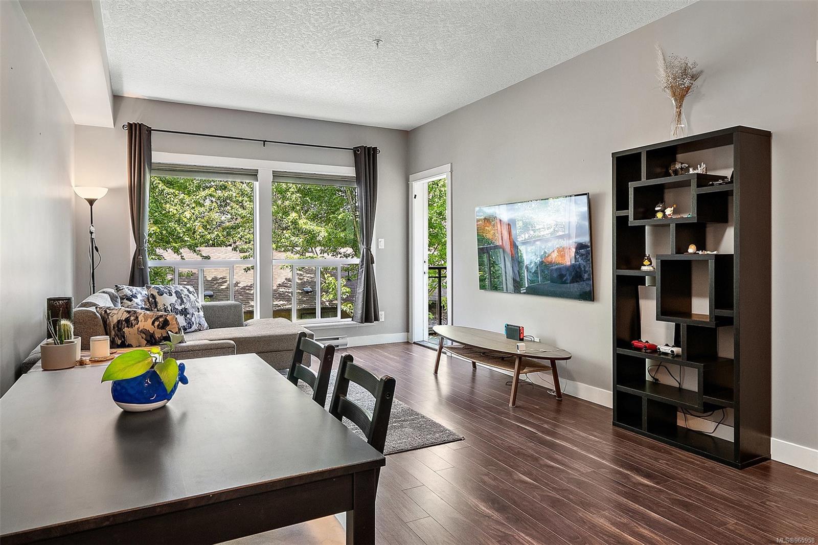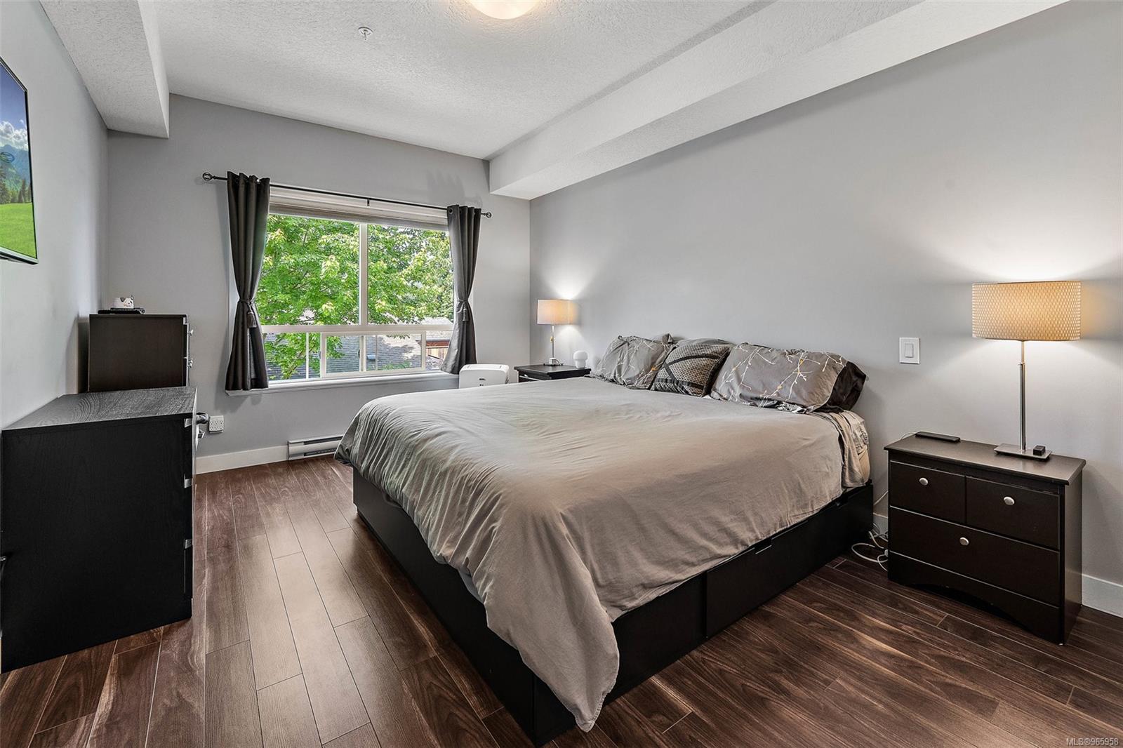 Sharpen your pencils and get ready to start checking boxes! This corner unit condo is over 1000 sq feet has 2 bedrooms and 2 full bathrooms, 2 secure underground parking spots, allows big dogs, is extremely bright and is located on the quiet side of the building! As soon as you enter the unit is apparent that you are visiting the largest floor plan in the building, the open concept is warm and inviting and the living/kitchen combo is fantastic for quiet evenings at home or entertaining friends and family. The primary bedroom is spacious and clean and includes a walk-through closet as well as a full 4 piece bathroom with tub. This condo is also located just moments away from Langford and Glen Lake, Belmont Shopping Centre, YMCA, bowling, ice rinks, soccer fields and so much more! A fantastic unit that will stand out amongst all others!